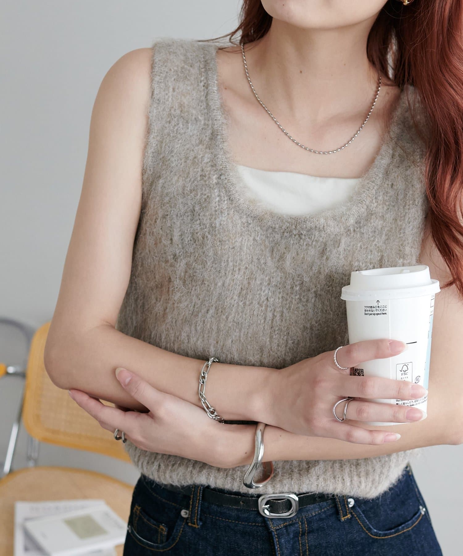 ベーシックなTシャツやカットソーに重ねるだけで、トレンド感のあるスタイルに。