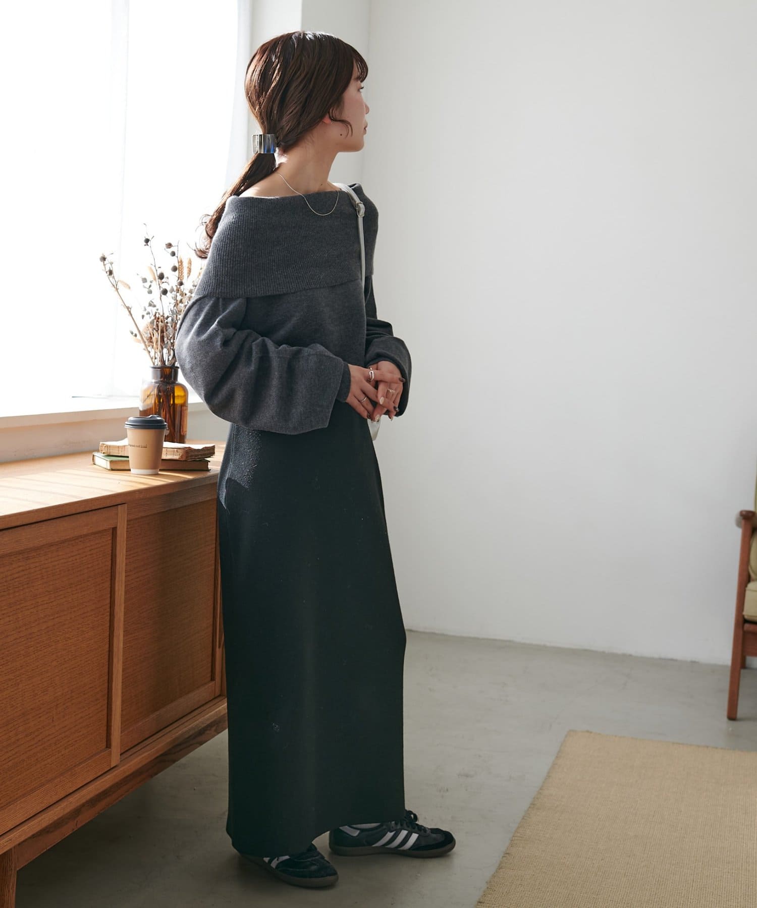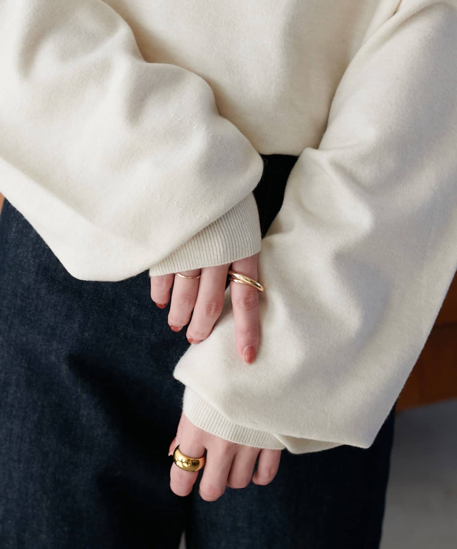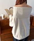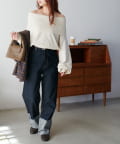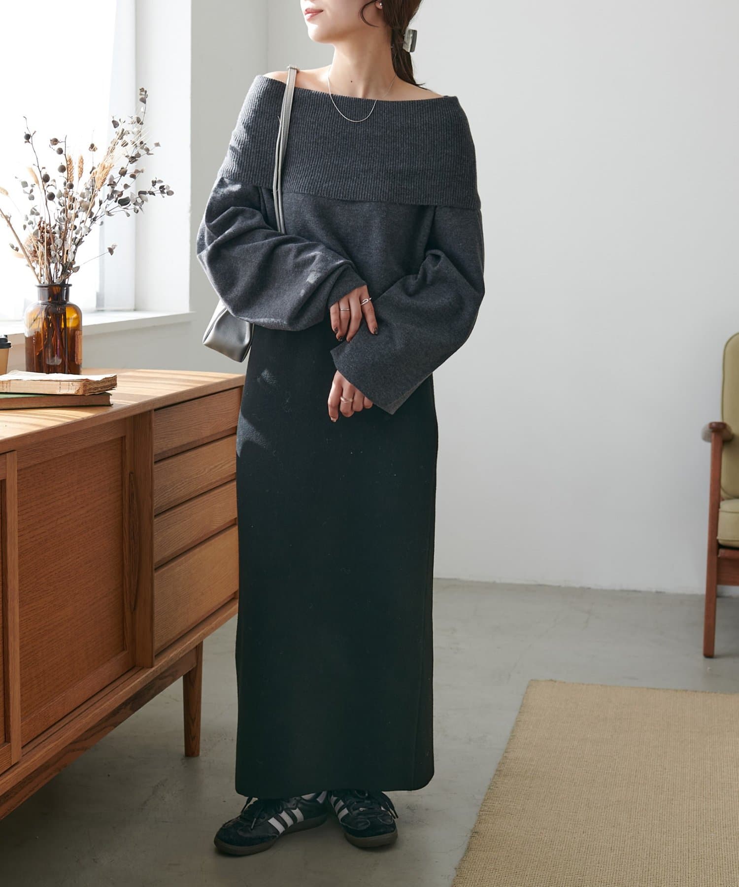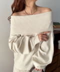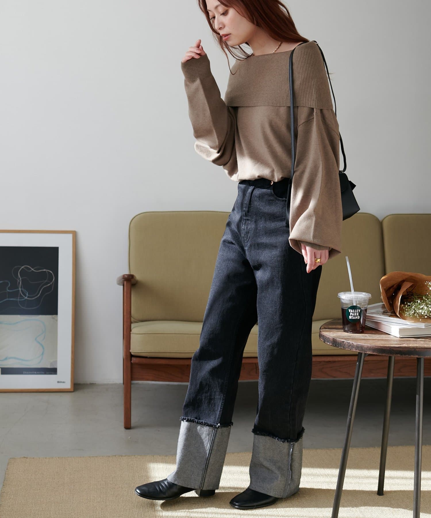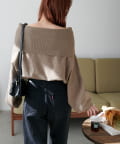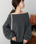 オフショル部分を大きめの折り返しデザインにしことで華奢に魅せ、リブ仕様にしたことで肩が落ちにくく安心感もあります。
