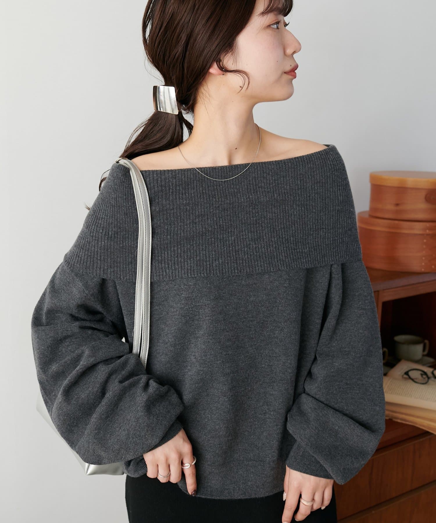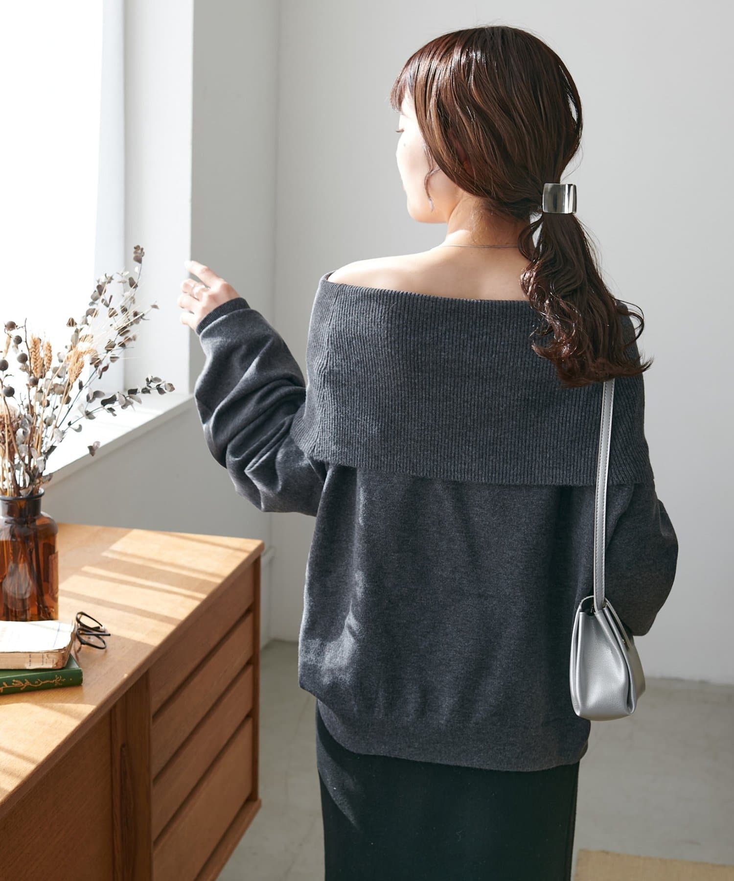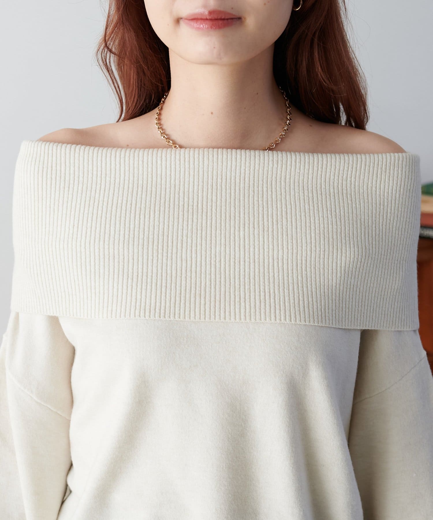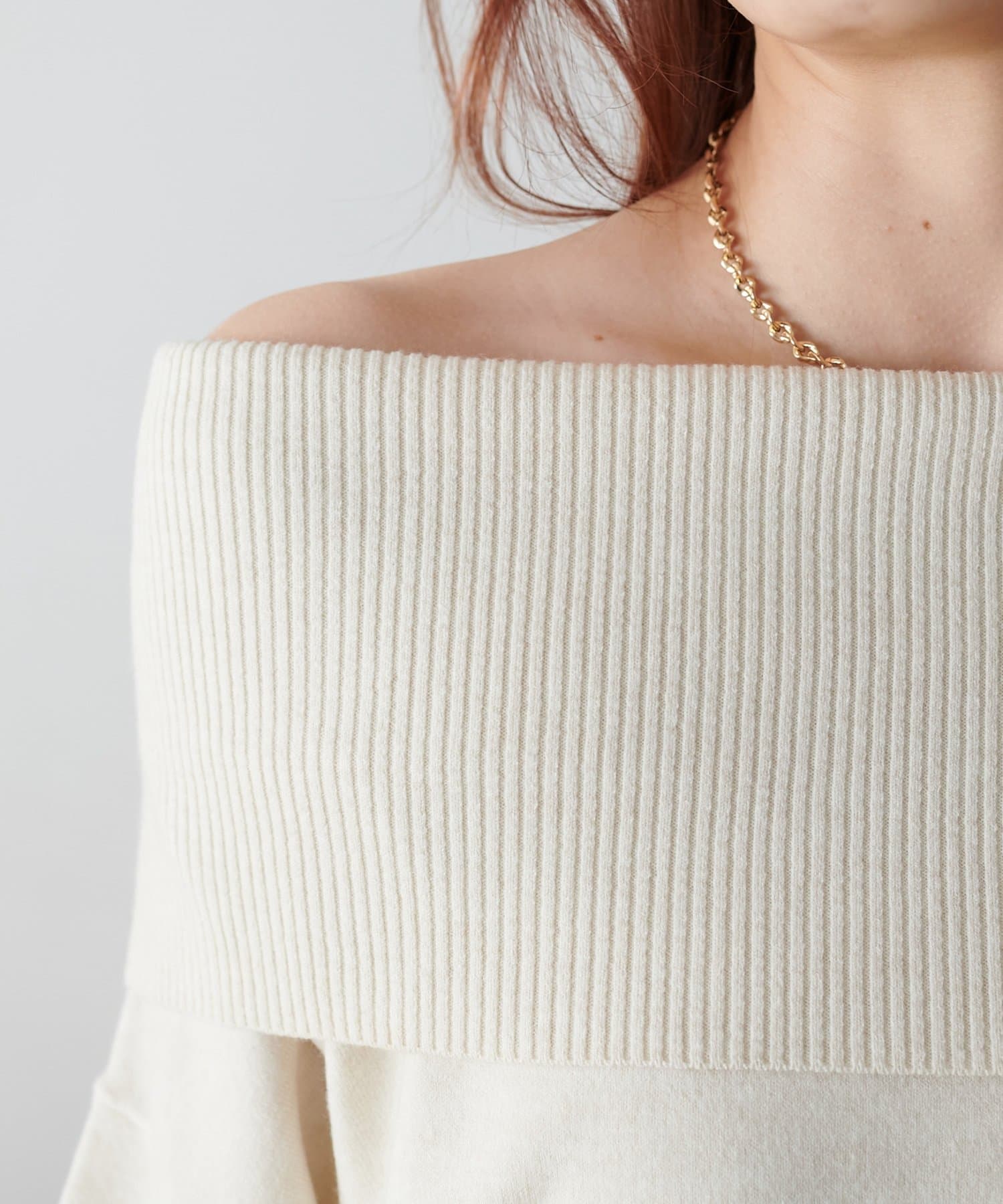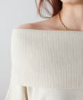 オフショルデザインでデコルテを美しく魅せ、女性らしさを引き出してくれるニット。
