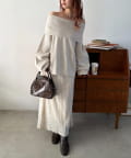 150cmスタッフ:アウトすると長めの着丈ですが、オフショルで肌がさり気なく見えるので抜け感が出ます!