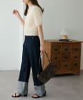 コンパクトな着丈で、ボトムスにインしたスタイルやキャミワンピースなどのインナーとして合わせてもごわつきにくいです!