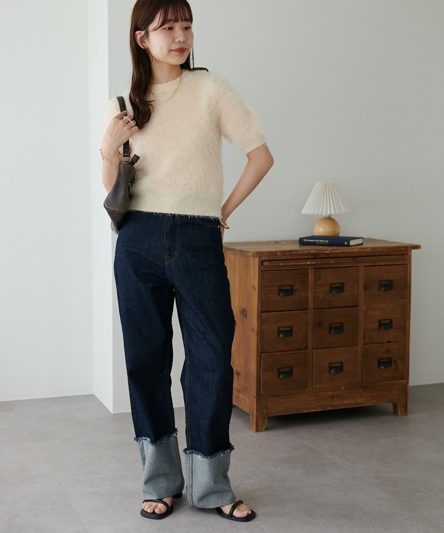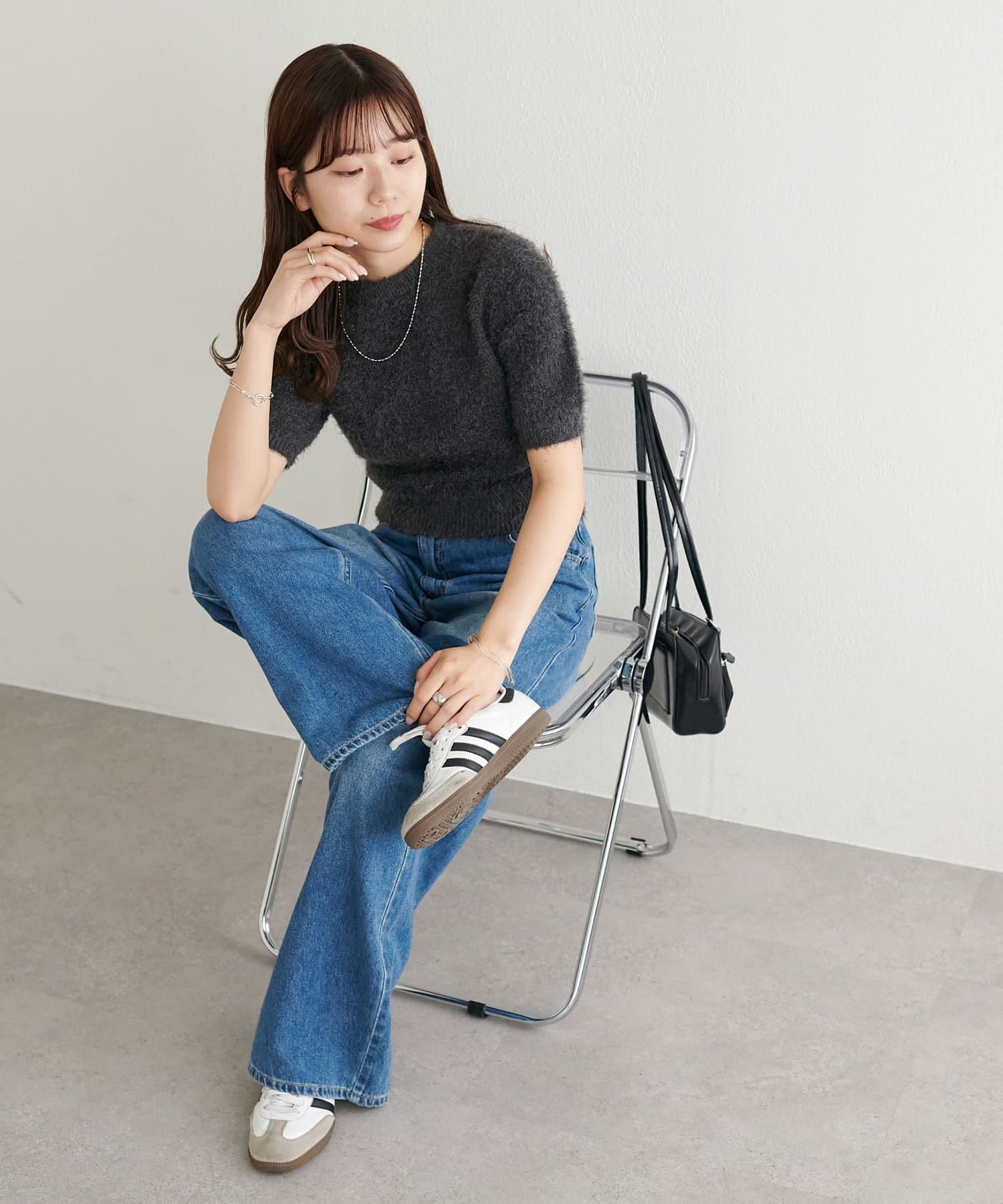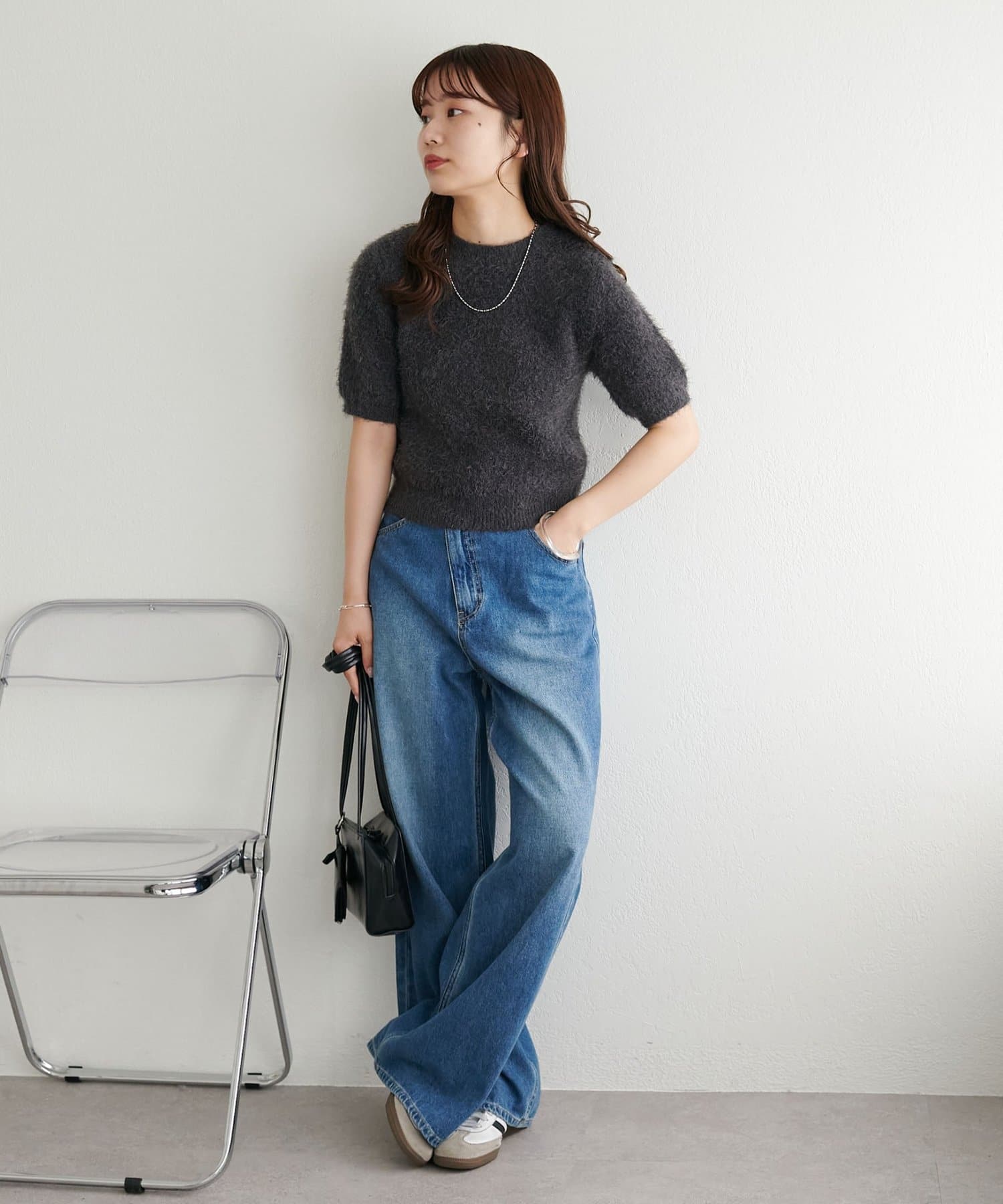 デニムアイテムやスウェットパンツと合わせたコーデではフェザーヤーンの甘目な雰囲気をカジュアルダウン出来ます!