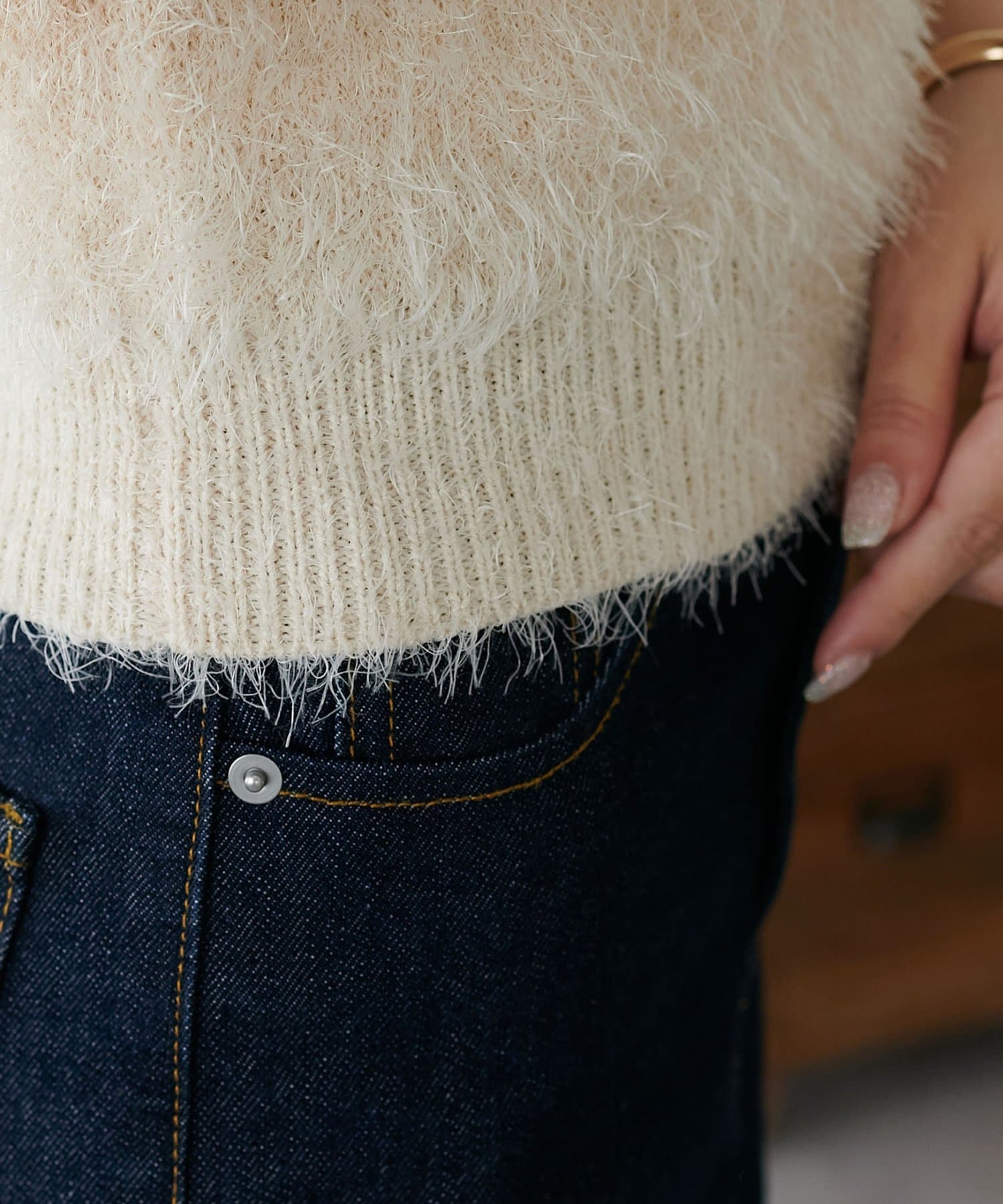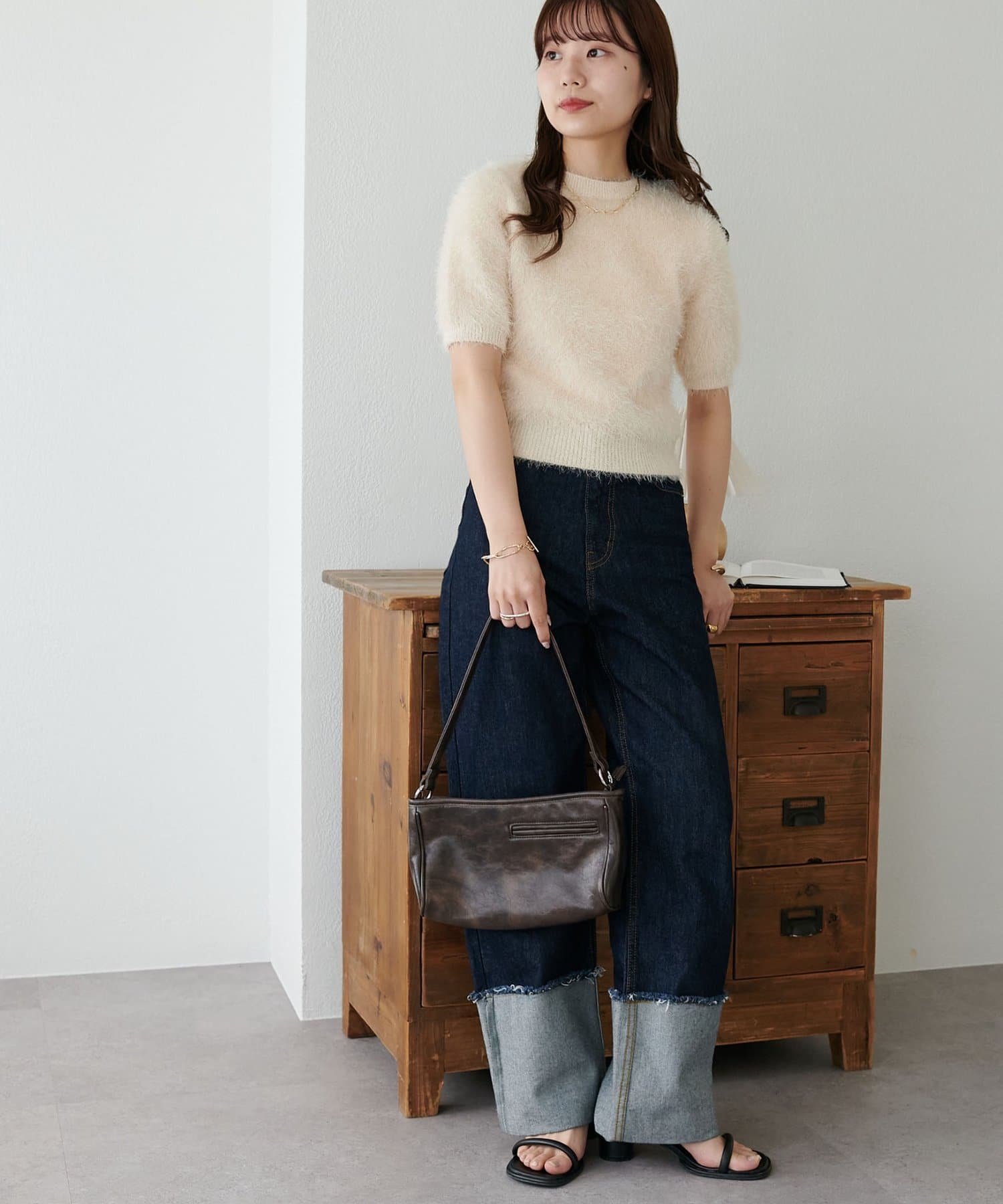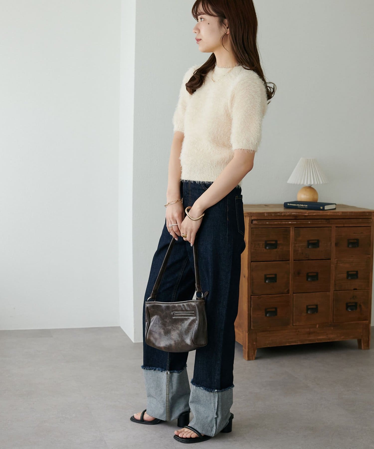 デニムアイテムやスウェットパンツと合わせたコーデではフェザーヤーンの甘目な雰囲気をカジュアルダウン出来ます!
