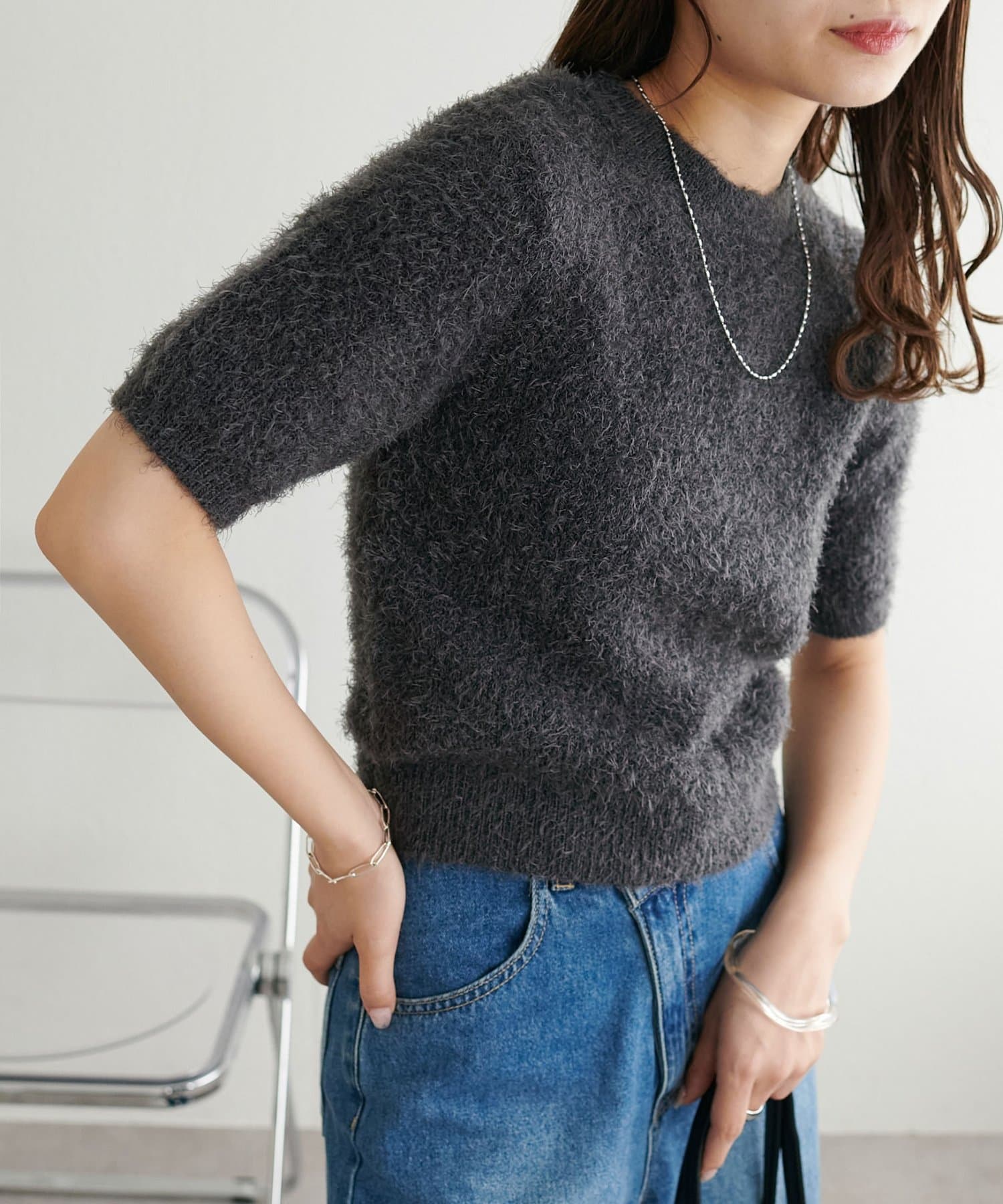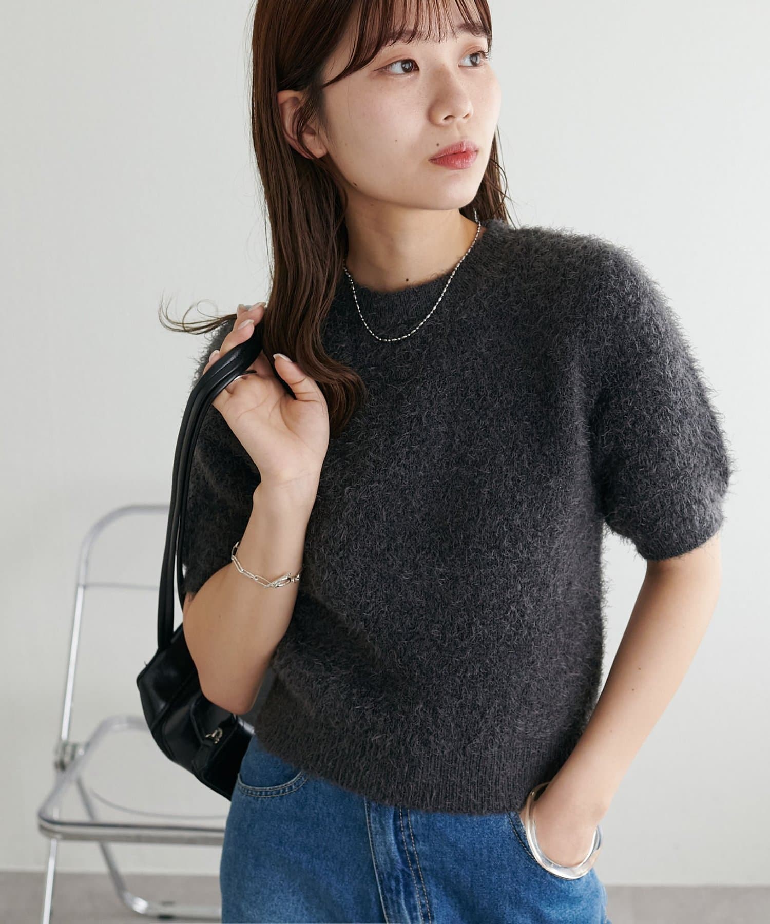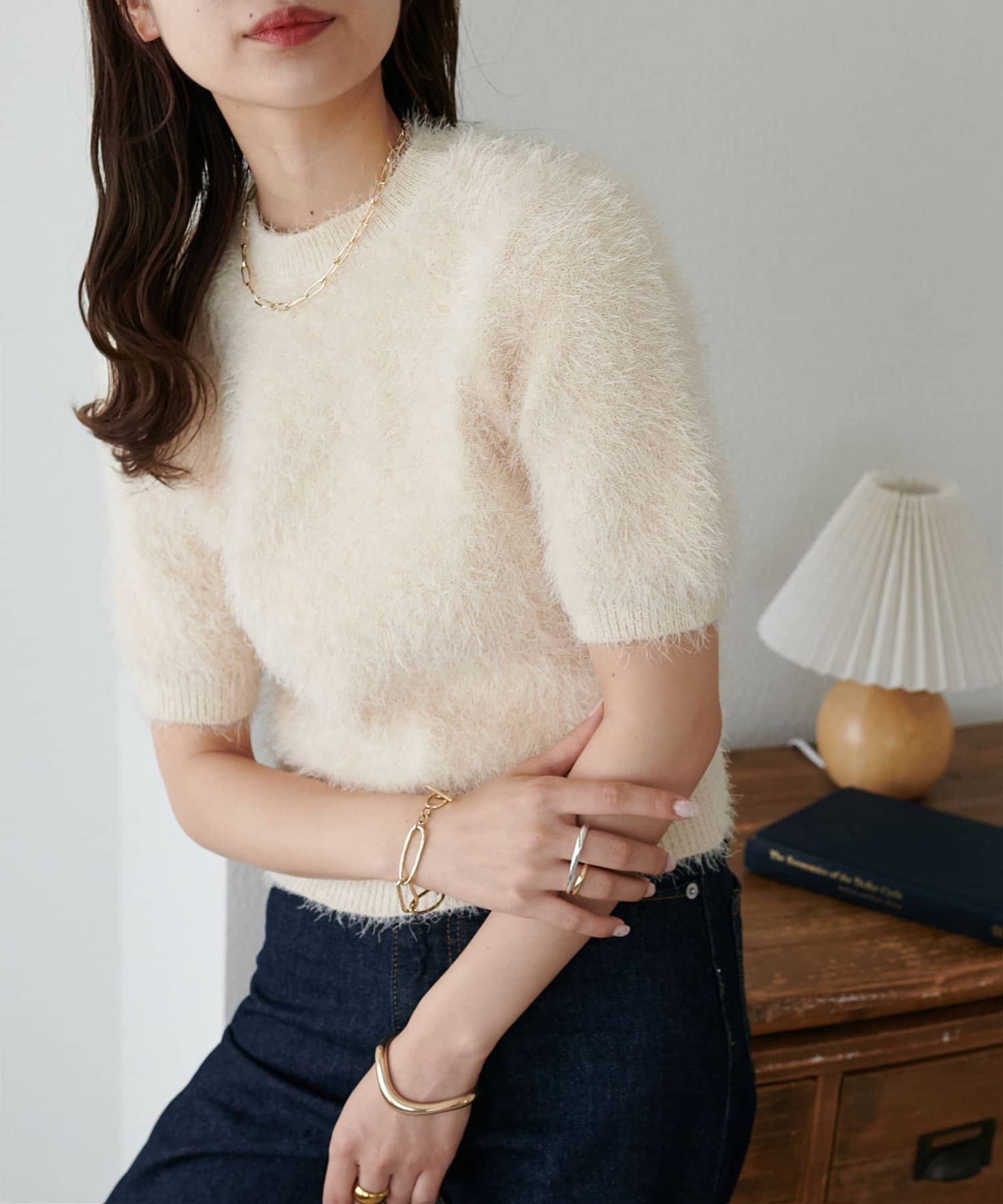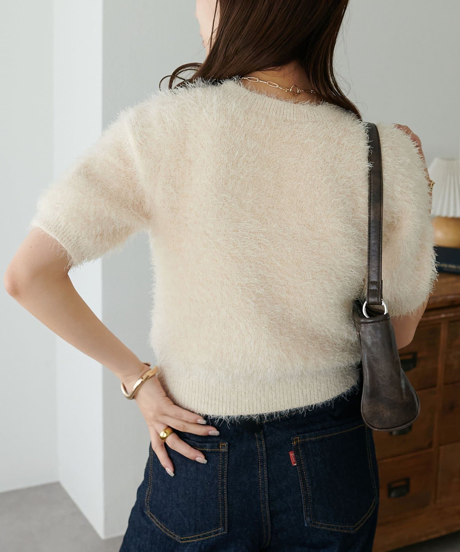 ふわふわとした毛足の長さが特徴のフェザー素材を使用した半袖ニット。