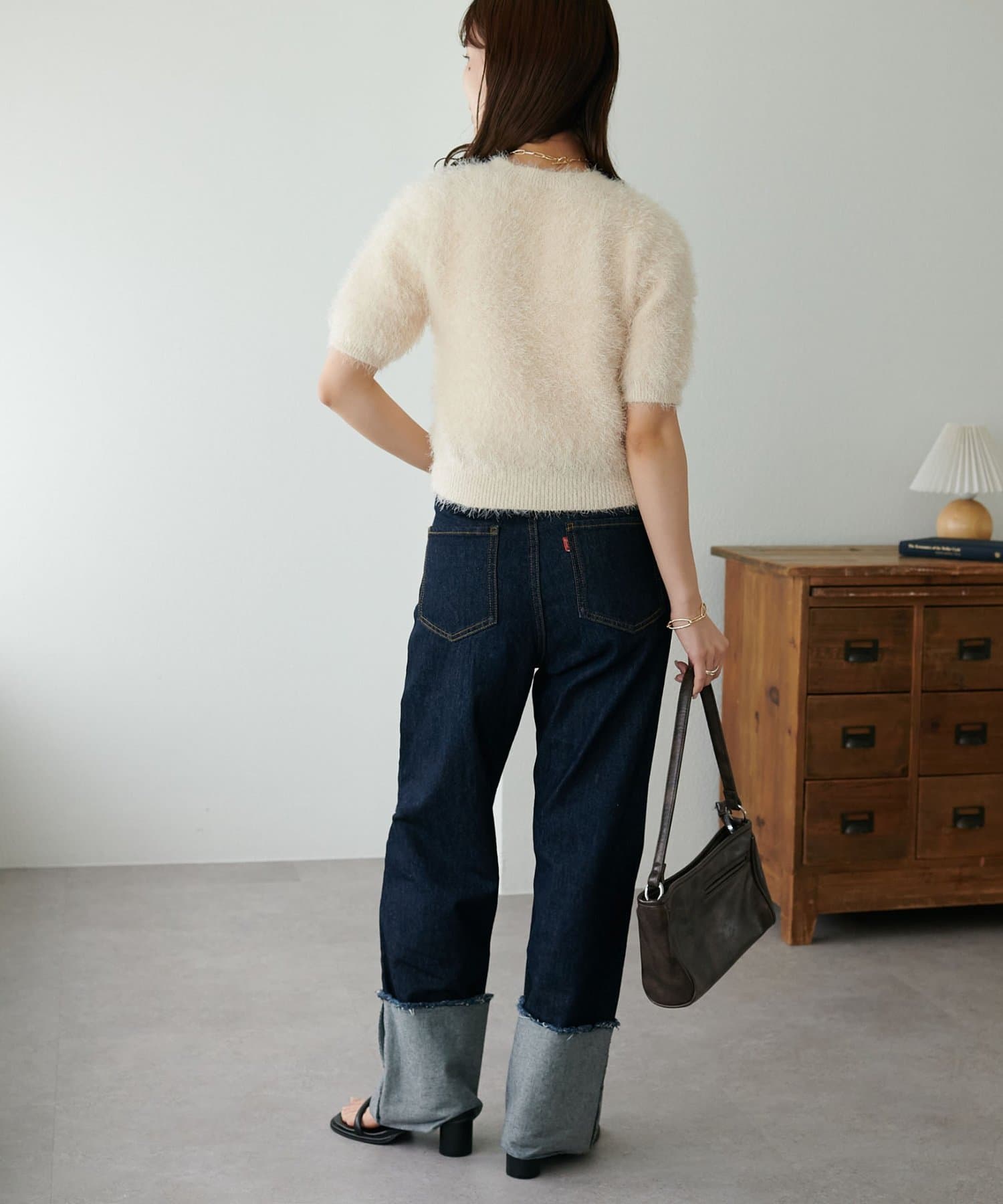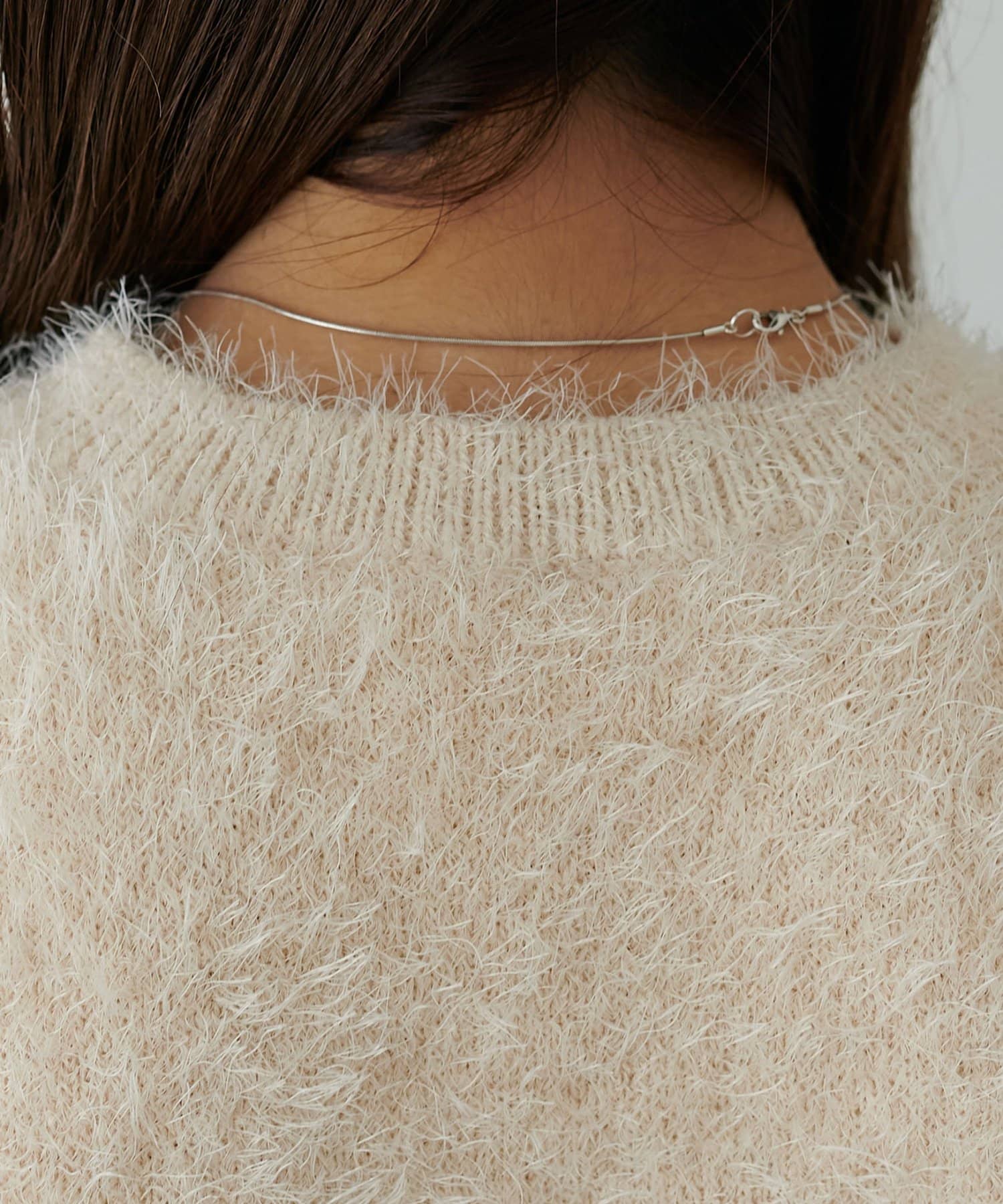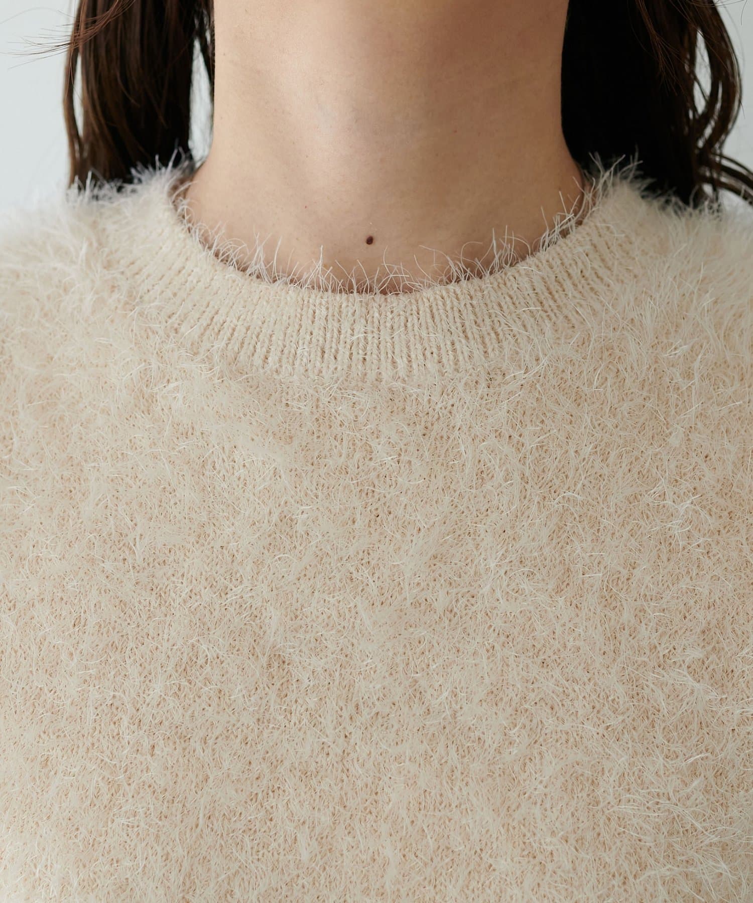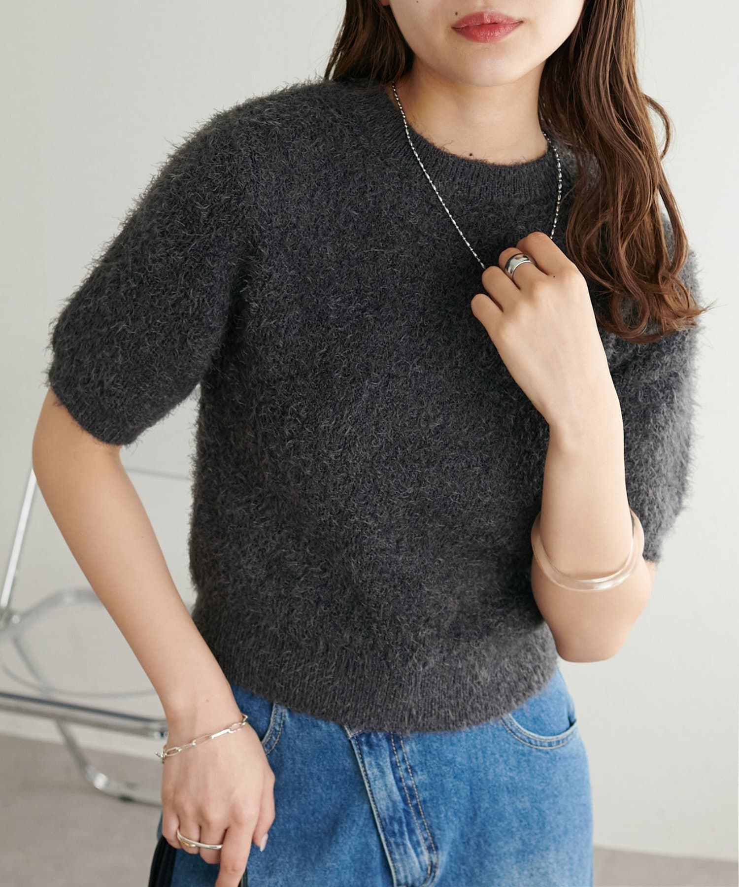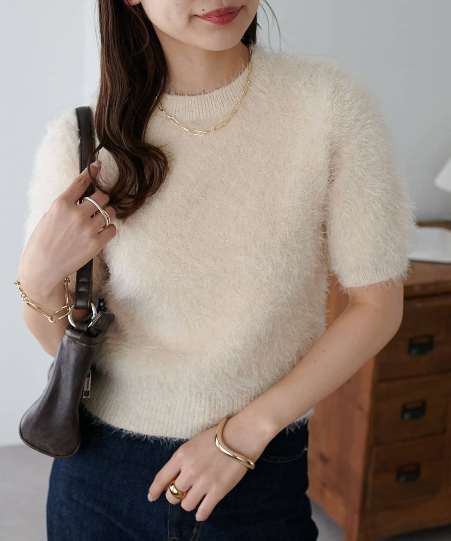 ふわふわとした毛足の長さが特徴のフェザー素材を使用した半袖ニット。