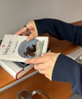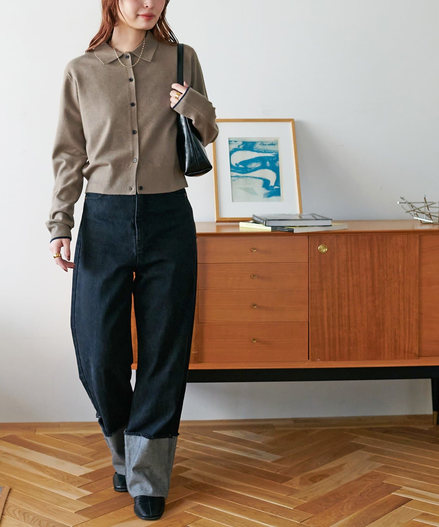 ポロ衿デザインと袖配色がポイントのモチモチカーデ。