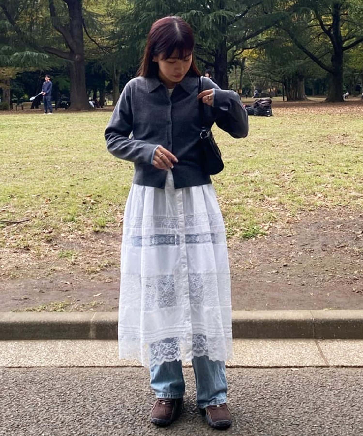 デニムアイテムやパンツと合わせて大人カジュアルコーデ