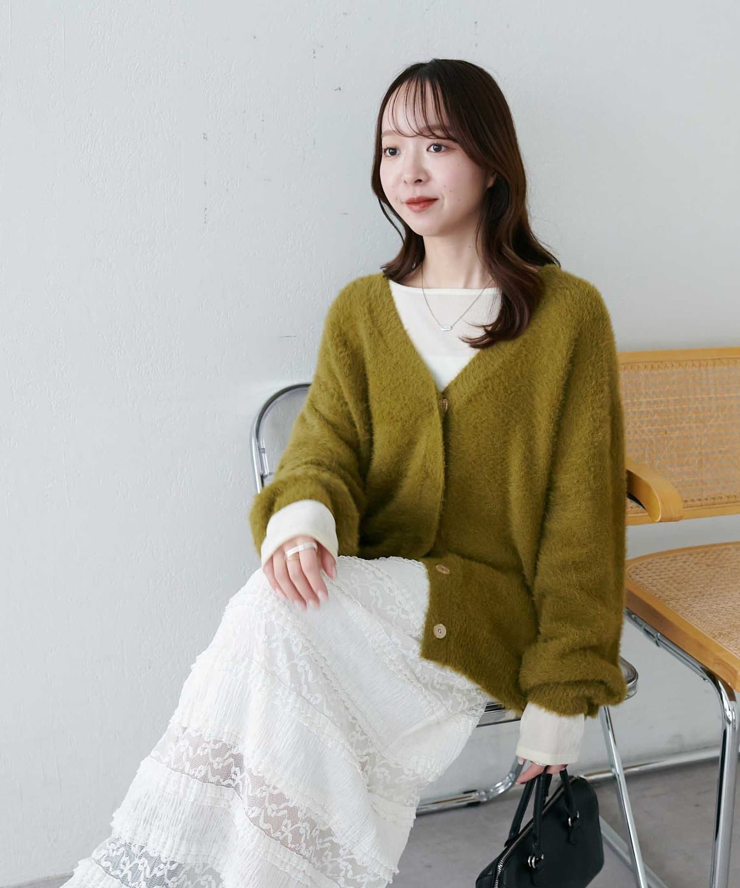 【リバイバル/リピーター多数◎】フェザーヤーンカーディガン《WEB限定カラーあり》