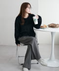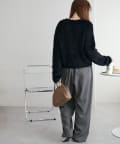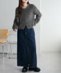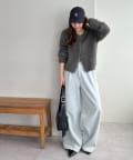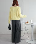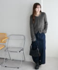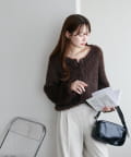 シンプルなクルーネックデザインにすることで甘くなりすぎず、カジュアルからきれいめまで幅広いスタイルにマッチ◎フロントは同色のボタン仕様で、全体の印象をすっきりとまとめつつ、上品なアクセントを添えています。