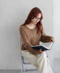 ロングフェザーヤーンクルーカーディガン《WEB限定カラーあり》