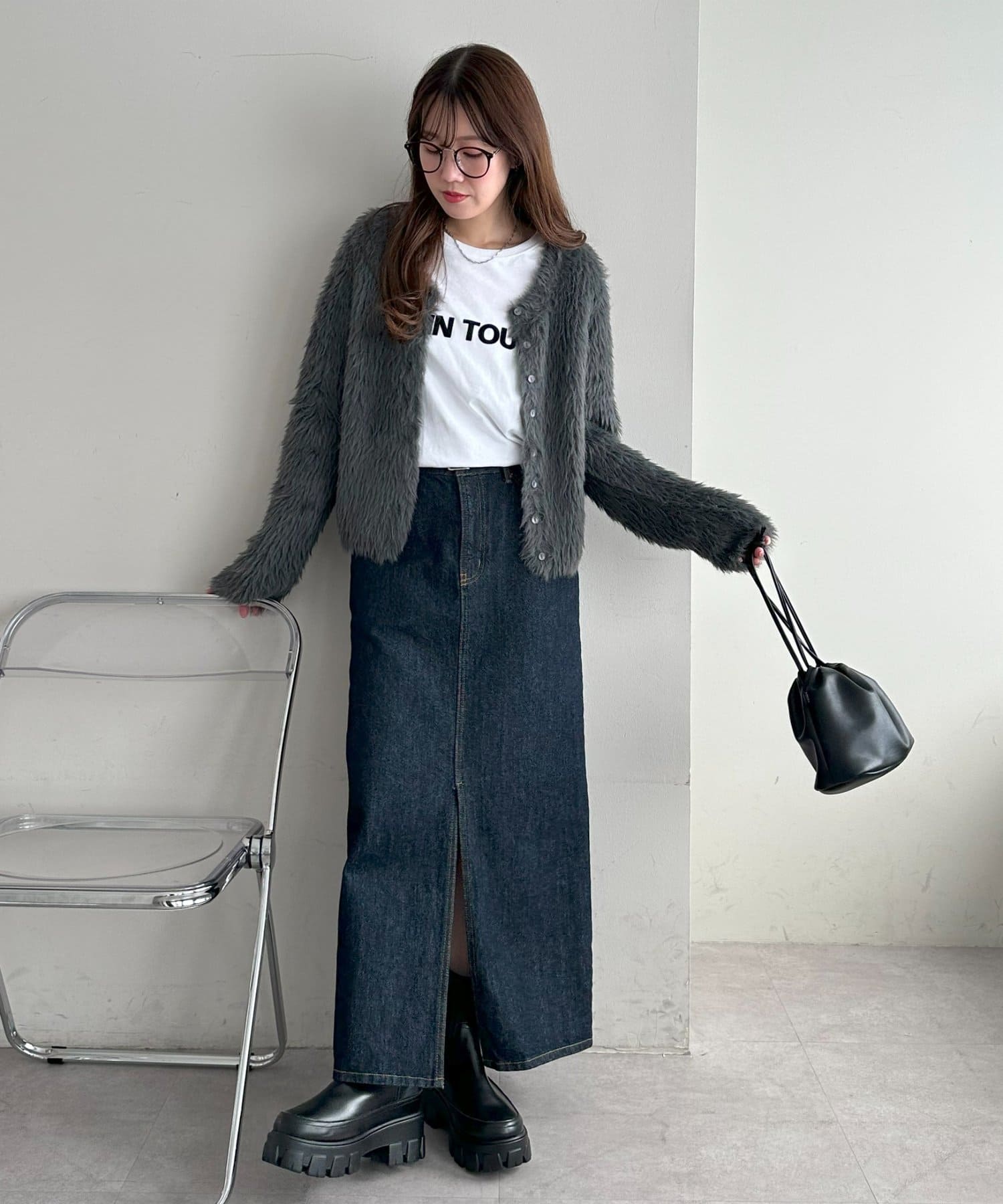 ロゴTやデニムと合わせたカジュアルな着こなしはもちろん、スカートやワンピースの上に羽織ってフェミニンな着こなしも。
