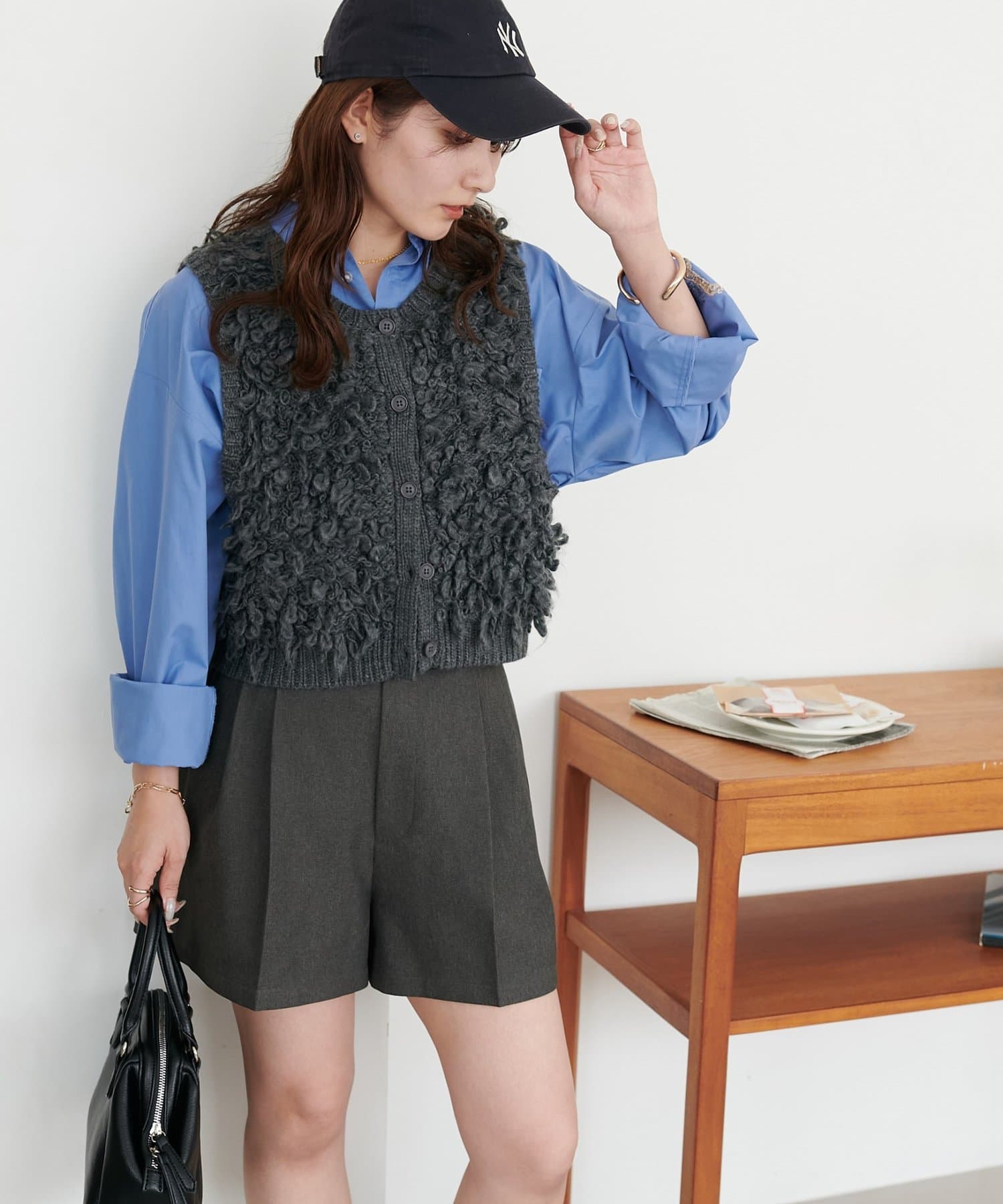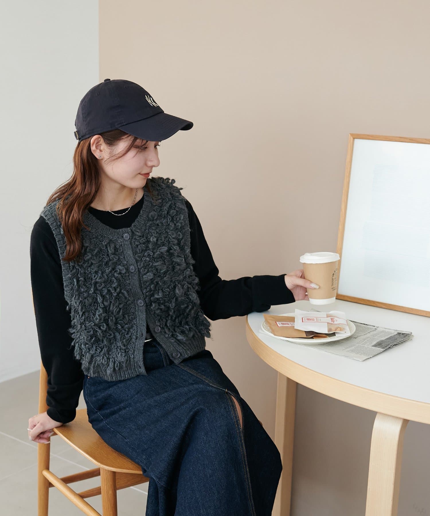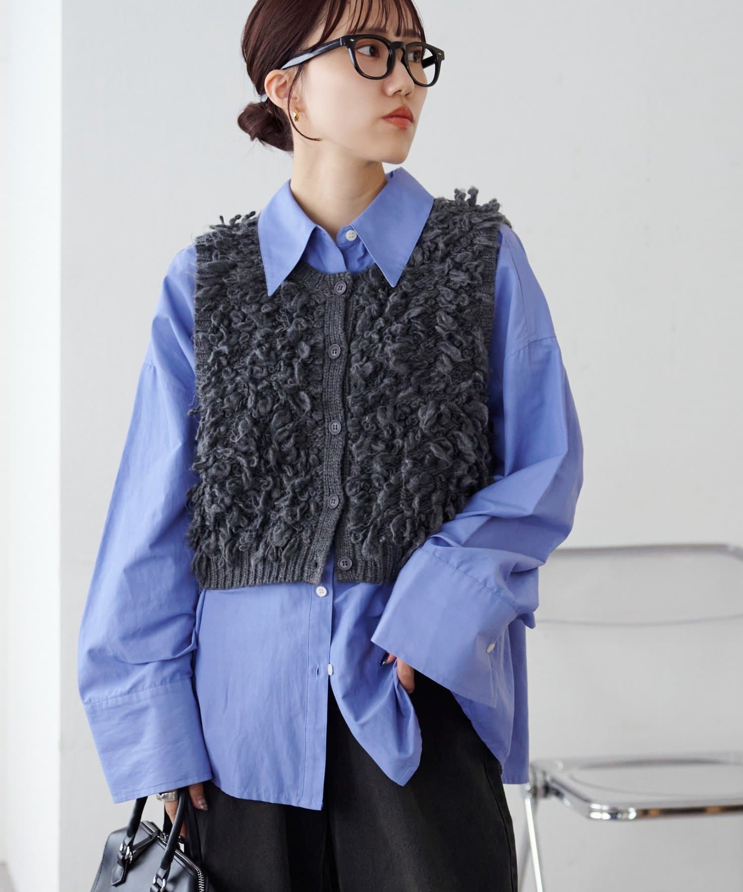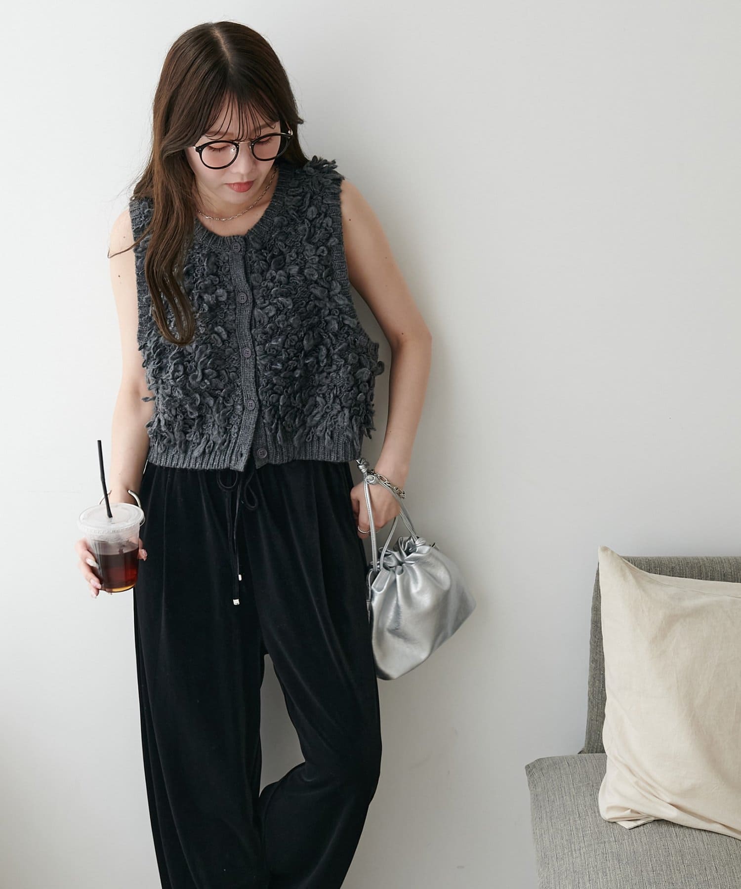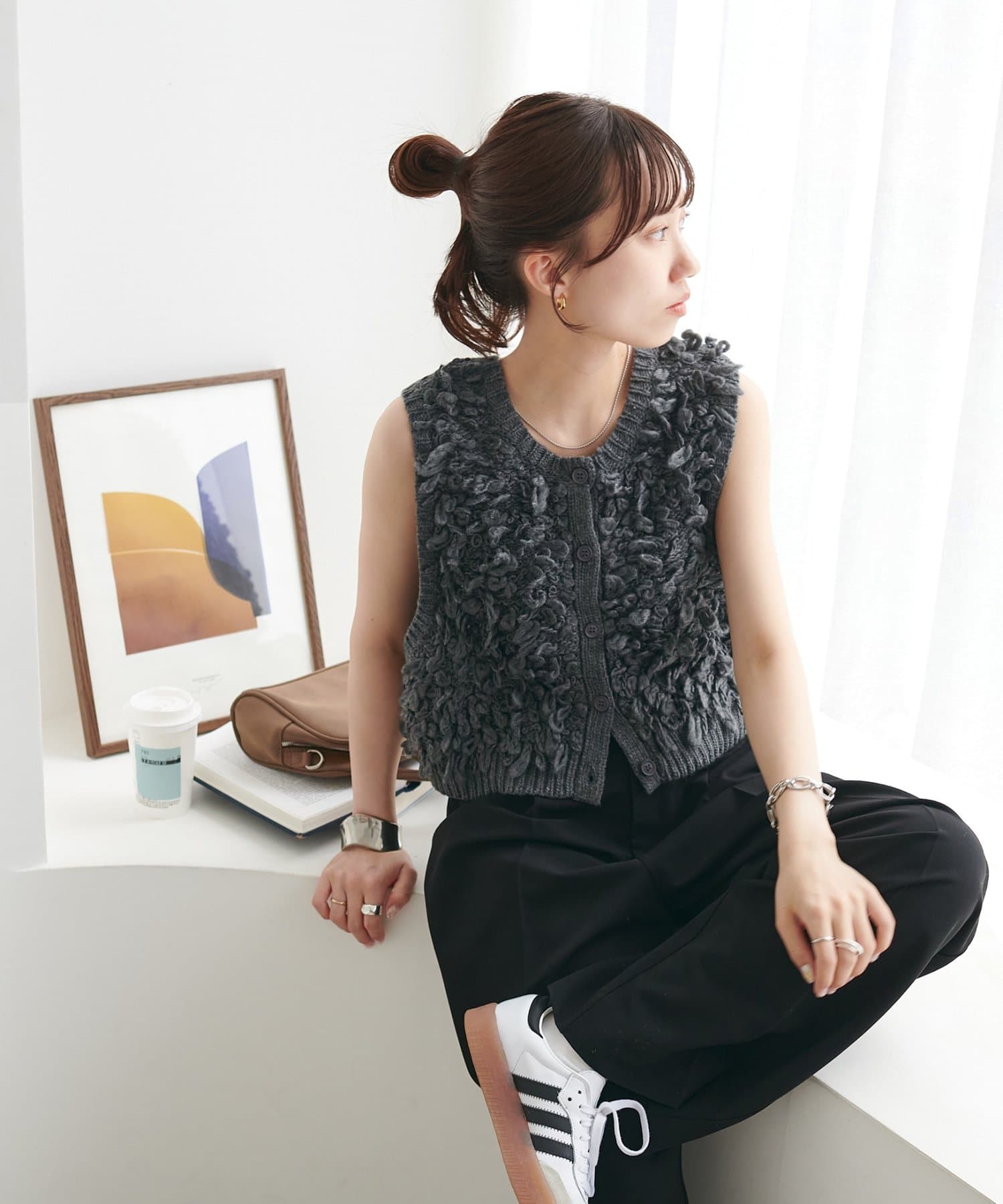 表情豊かなループヤーンを全体に施した、ふんわり立体感のあるニットベスト。