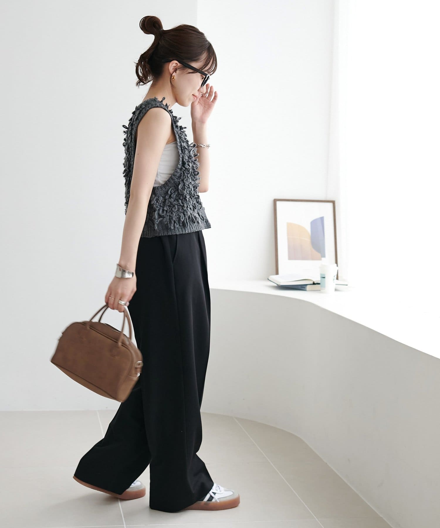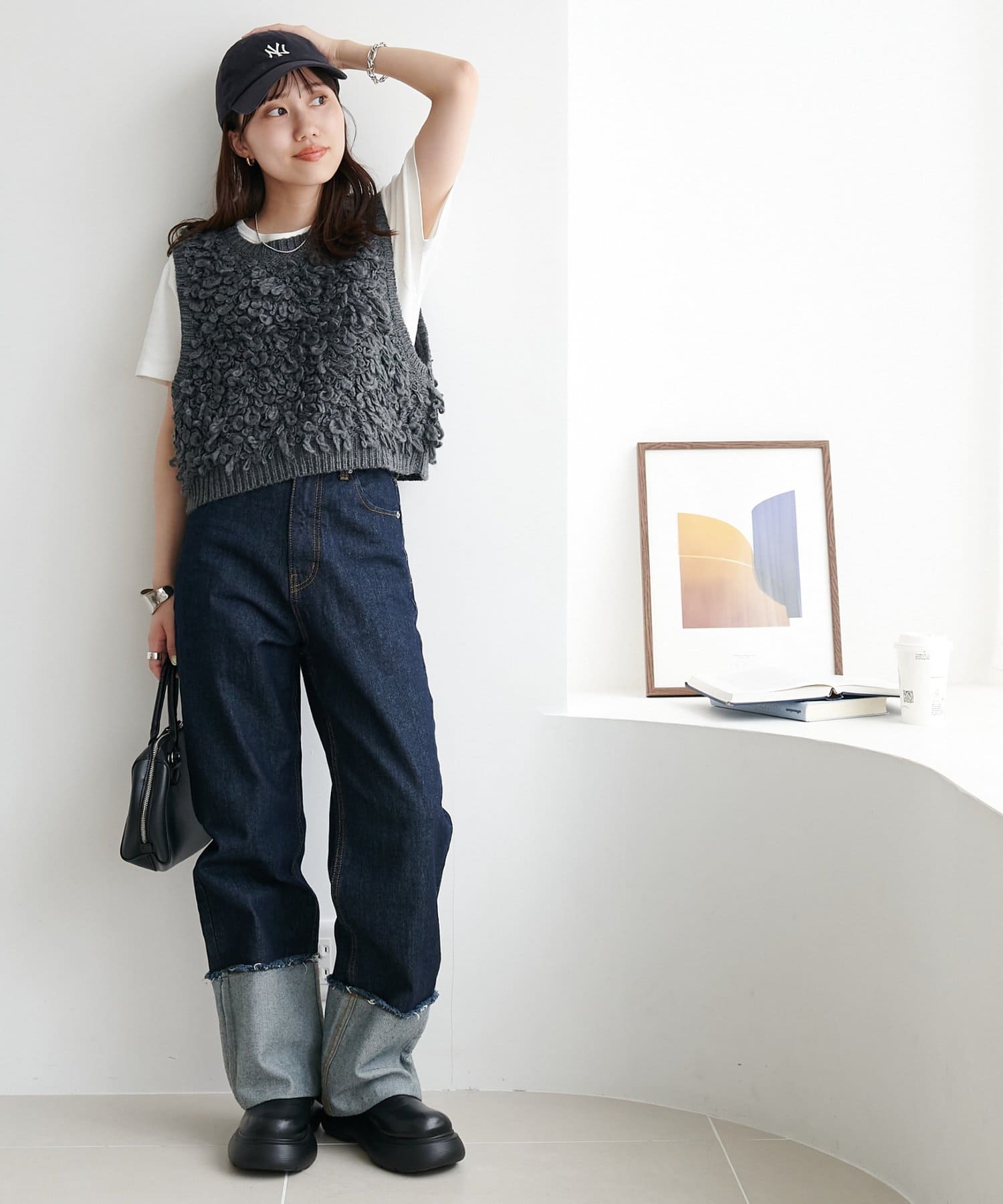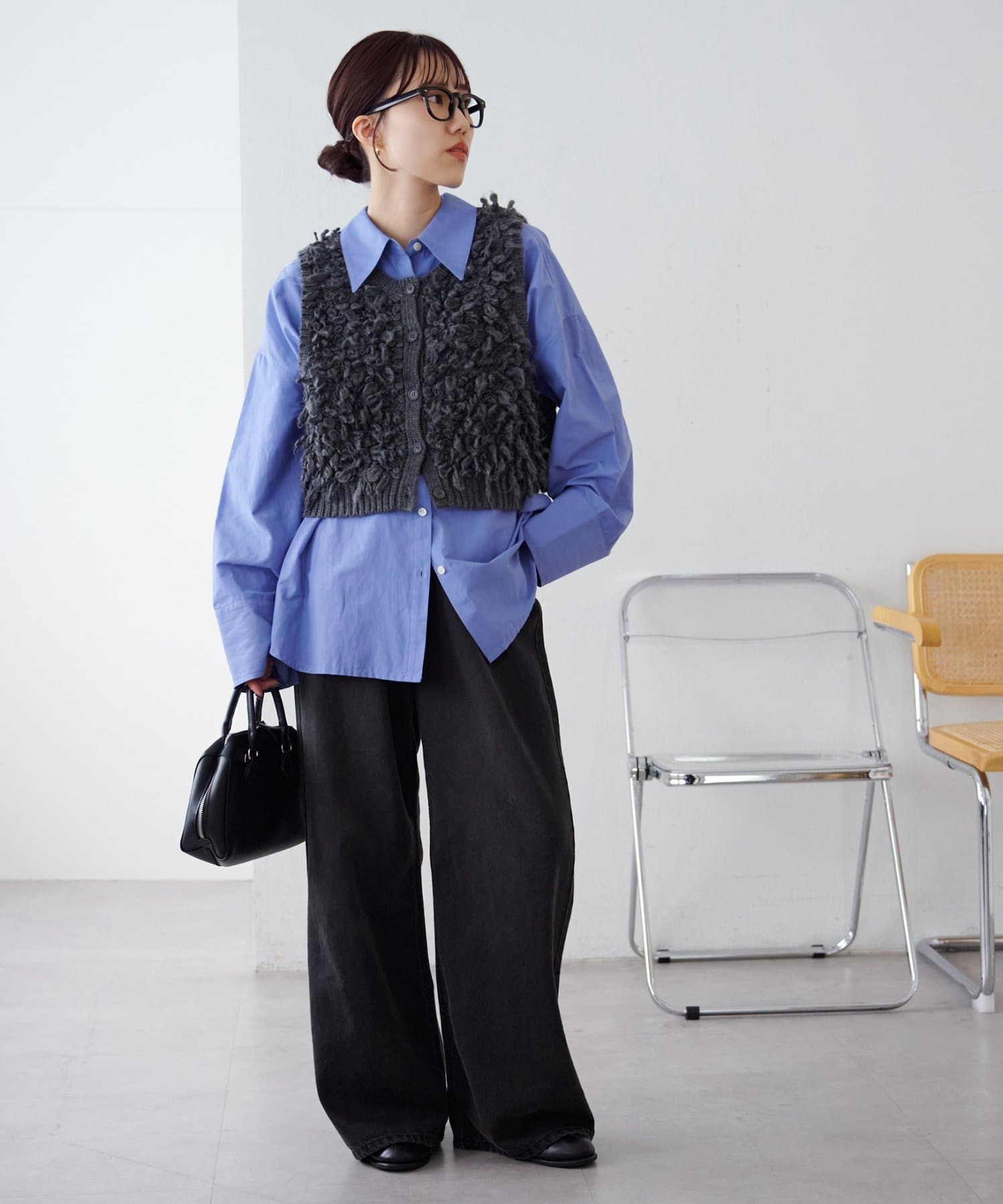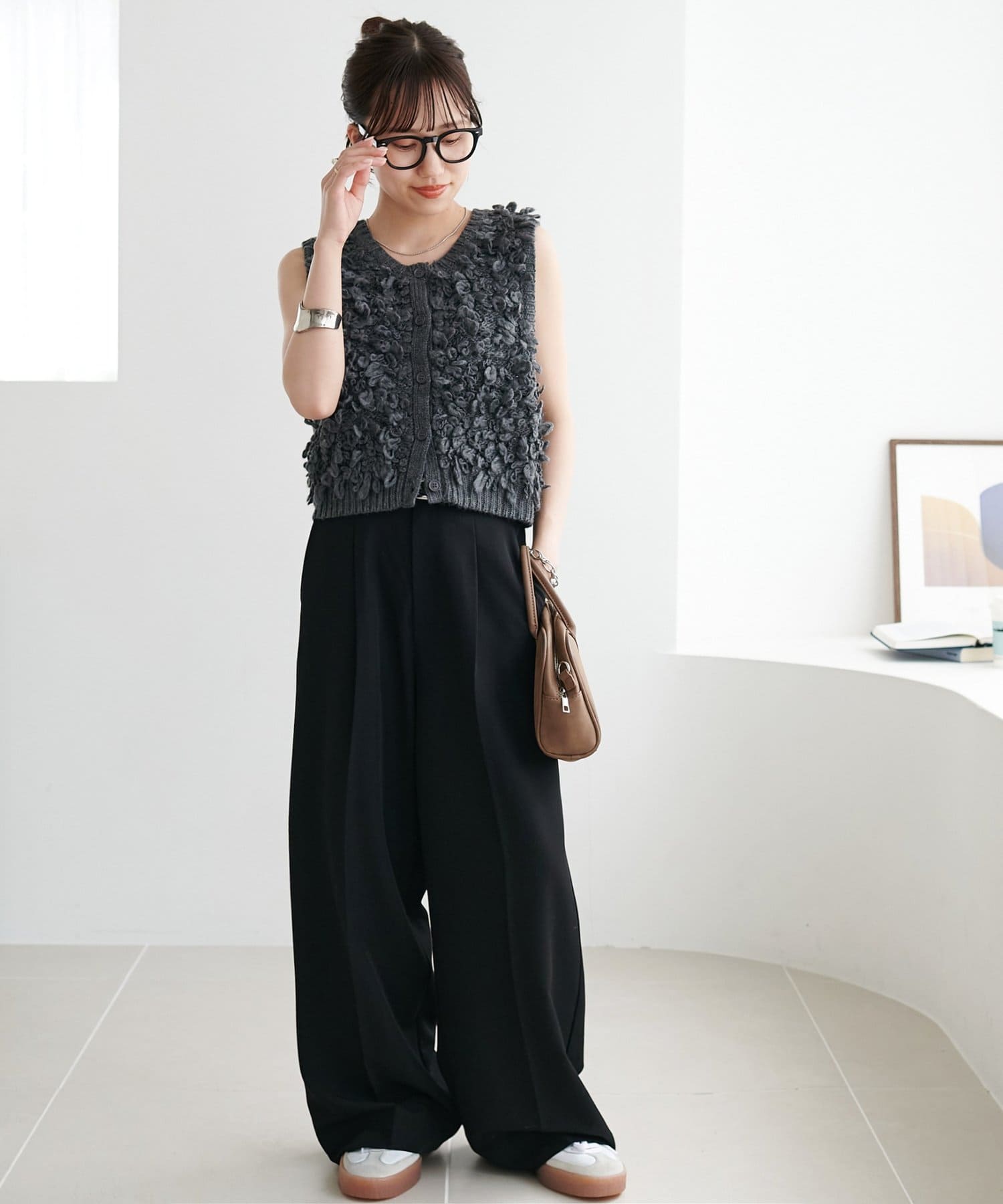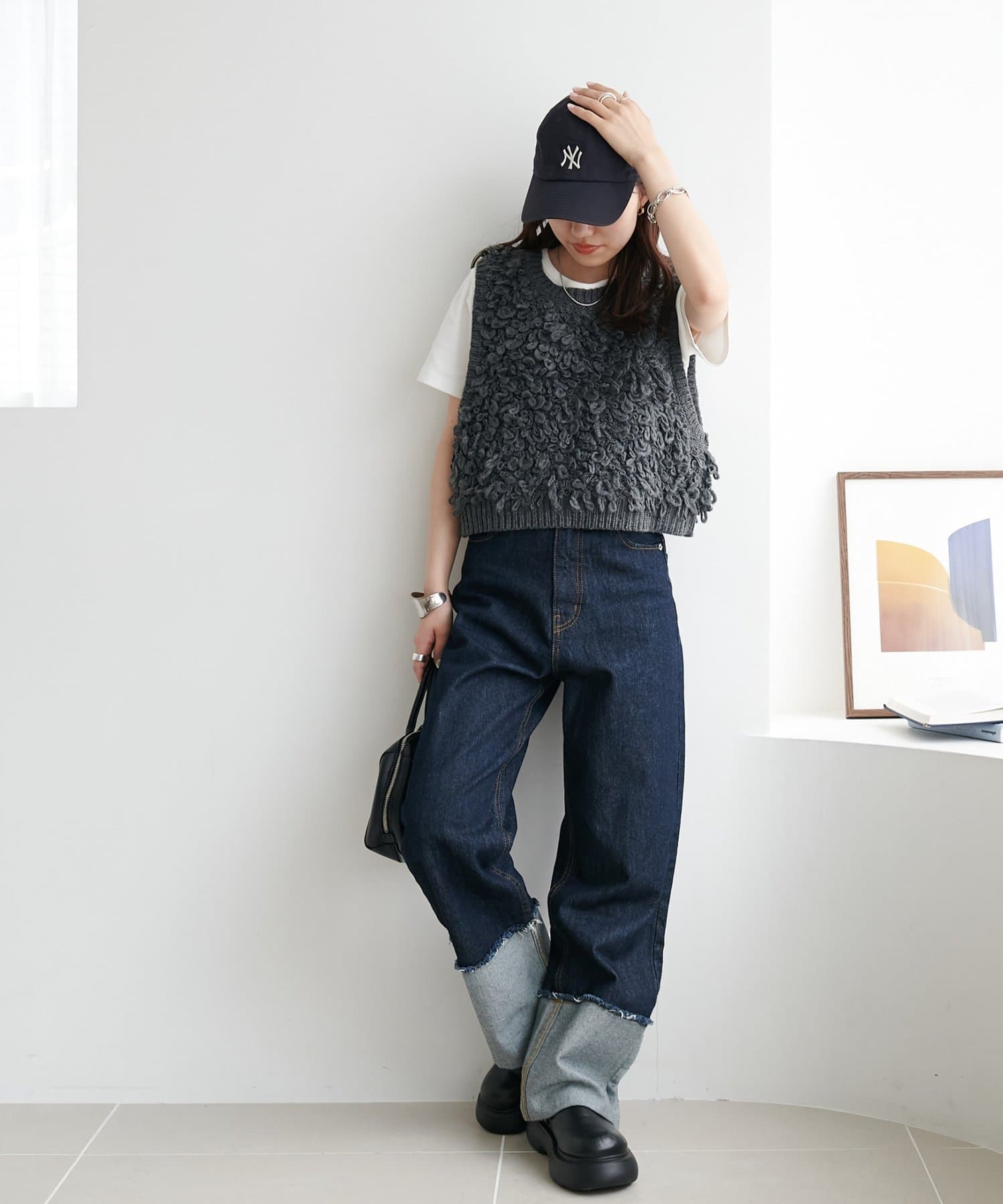 コンパクトなサイズ感なのでハイウエストやワイドボトムと合わせるとバランスよく着こなせます!