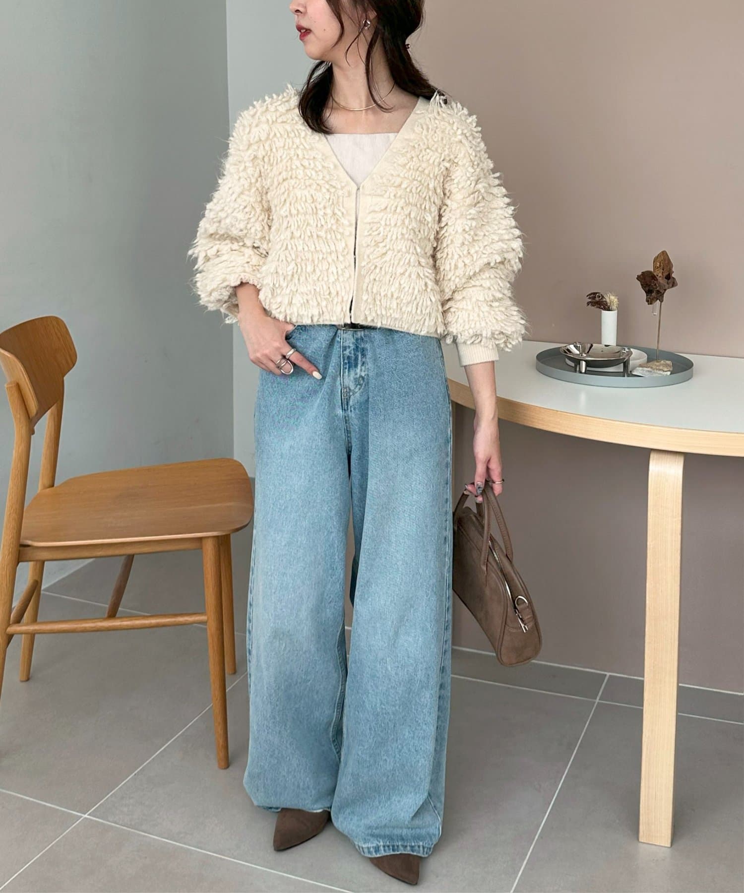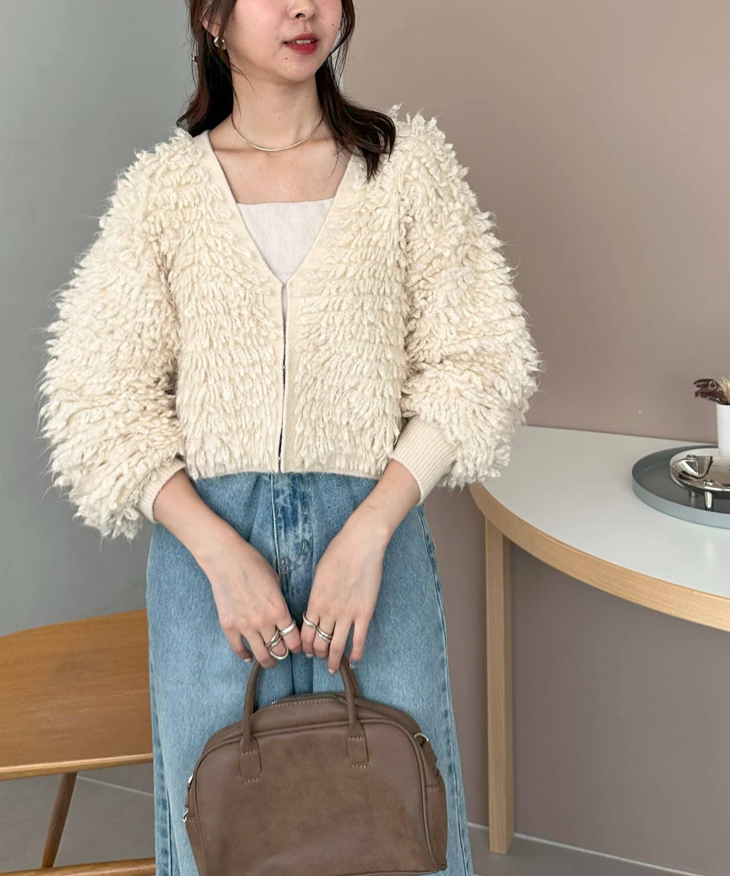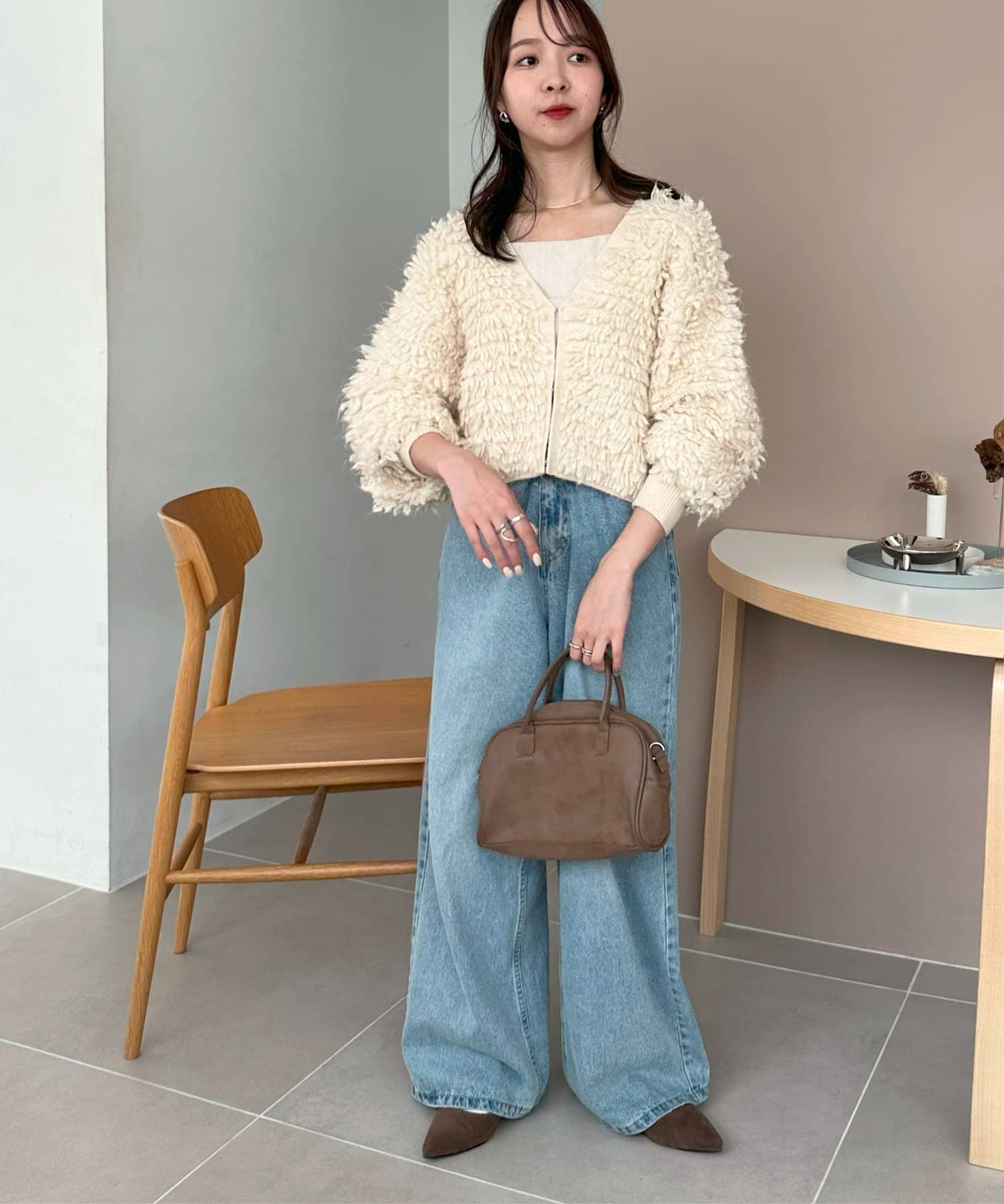 ボリューム感のあるフリンジが目を惹くカーディガンコーデの主役に!