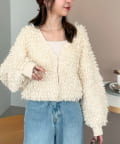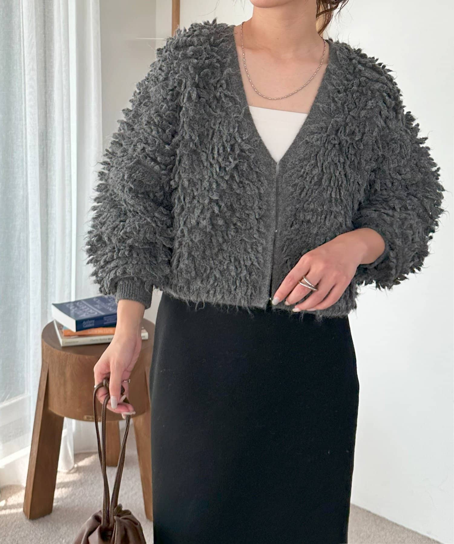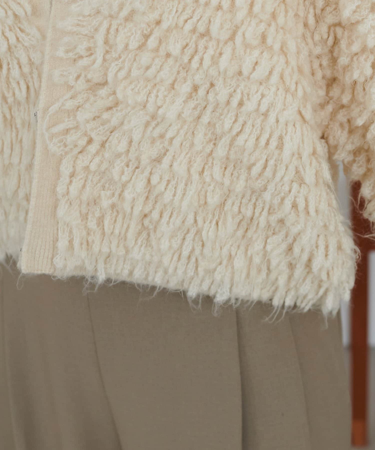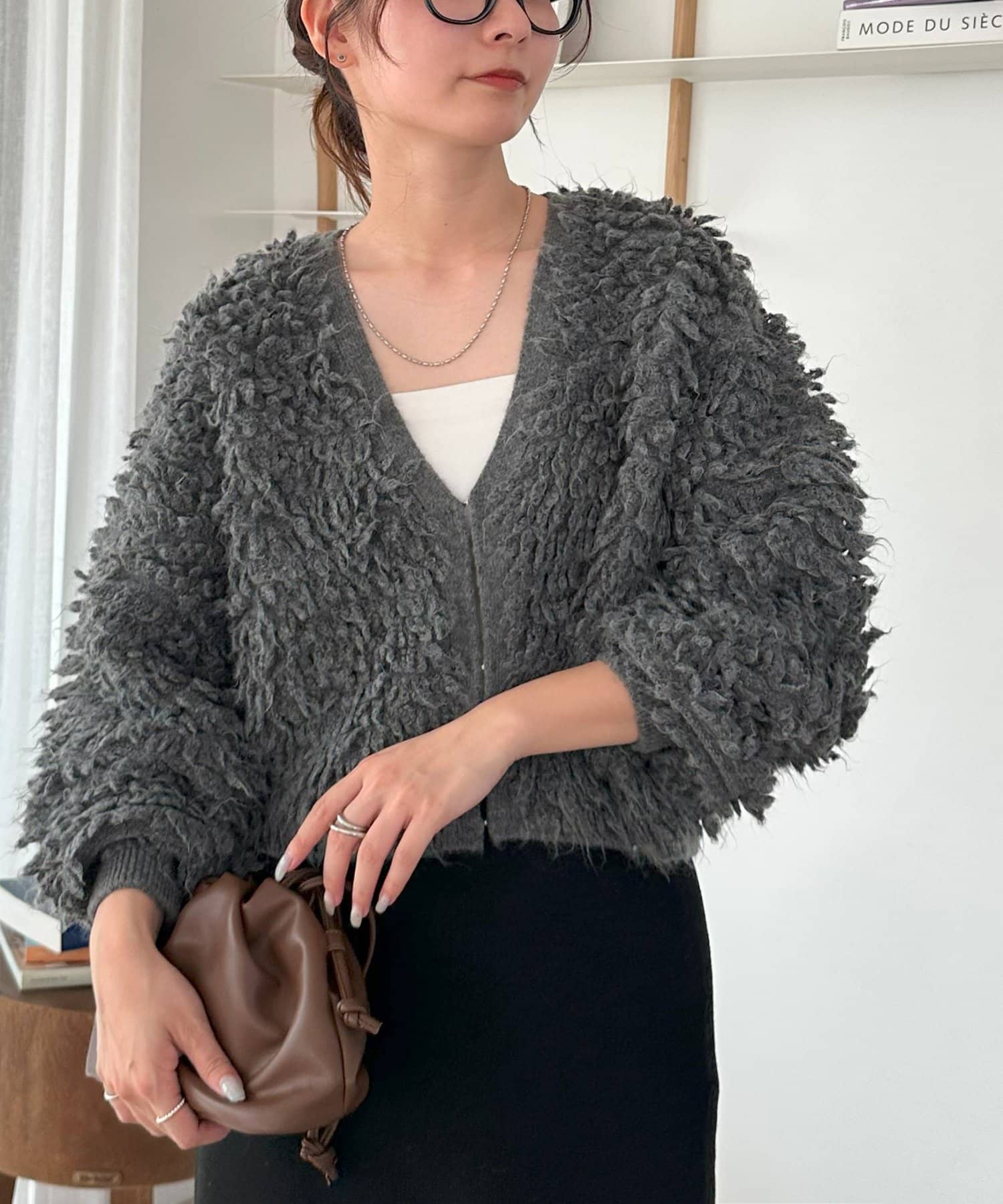 ボリューム感のあるフリンジが目を惹くカーディガンコーデの主役に!