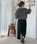秋はキャミソールを合わせて、冬はタートルネックやインナーでポイントをプラスしていただくのもおすすめ〇