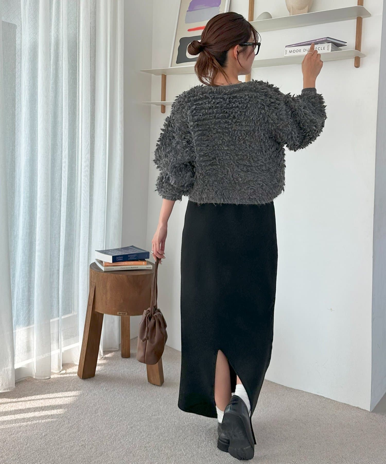 コンパクトな着丈なので、パンツ、スカート、ワンピースと様々なアイテムと合わせて楽しめます。