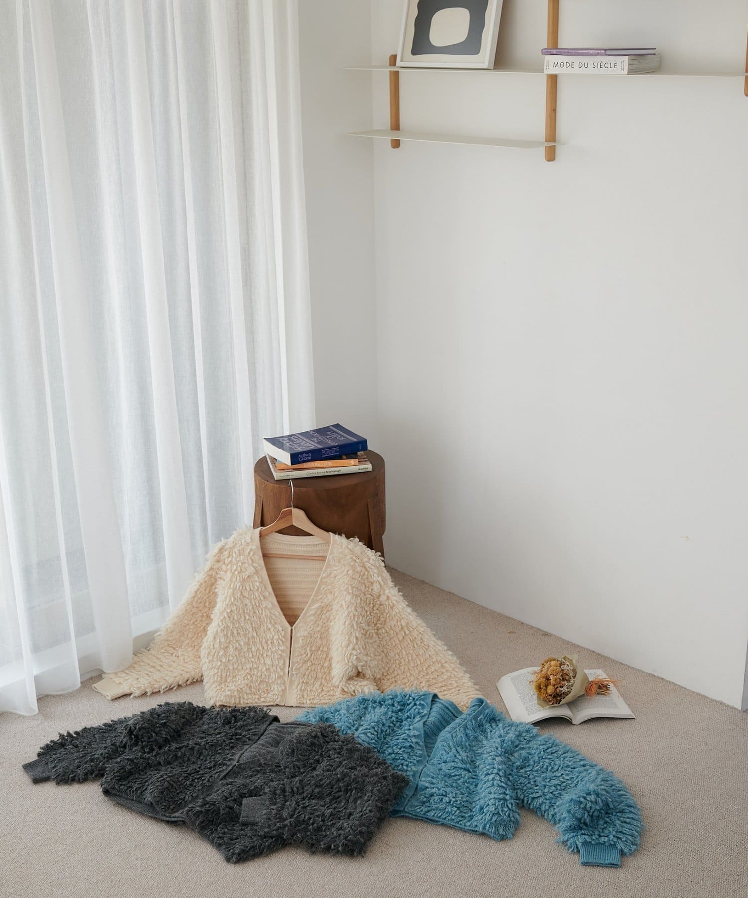 フックを留めて一枚着としても、開けて羽織としても活躍します。