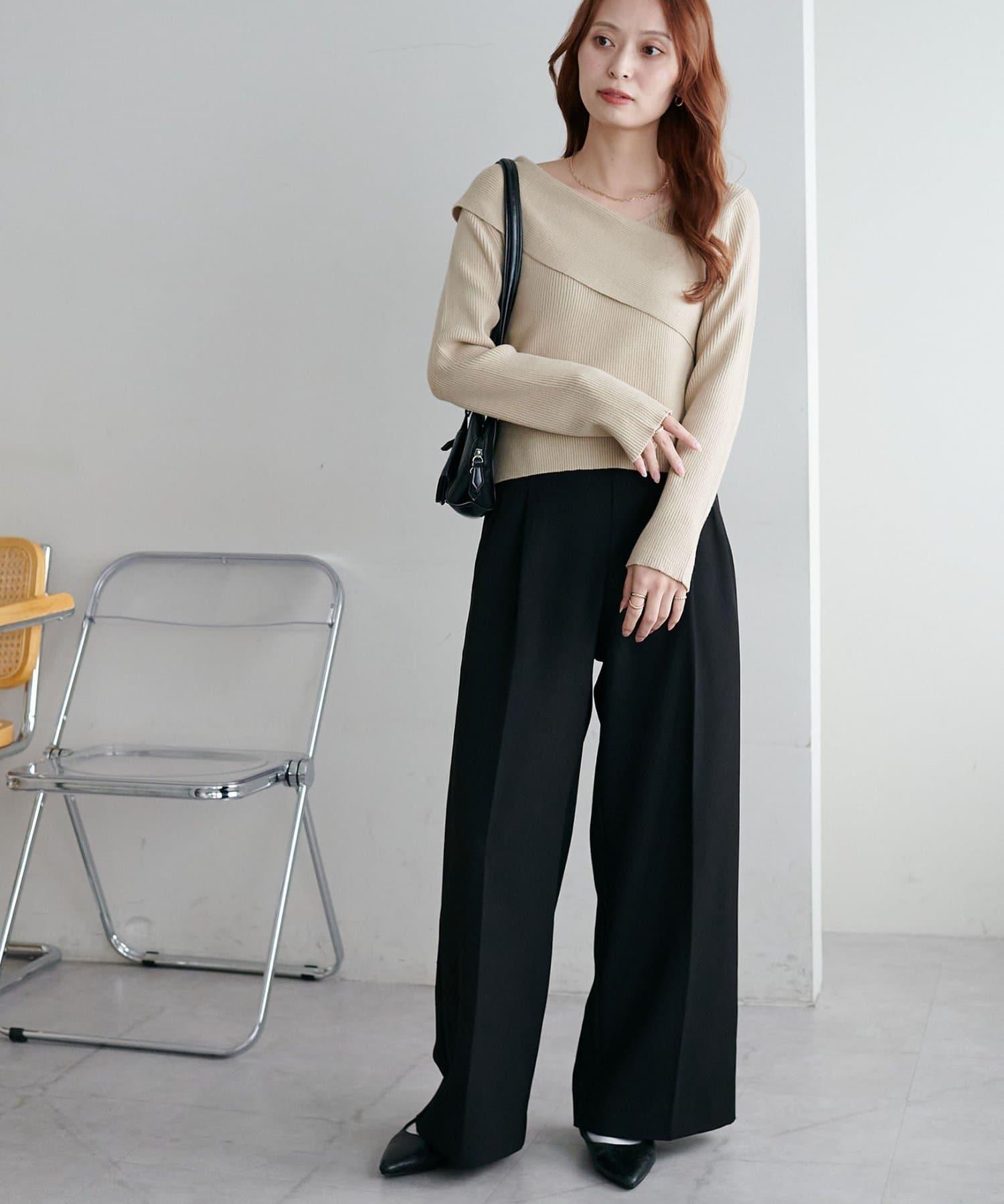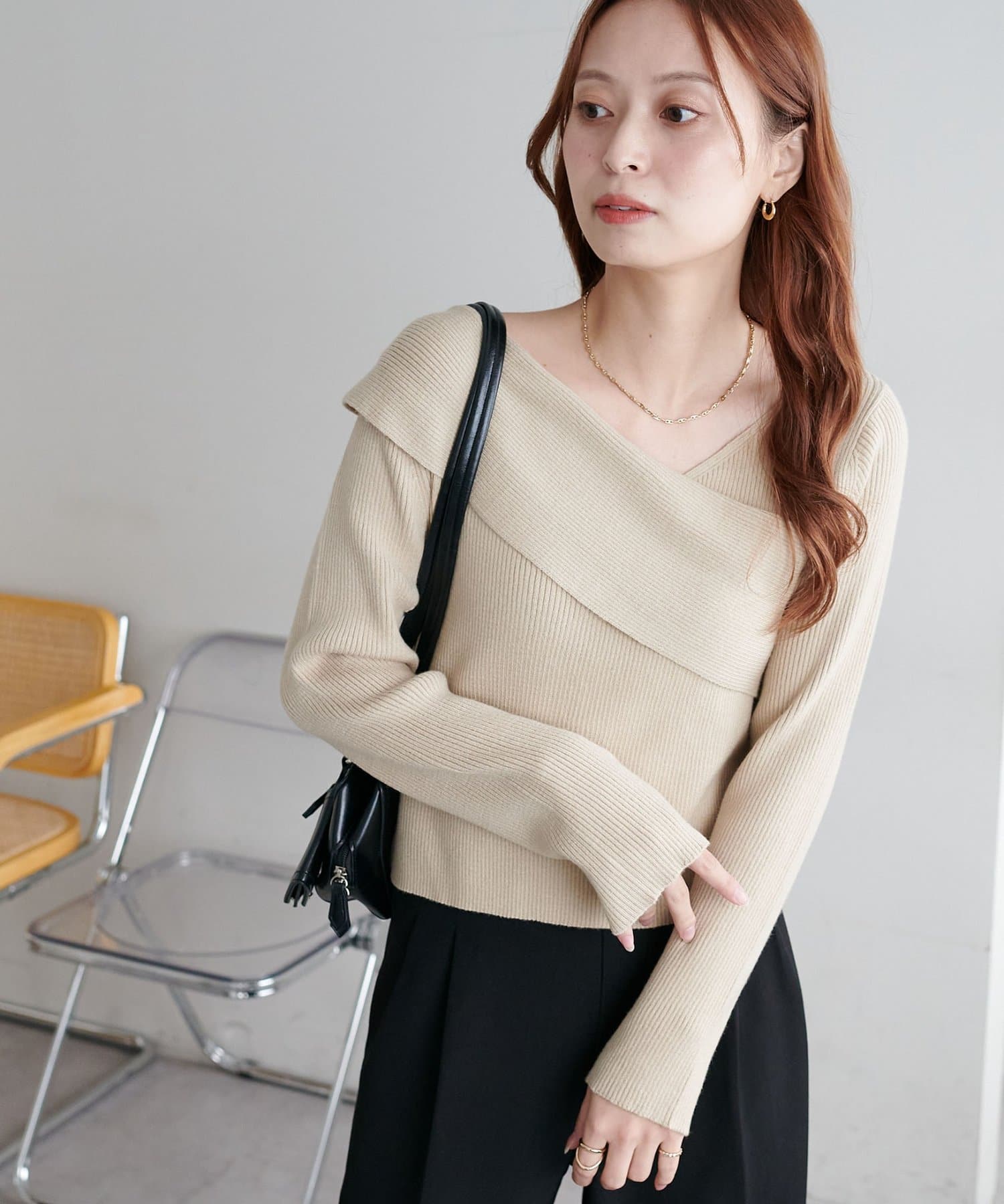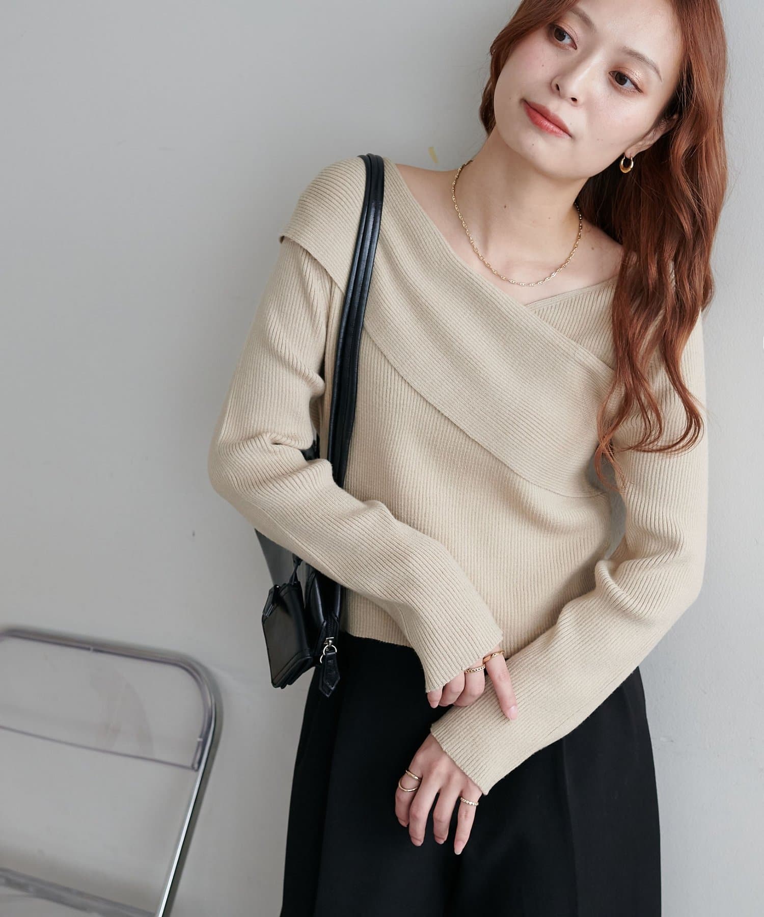 【上品な肌見せ】アシメニットトップス《WEB限定》