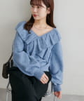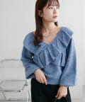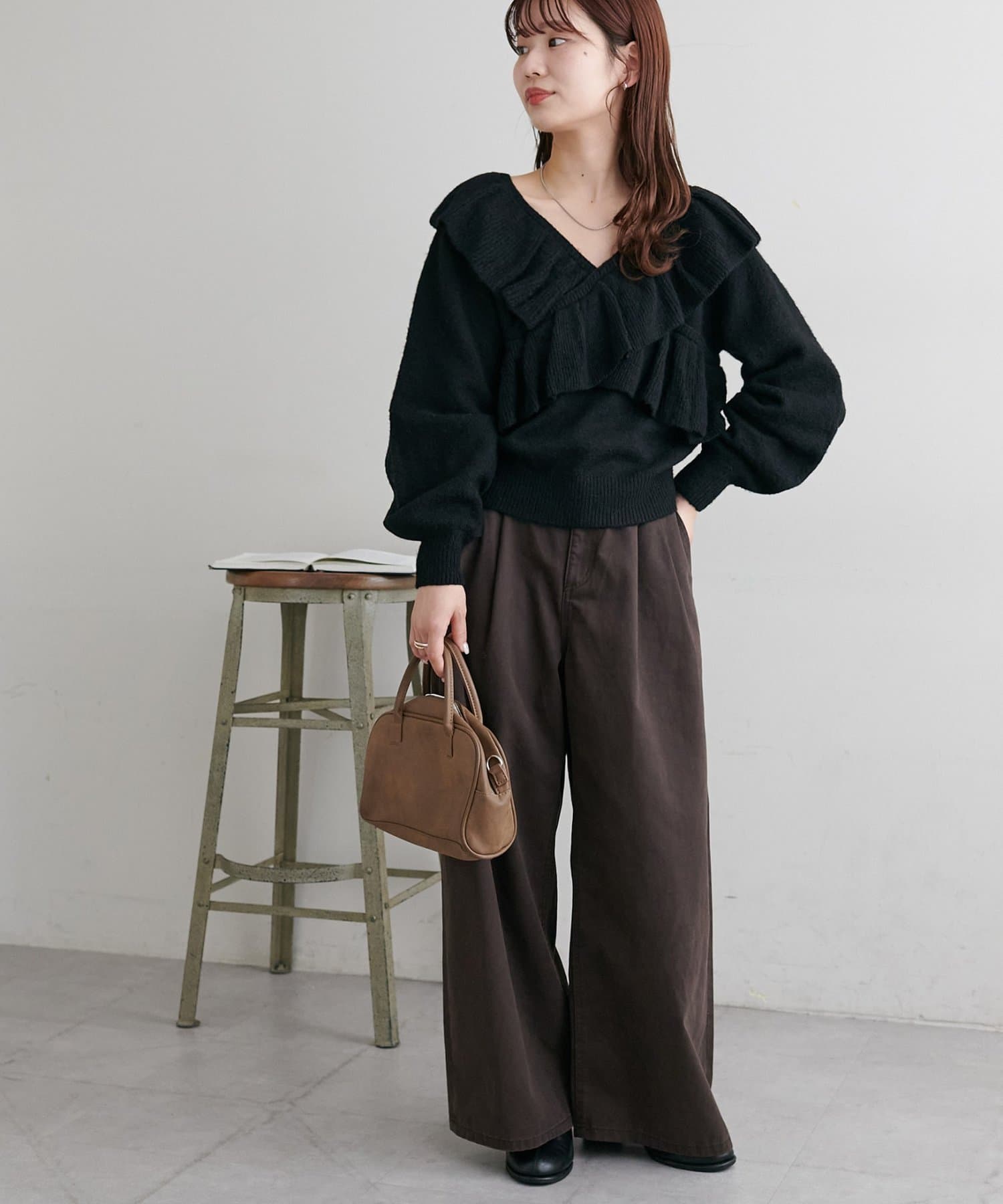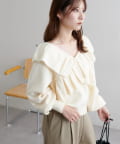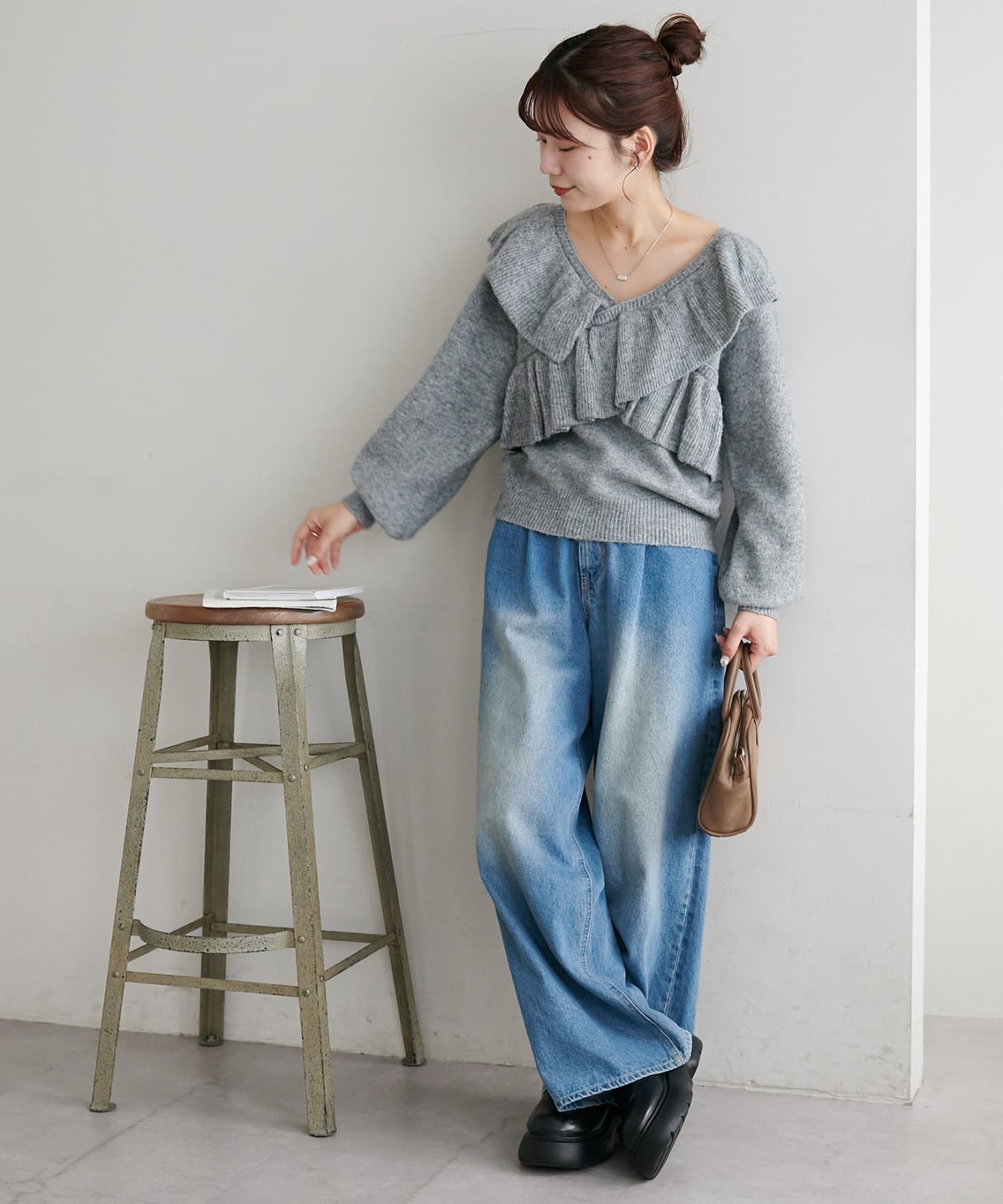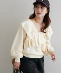 150cmスタッフ:ボリュームのあるフリルにvネックのバランスが大人可愛く着れます!