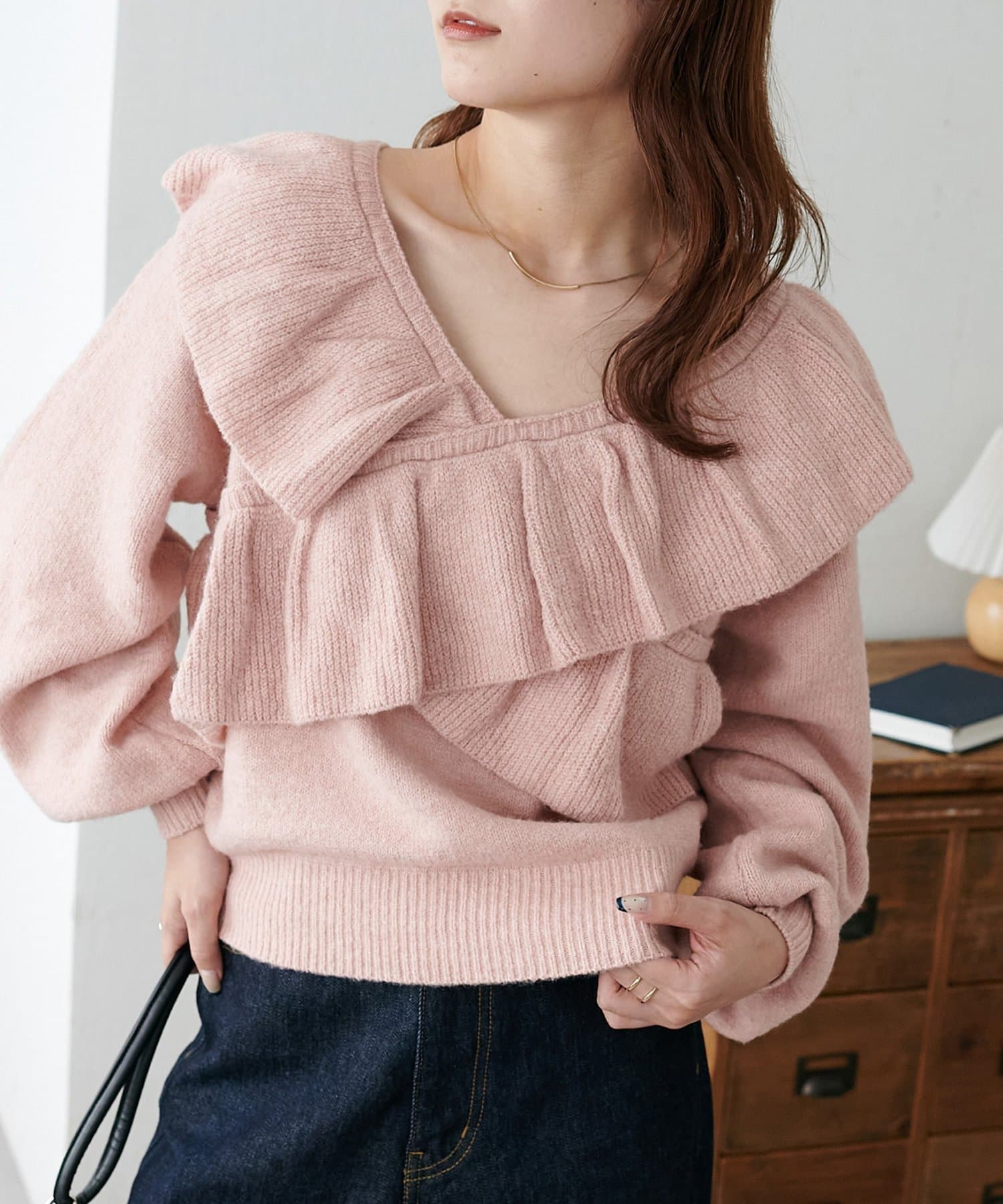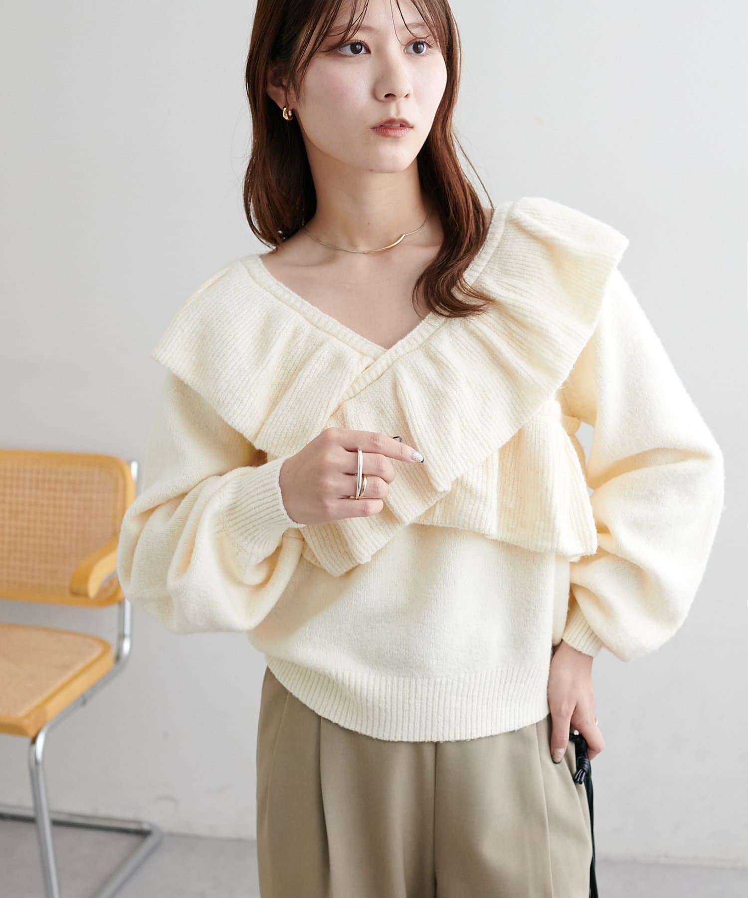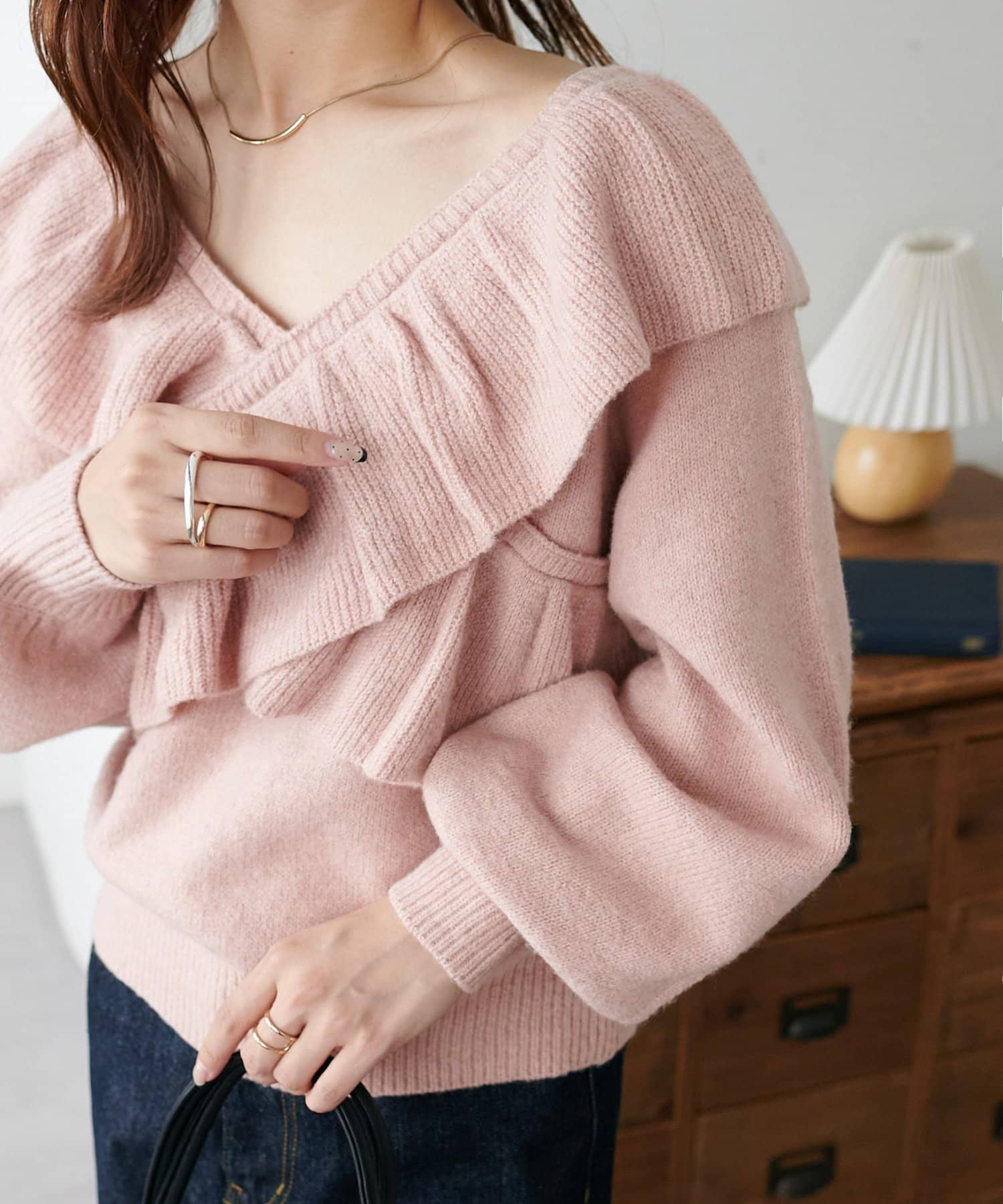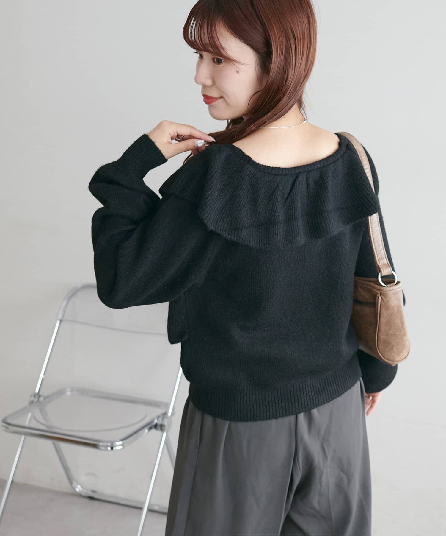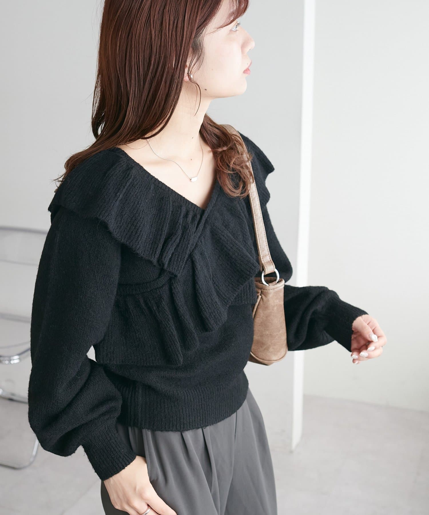 【上品な肌見せ/5色展開】フリルクロスニット《WEB限定》
