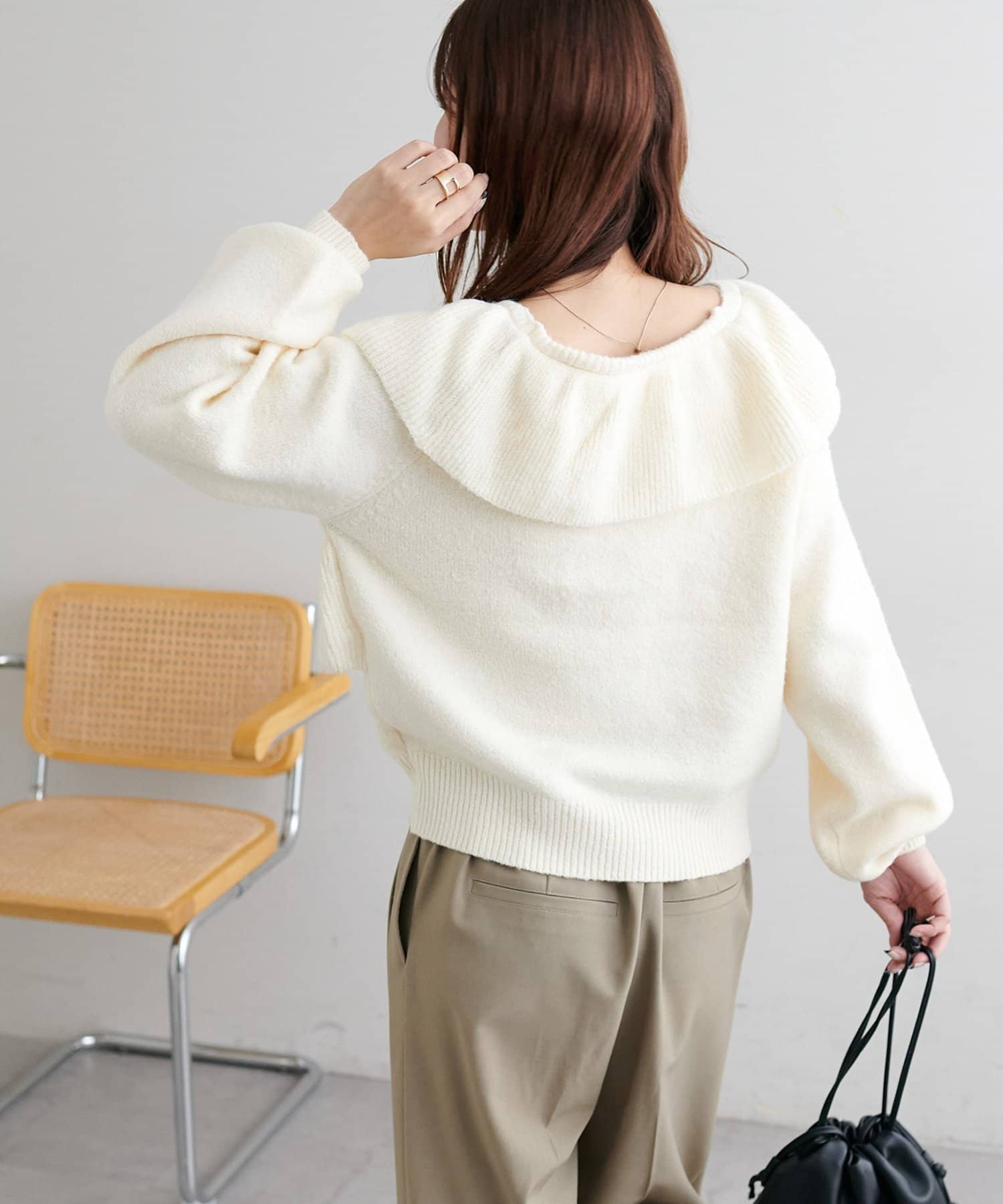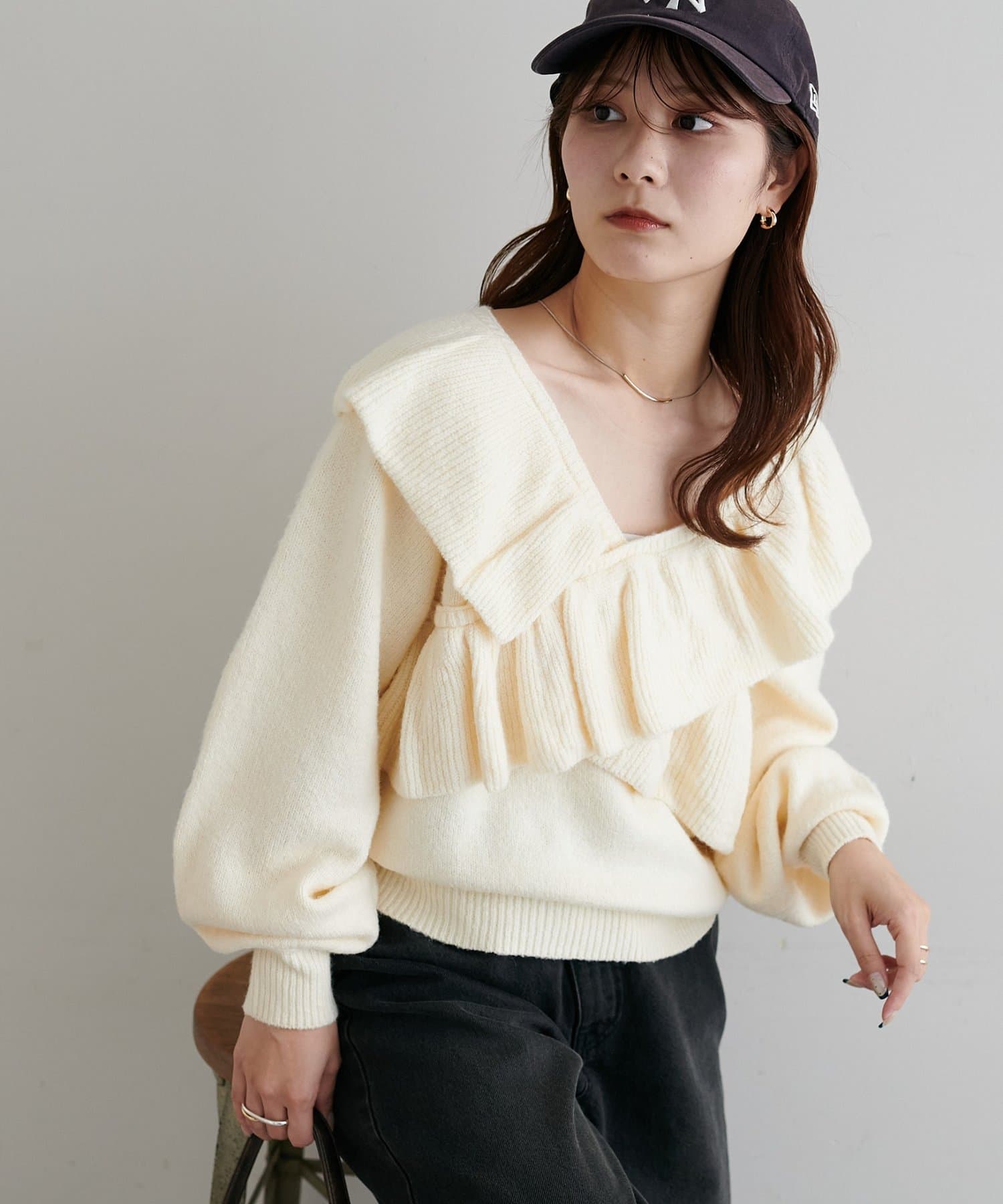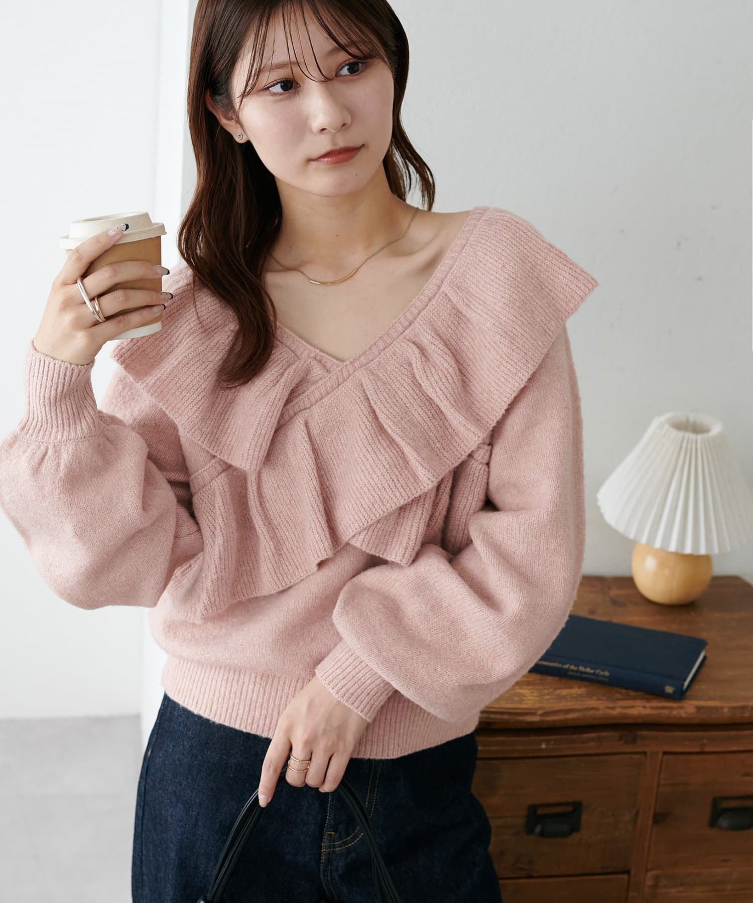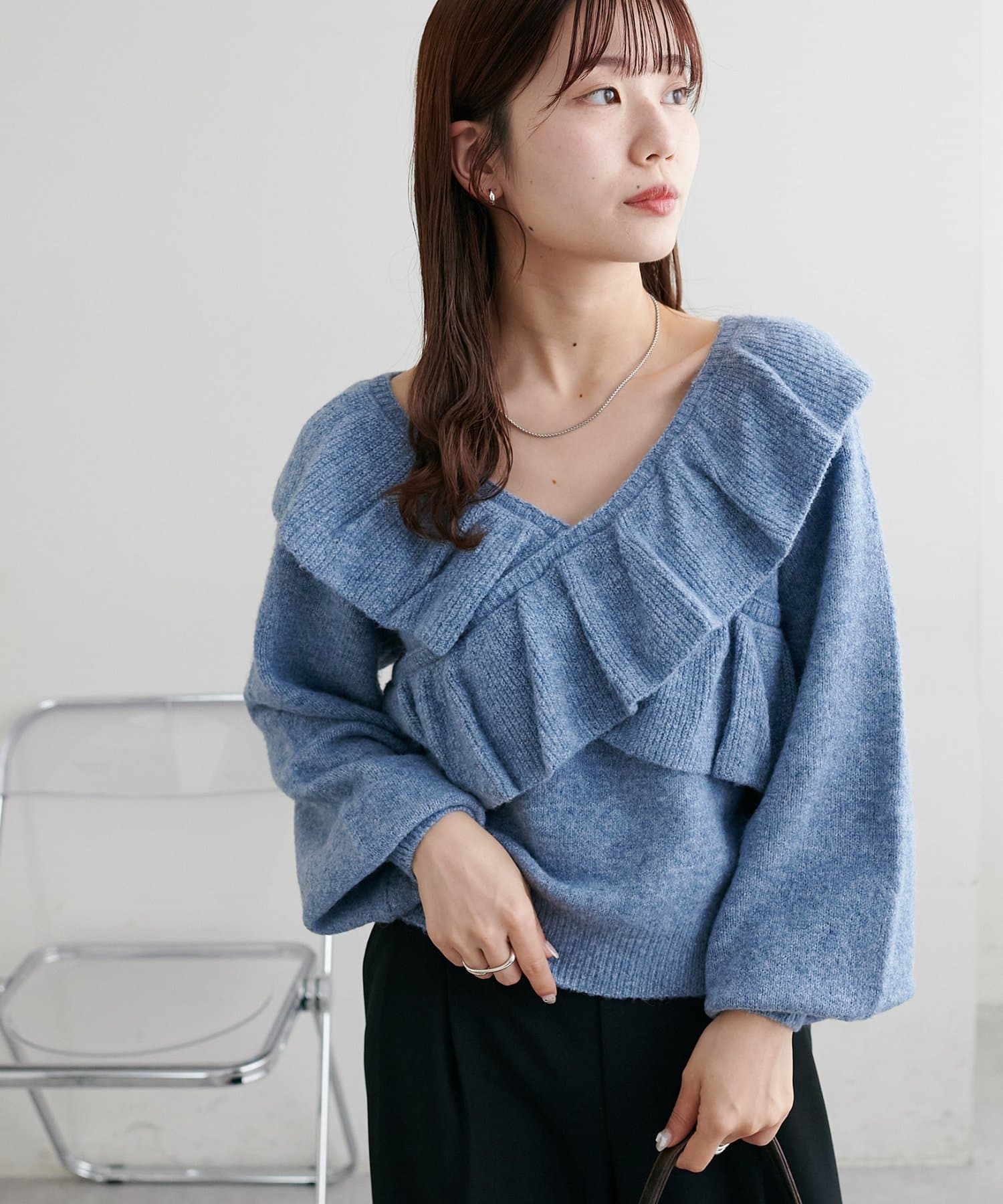 【上品な肌見せ/5色展開】フリルクロスニット《WEB限定》