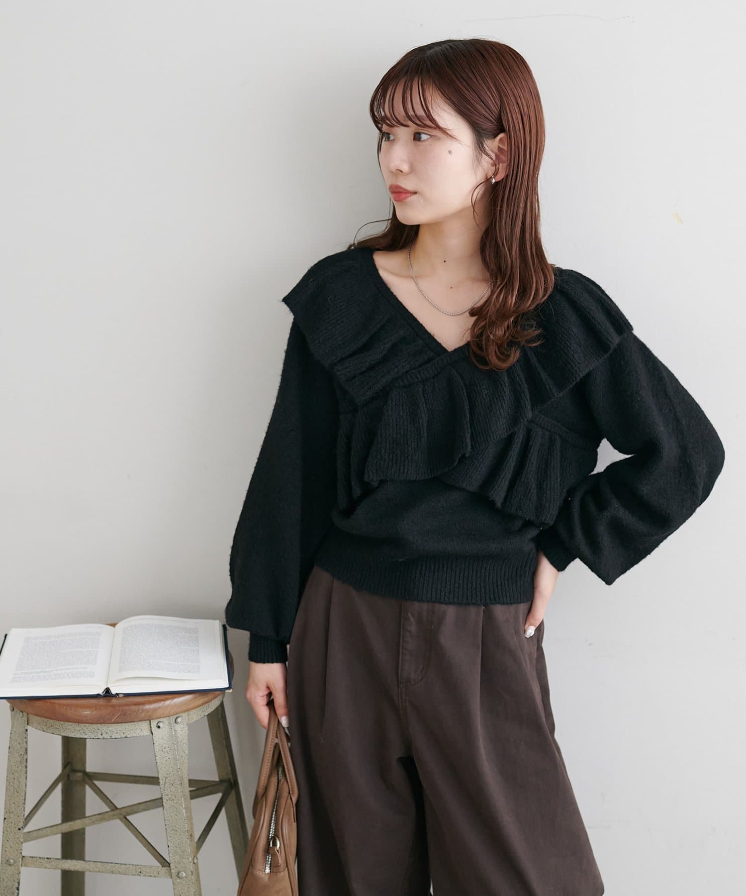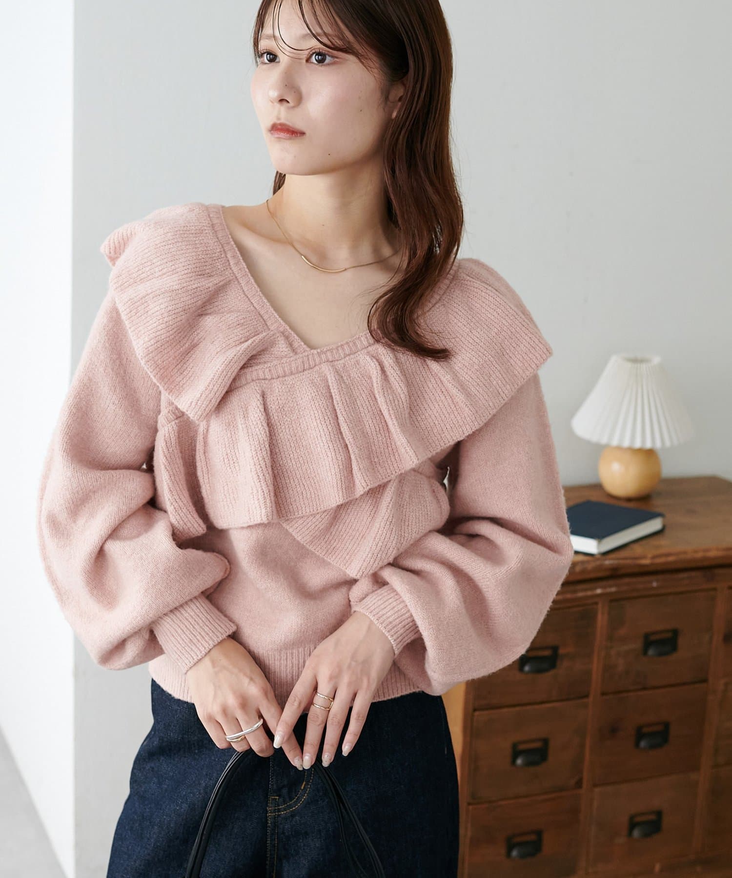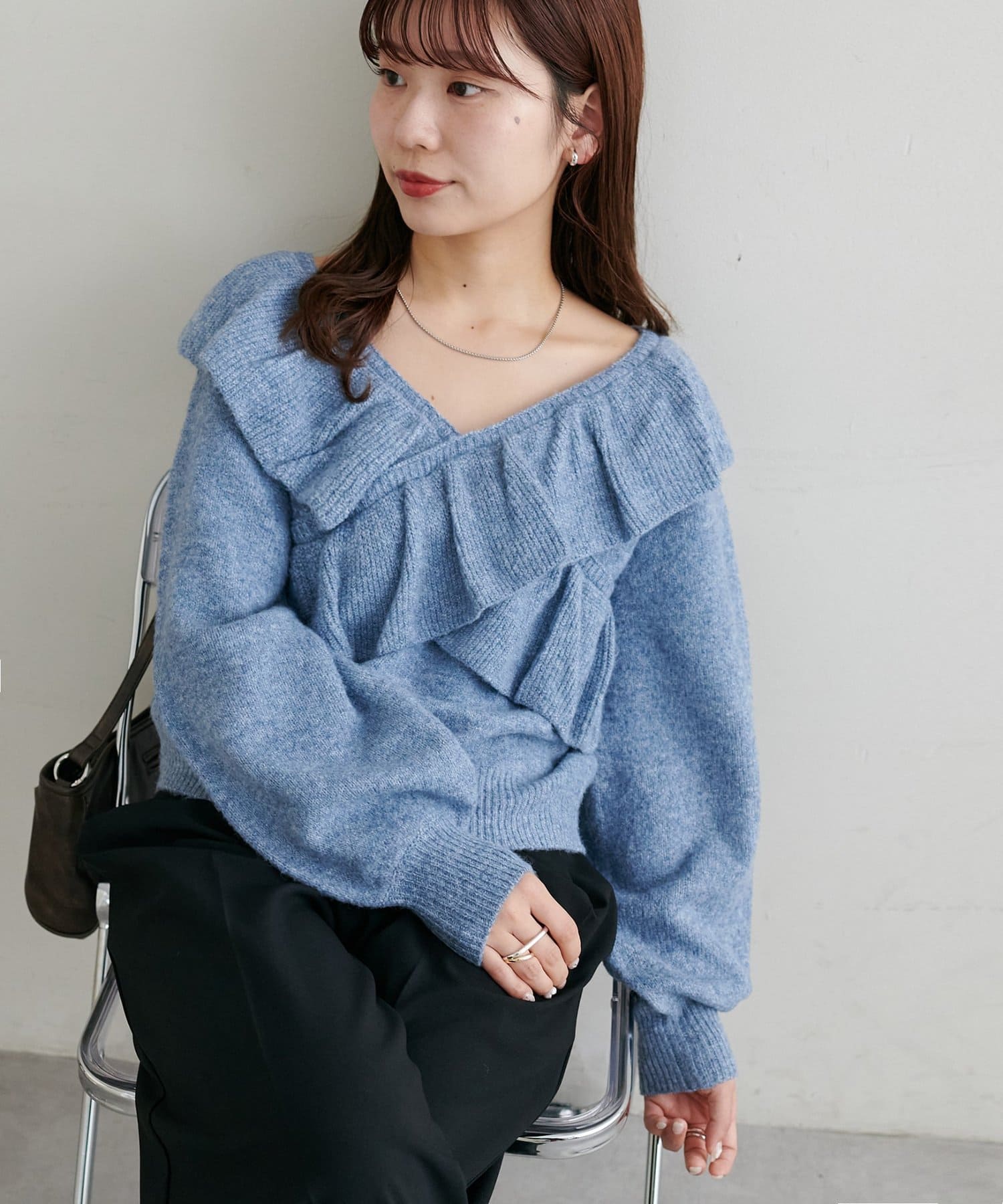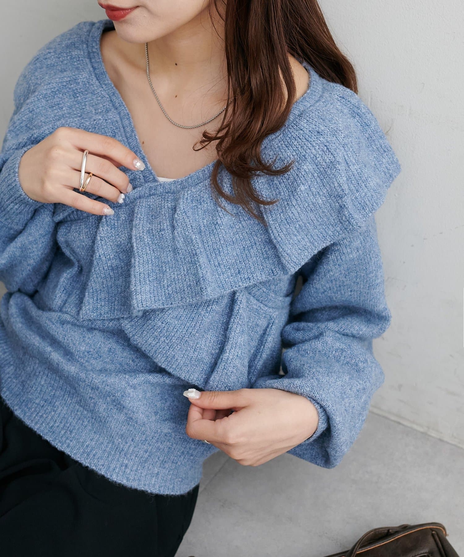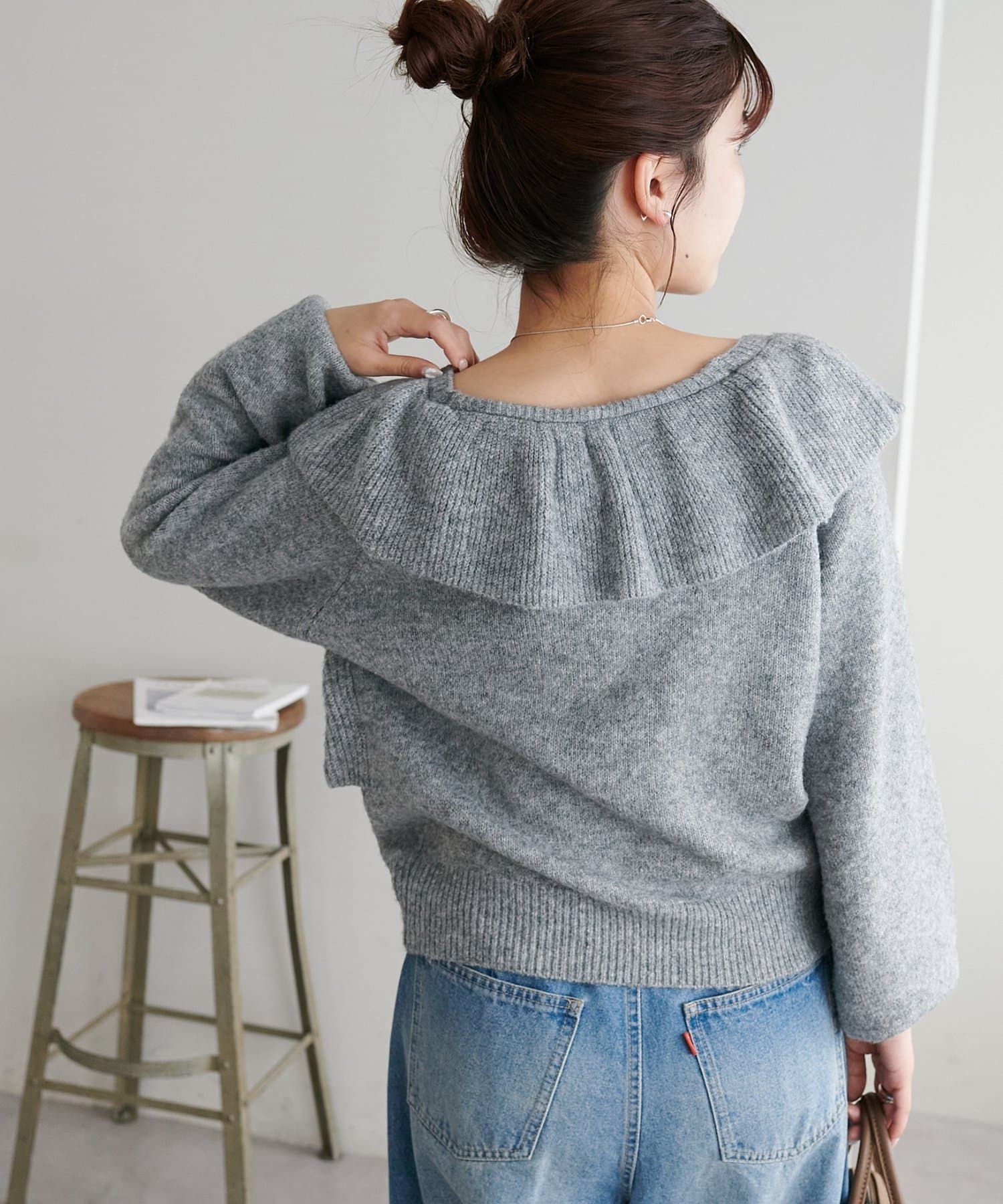 【上品な肌見せ/5色展開】フリルクロスニット《WEB限定》