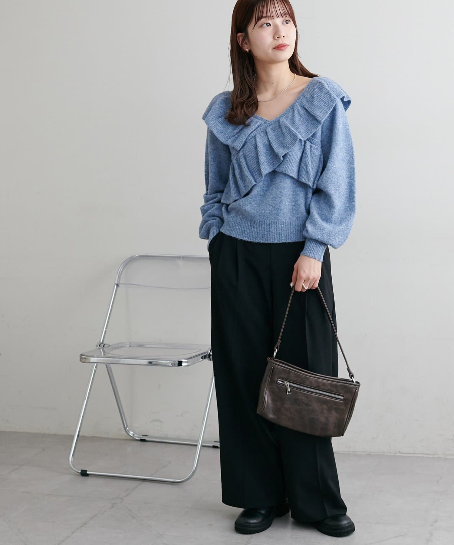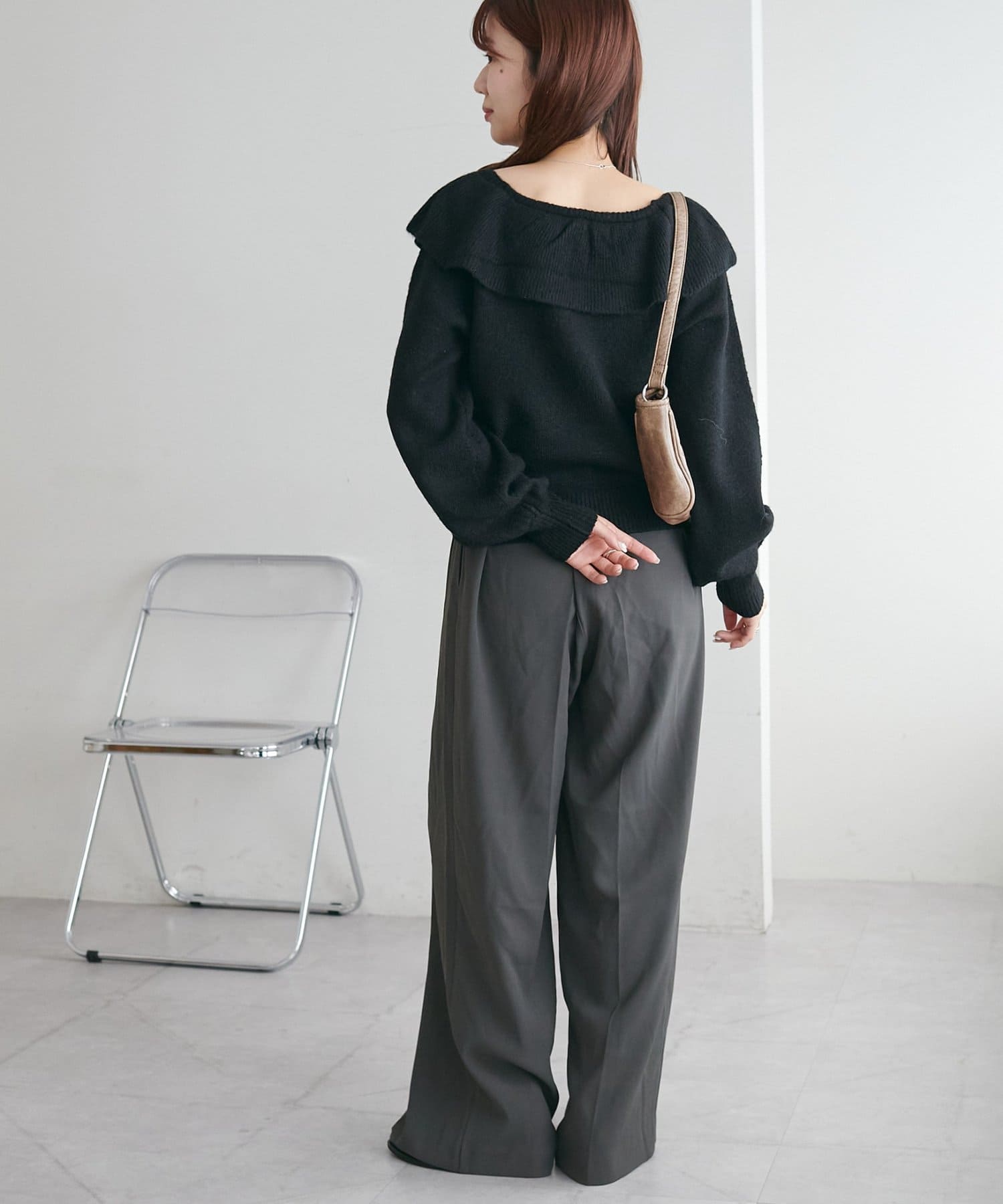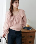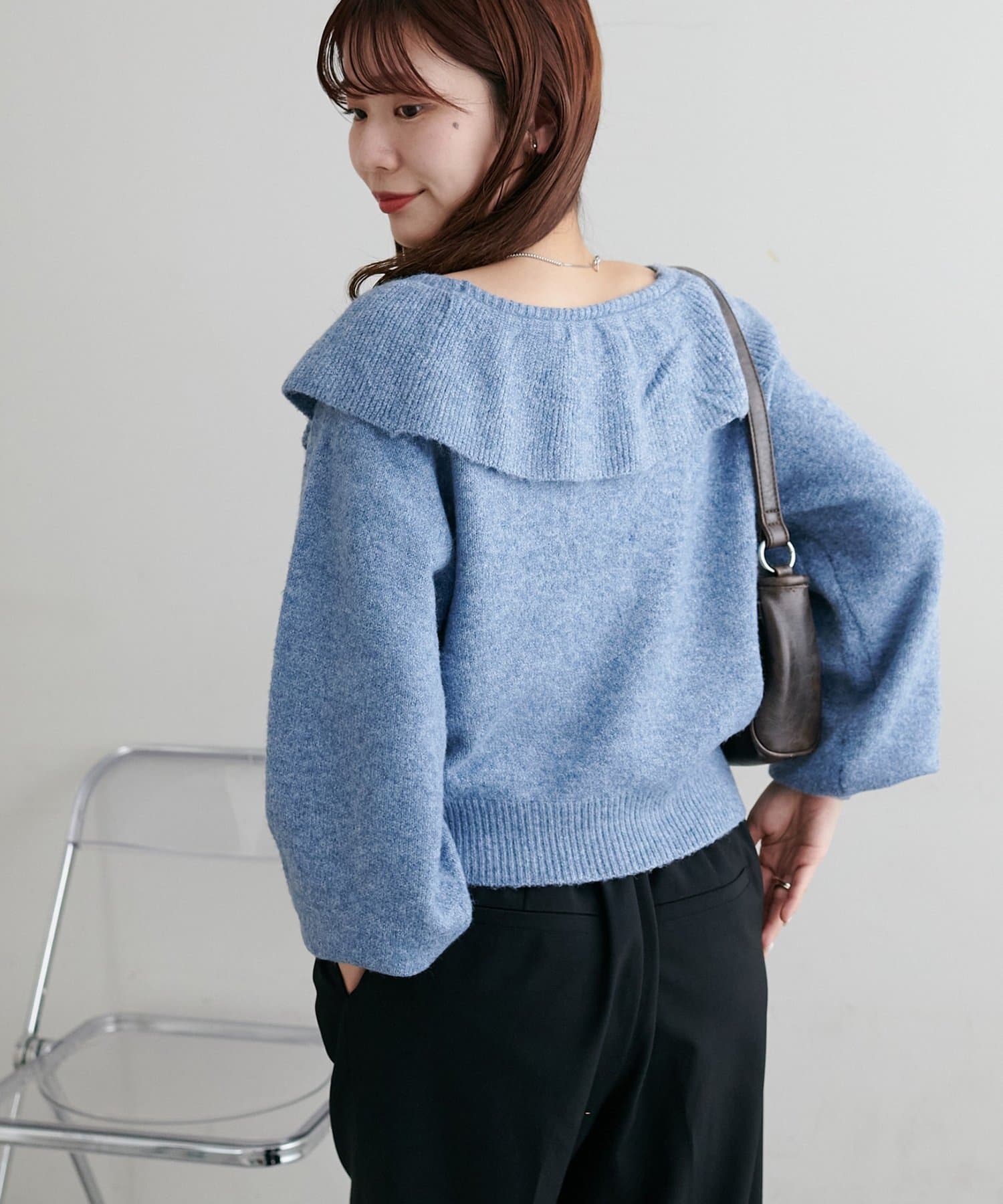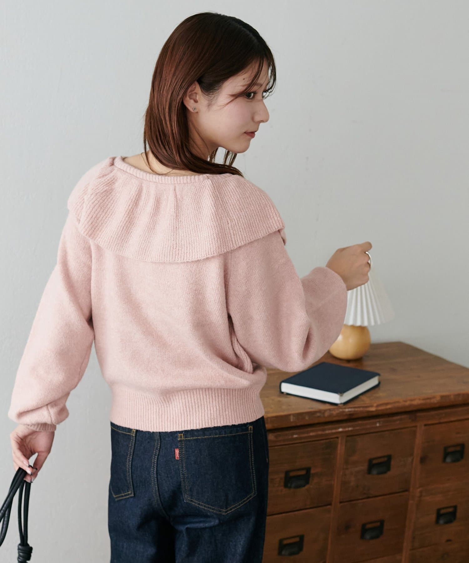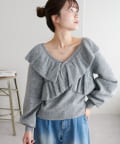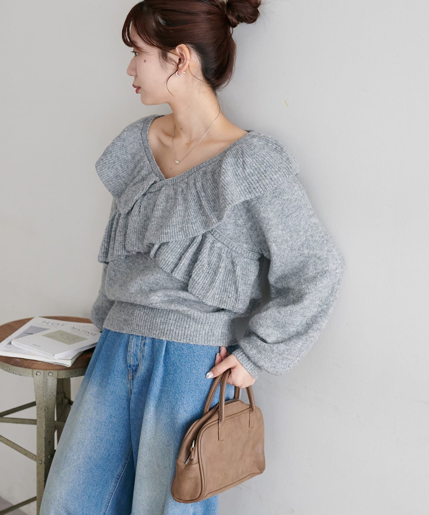 【上品な肌見せ/5色展開】フリルクロスニット《WEB限定》