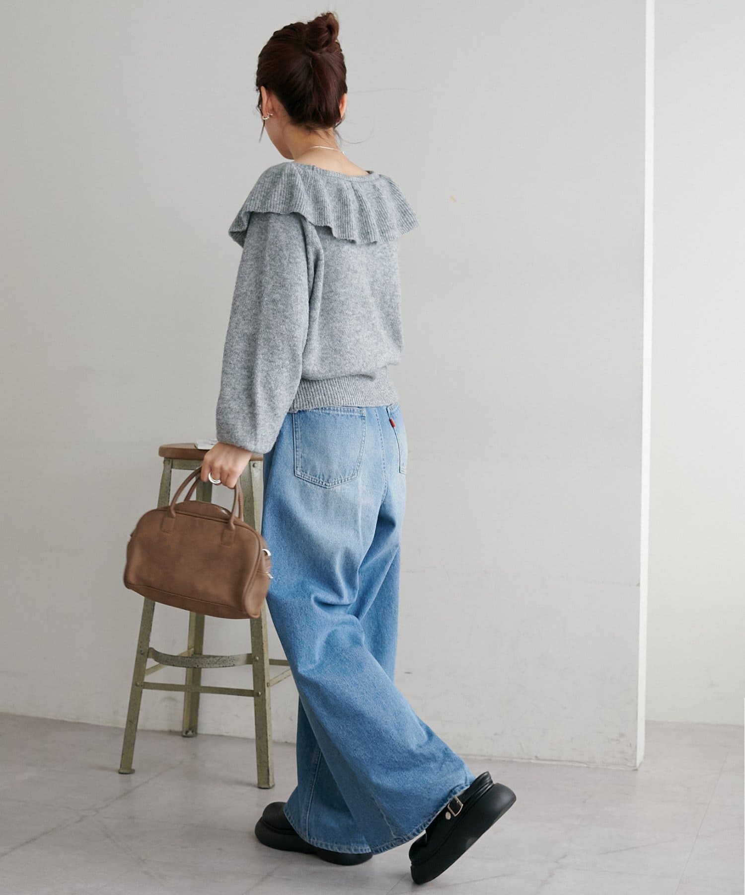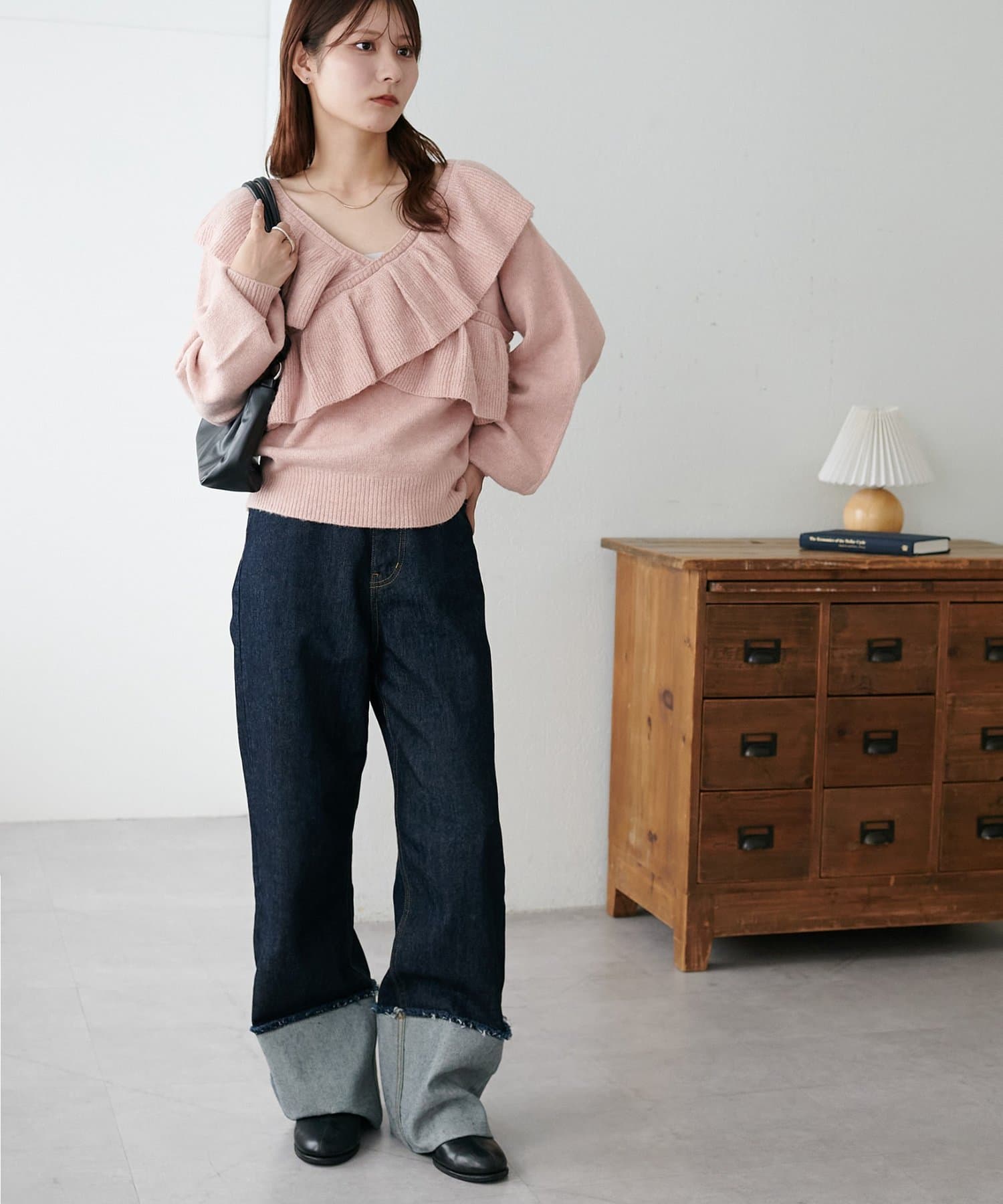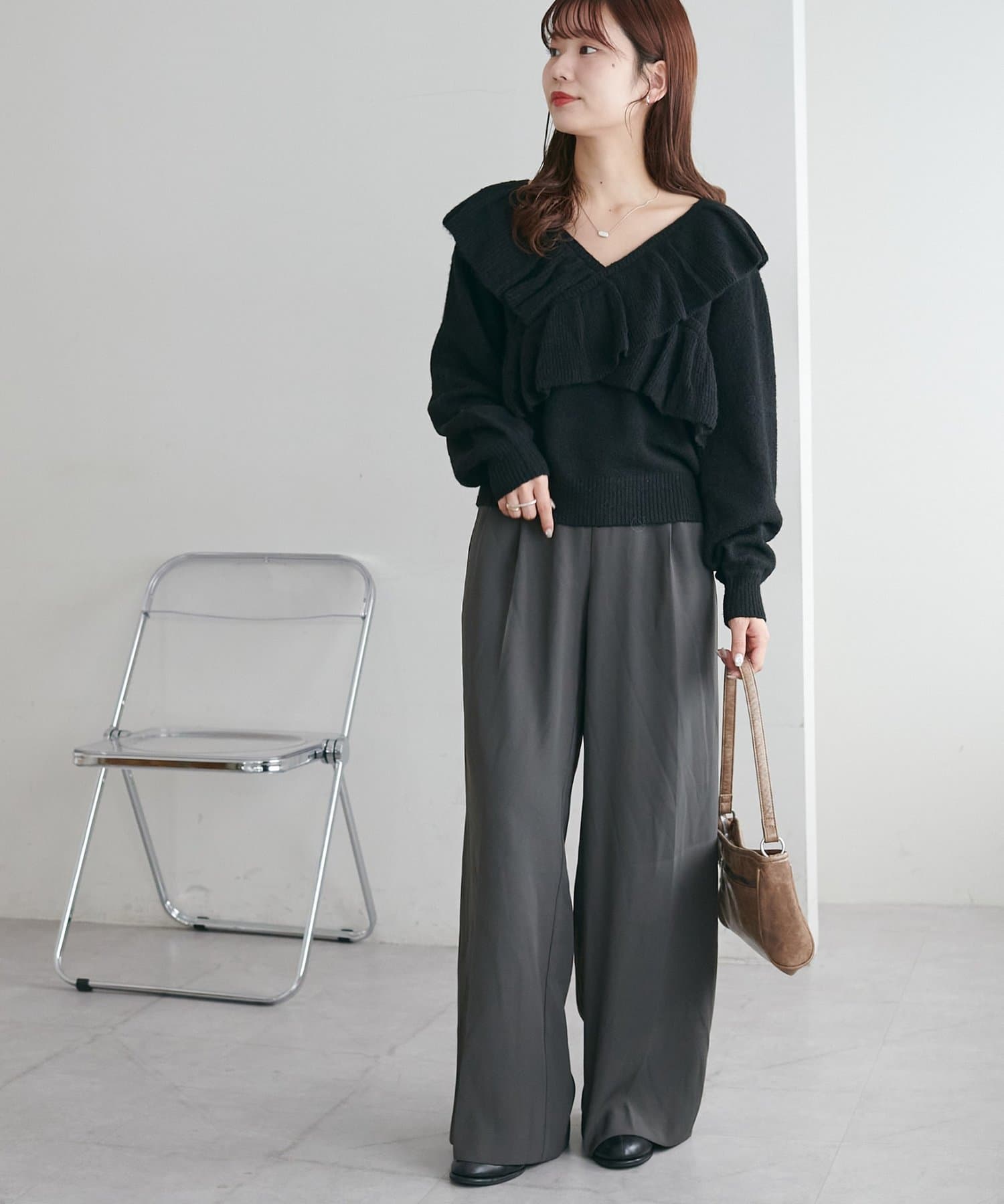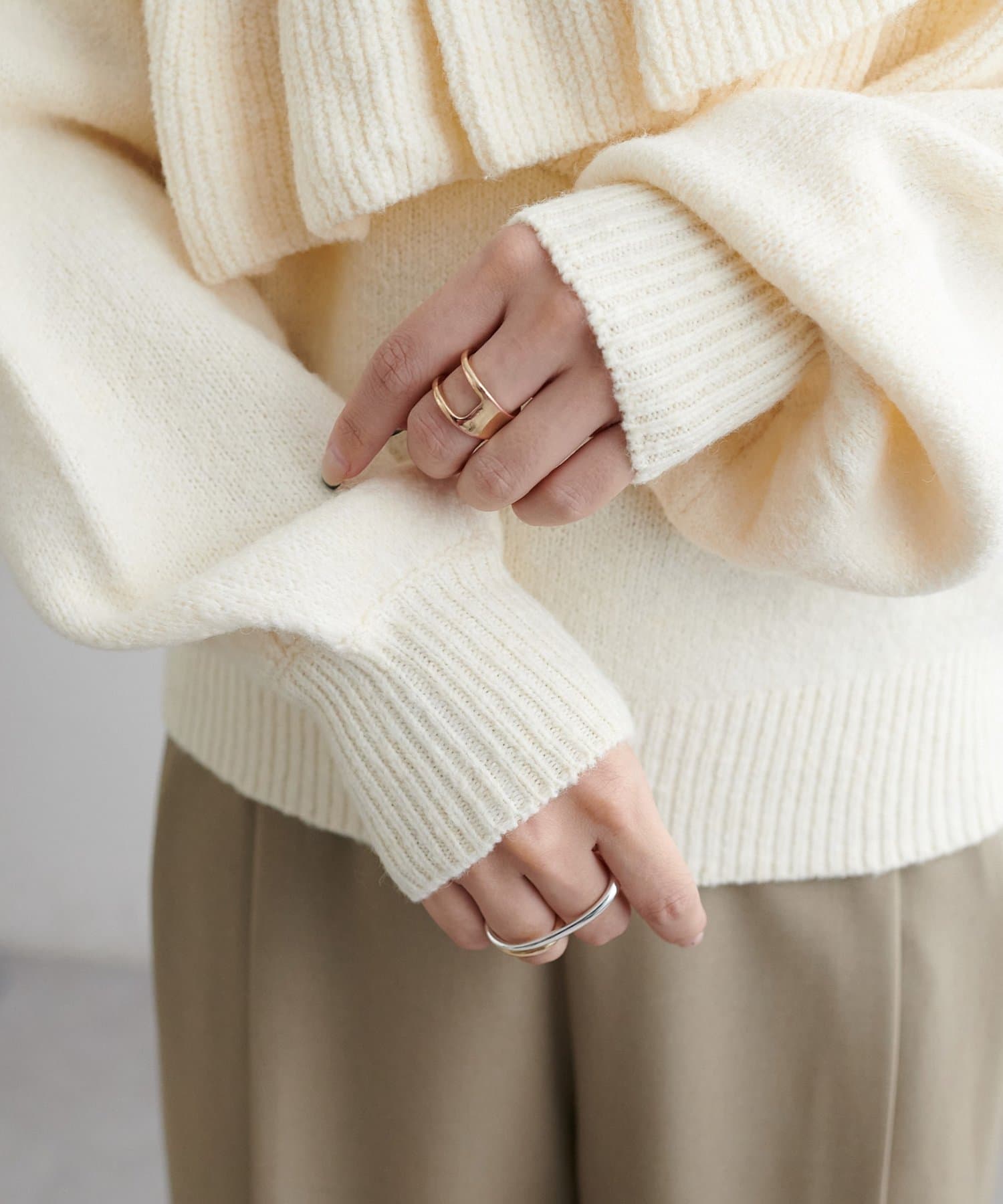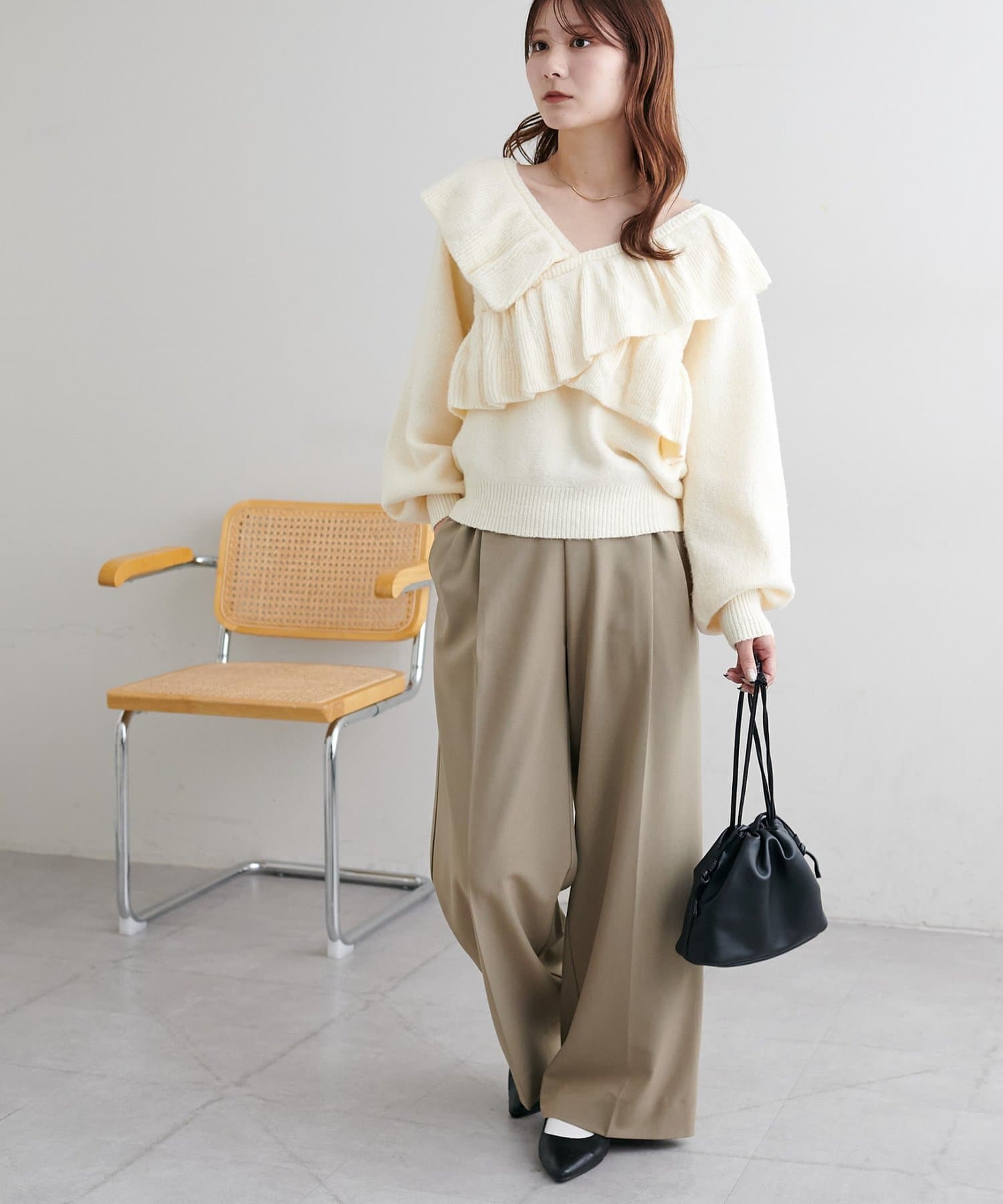 【上品な肌見せ/5色展開】フリルクロスニット《WEB限定》