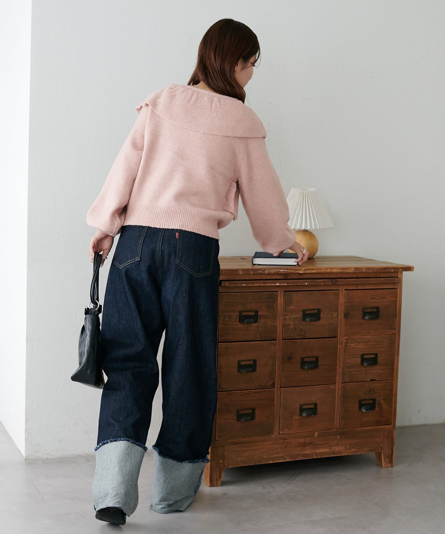 160cmスタッフ:デザイン性のあるトップスなので、シンプルにデニムやスラックスと合わせたコーデにしたいです◎