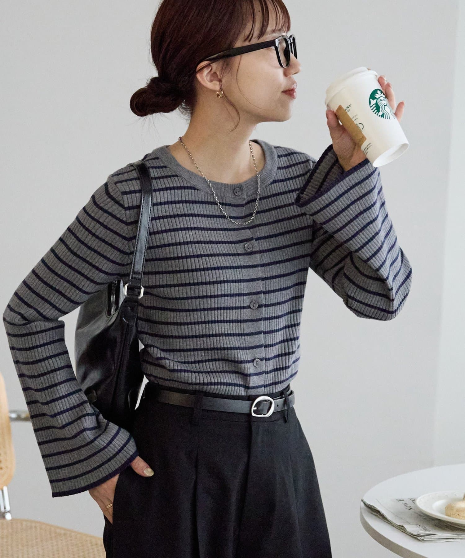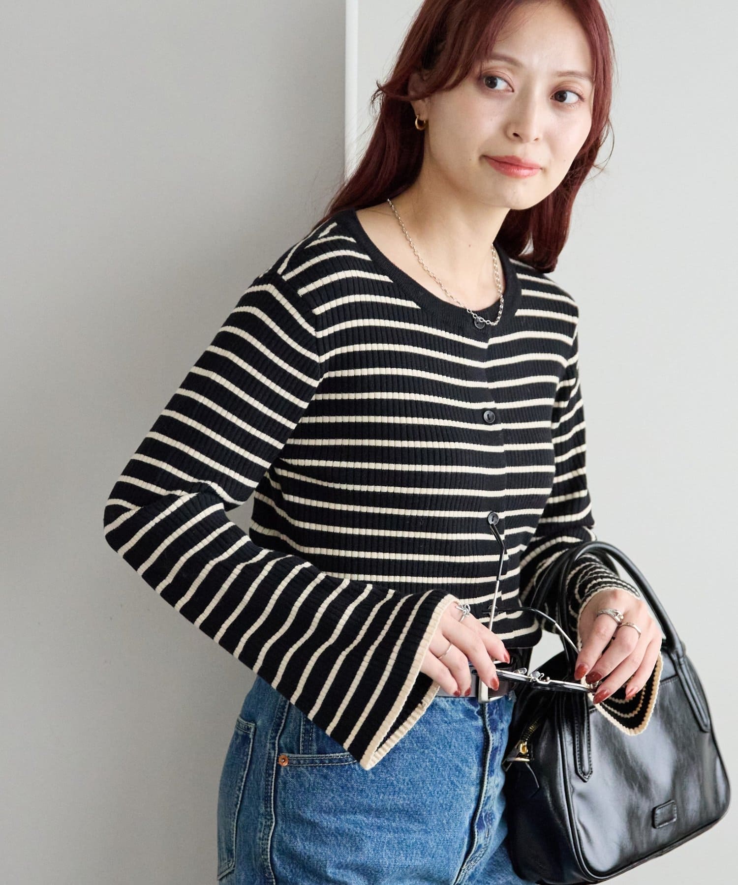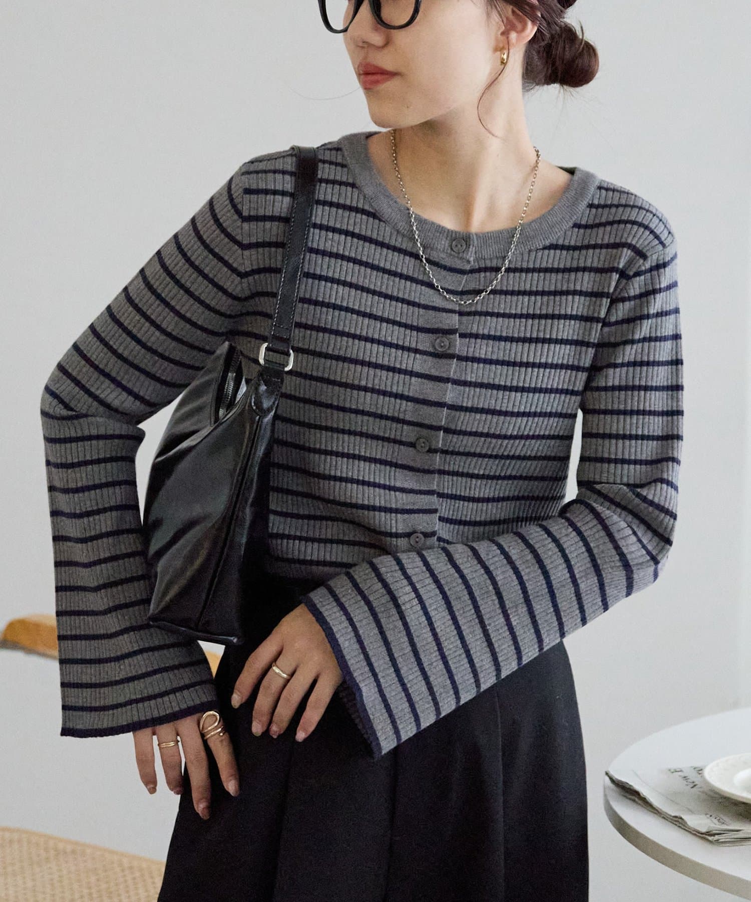 ベーシックなのに上品見えするボーダーリブニット