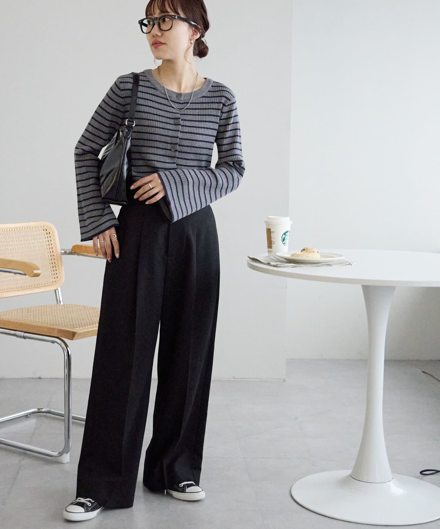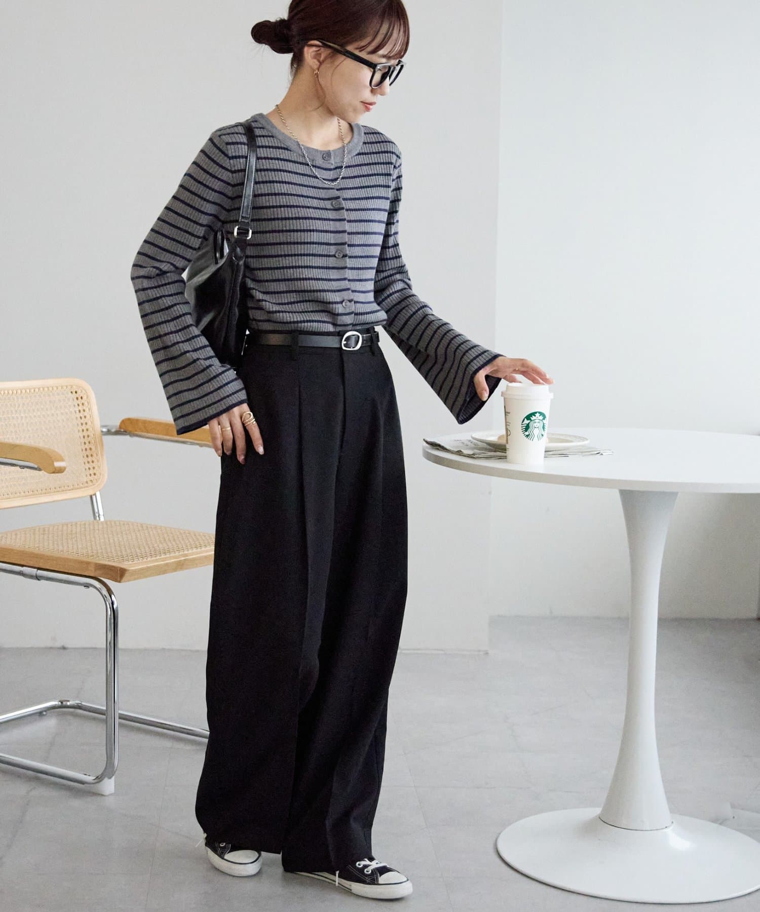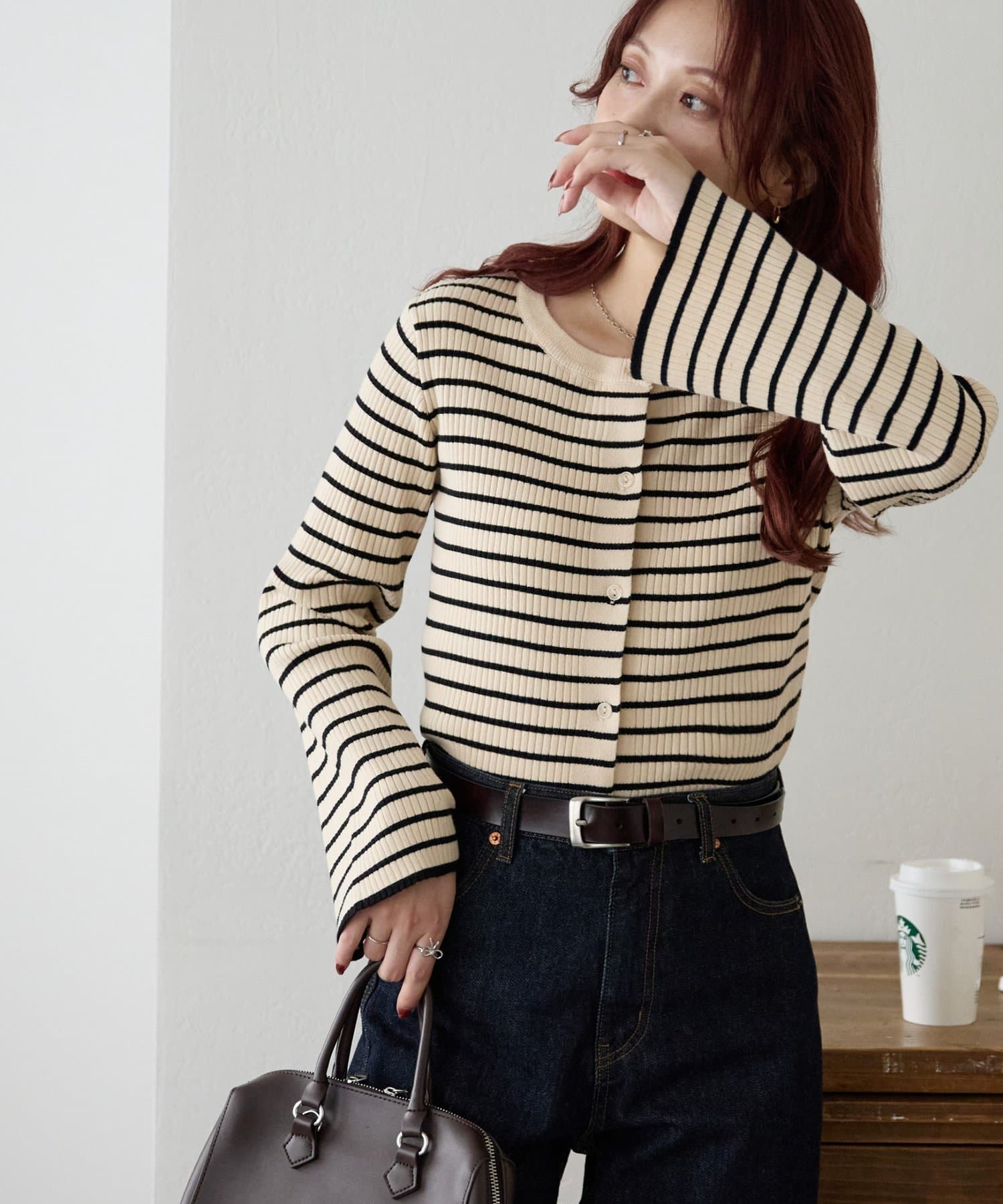 ベーシックなのに上品見えするボーダーリブニット