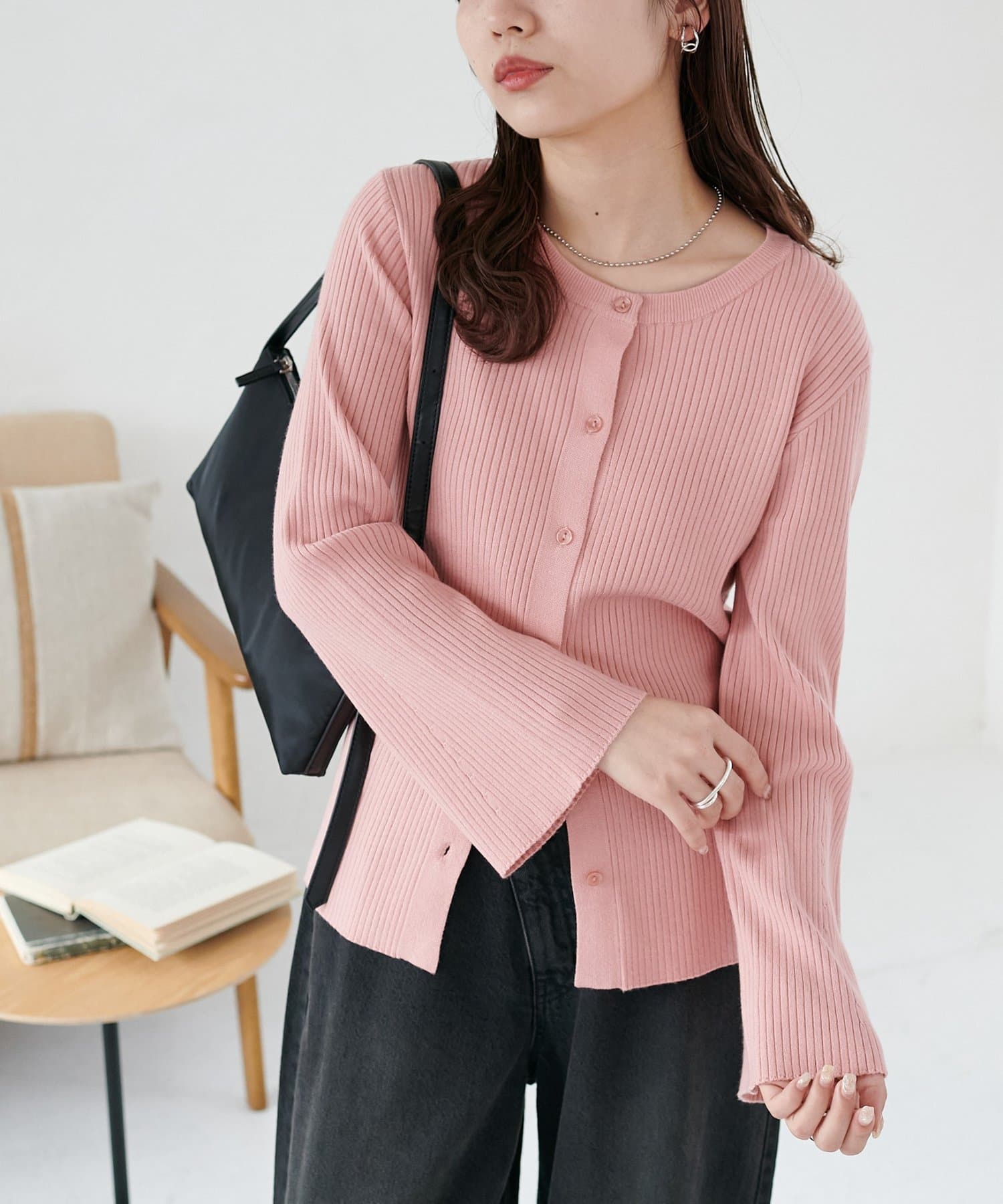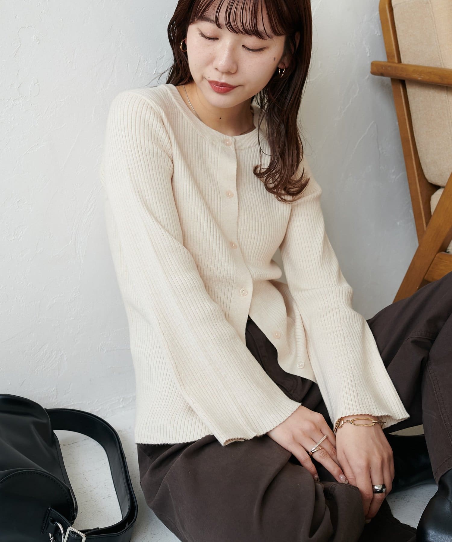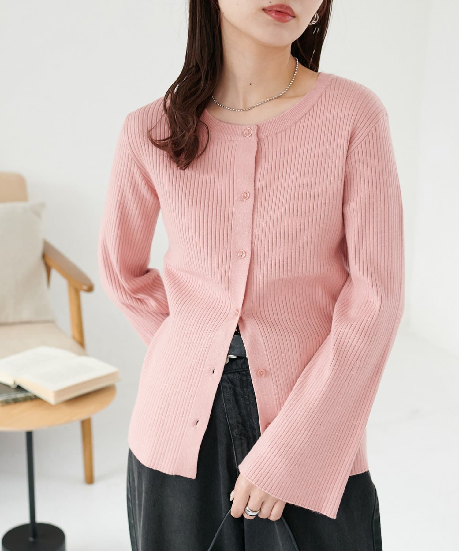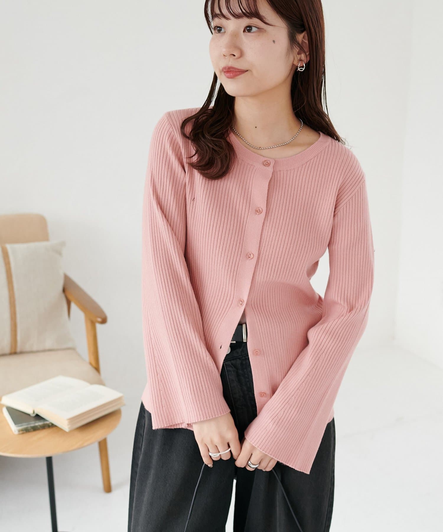 【7色展開/一枚着でも羽織でも◎/WEB限定】袖フレアリブカーディガン
