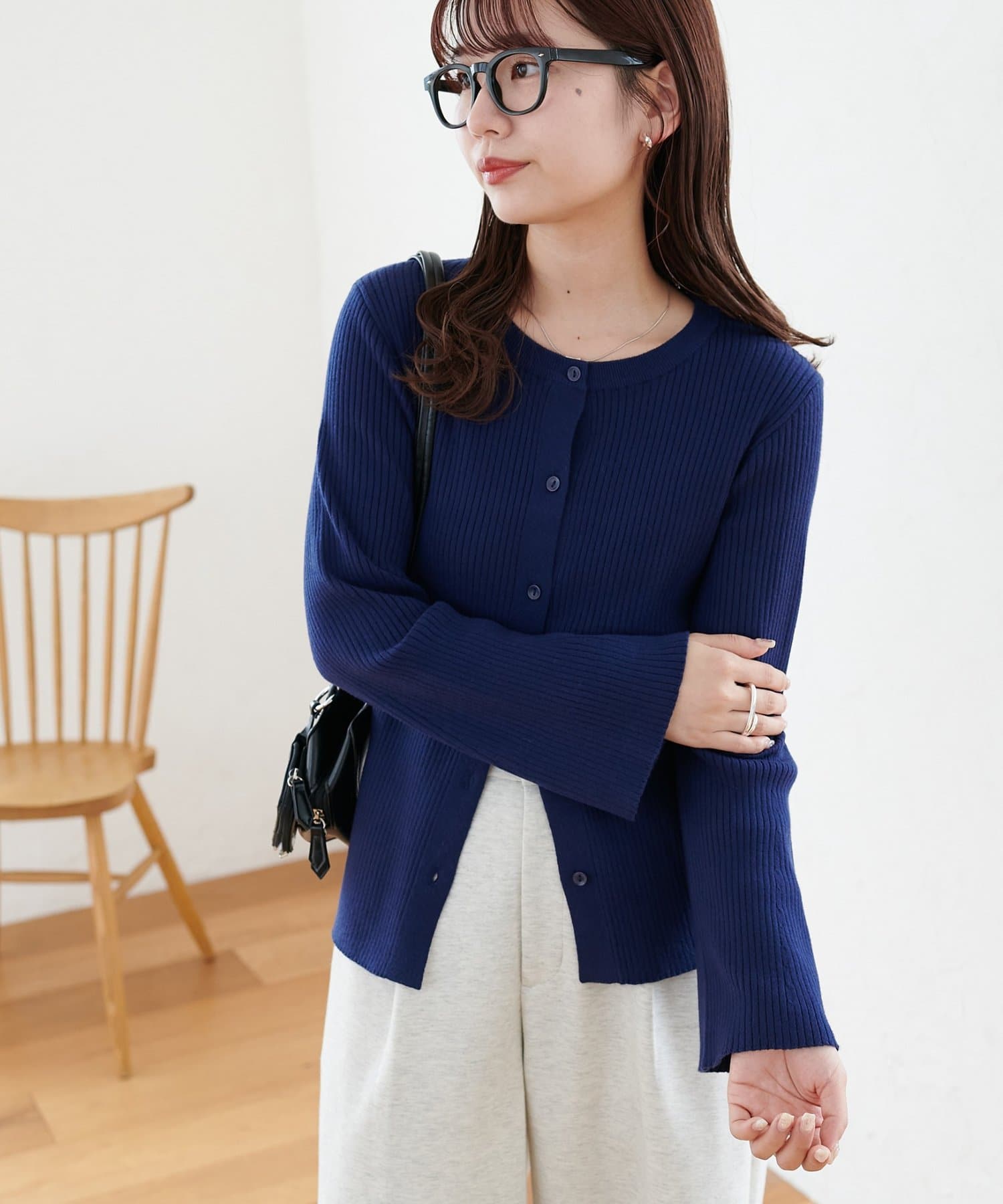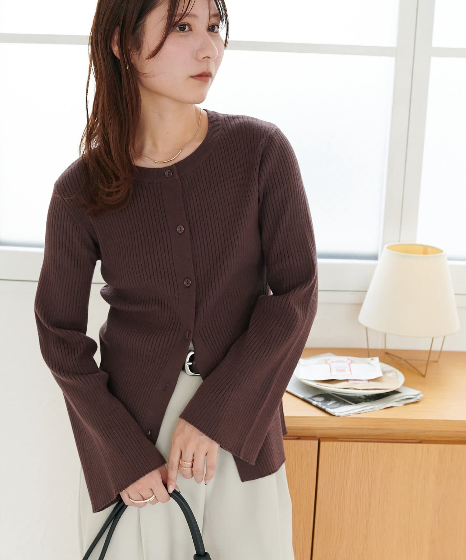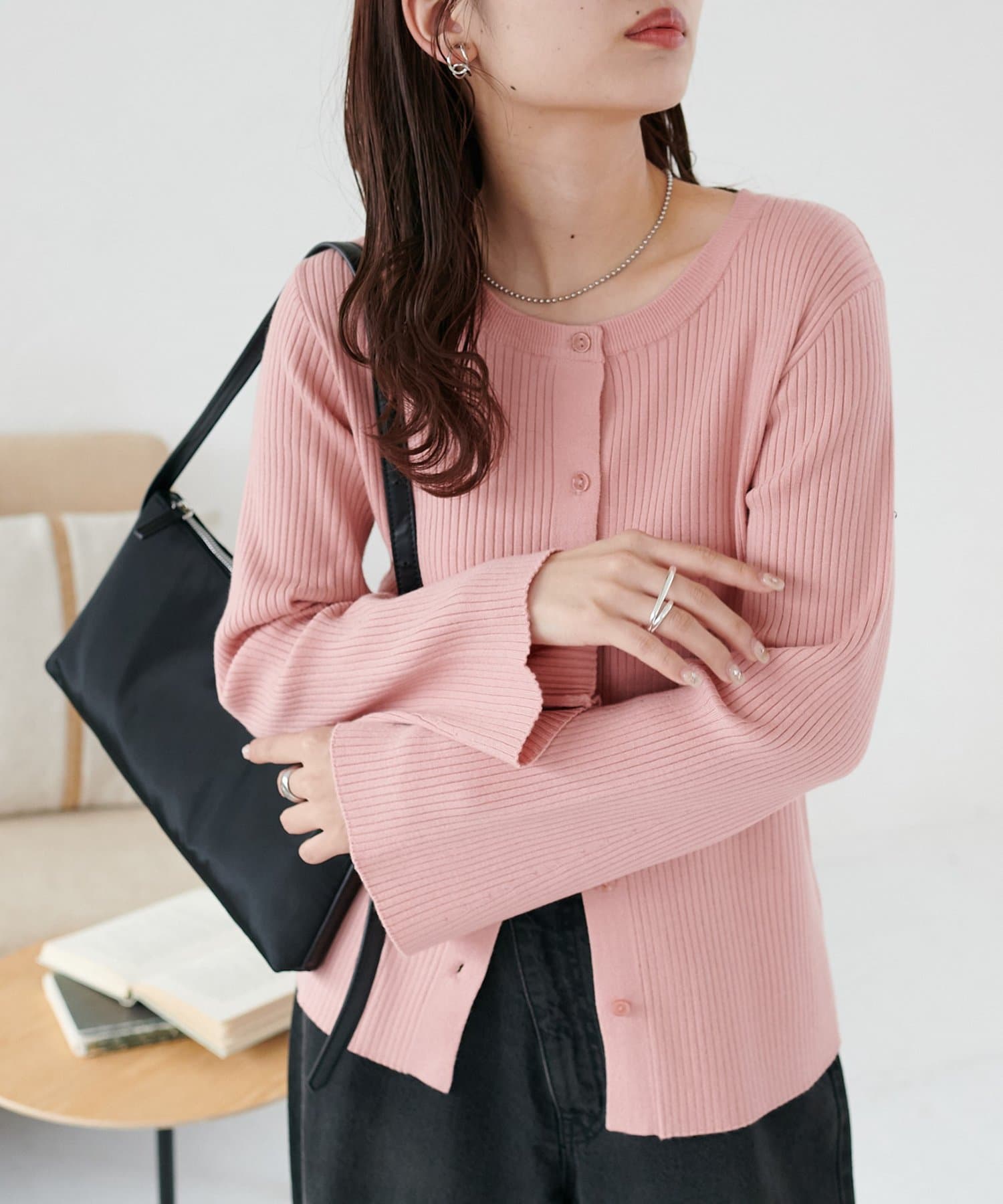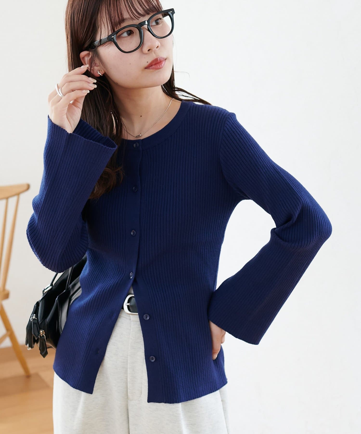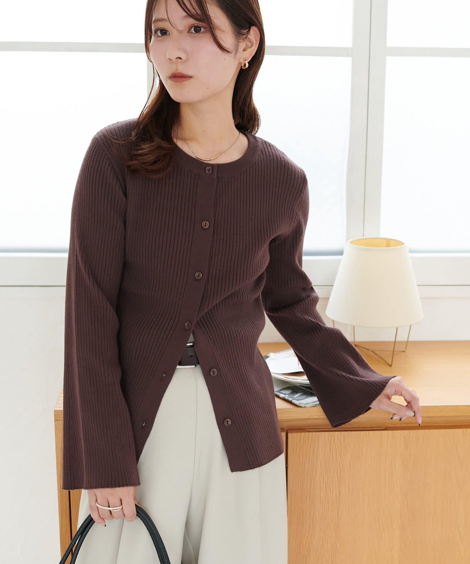 【7色展開/一枚着でも羽織でも◎/WEB限定】袖フレアリブカーディガン