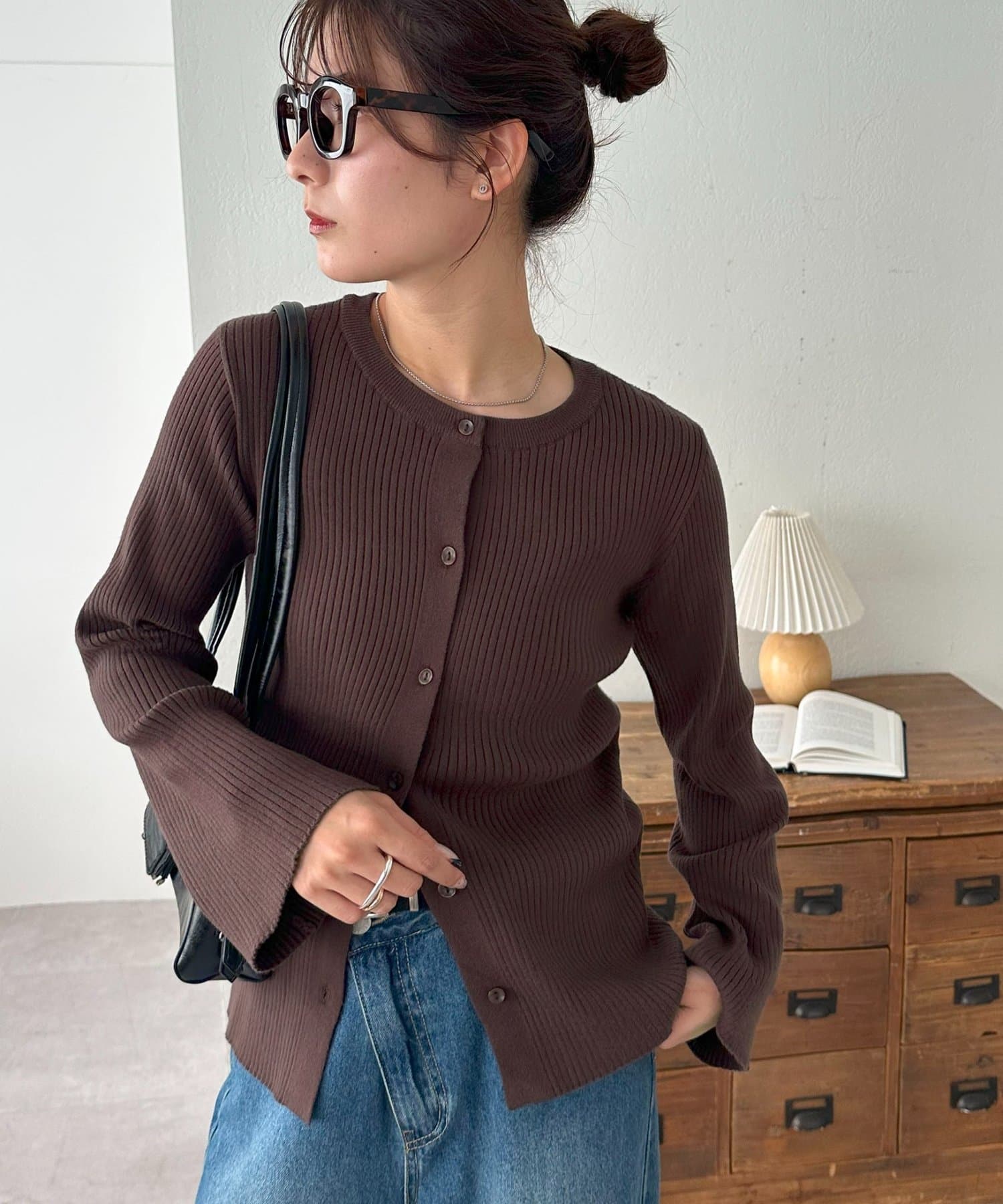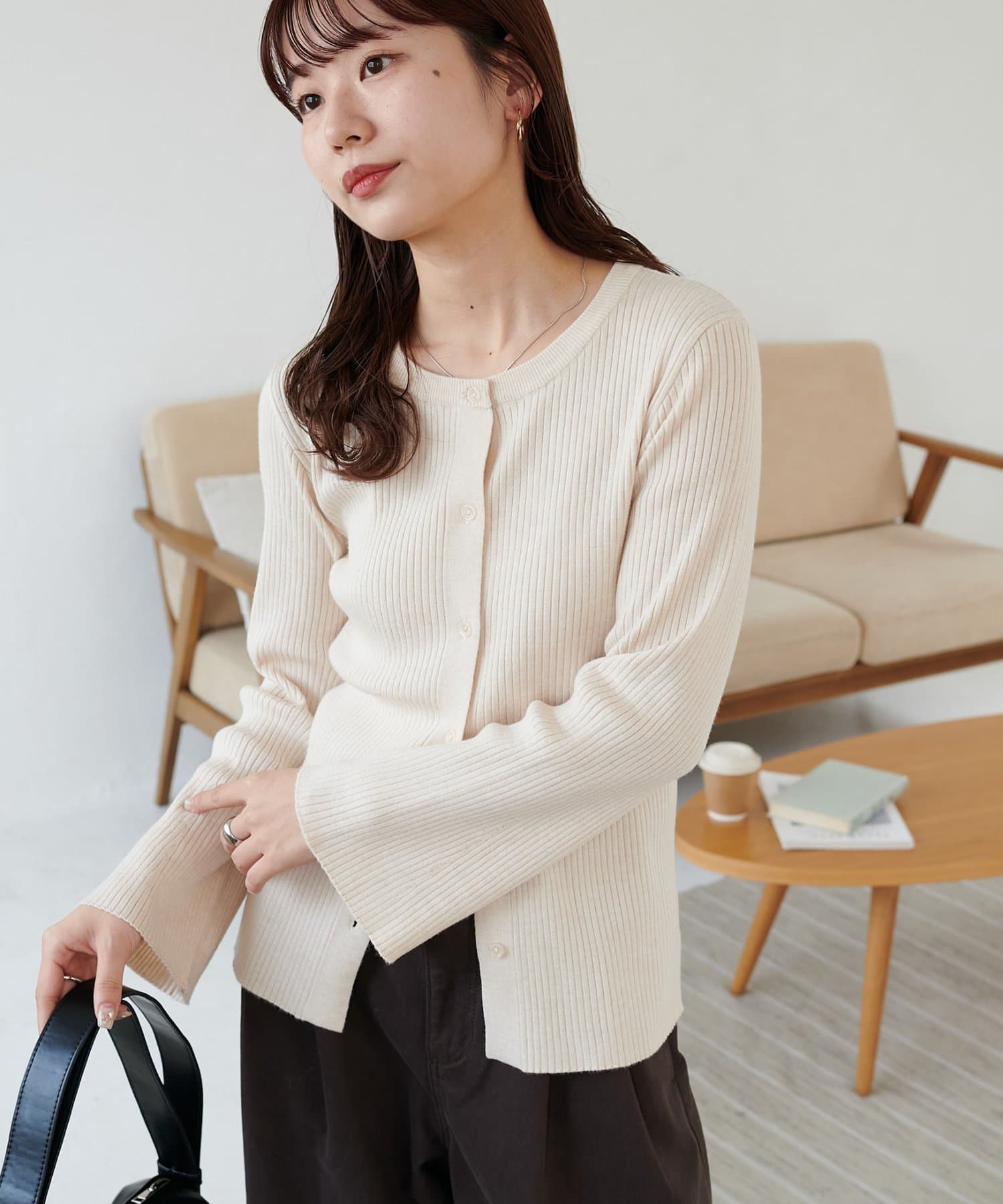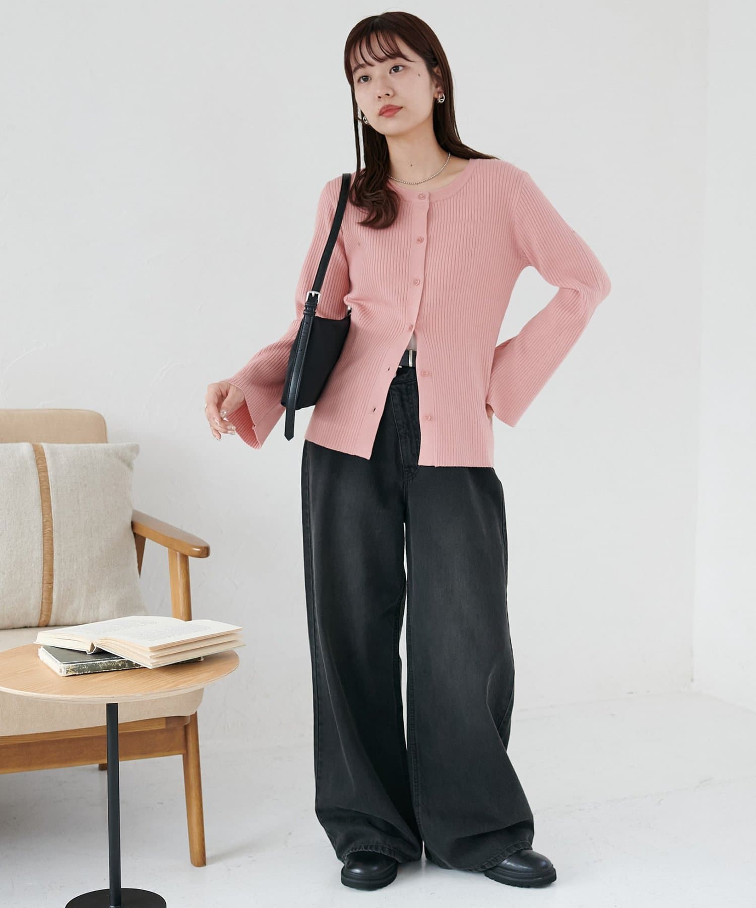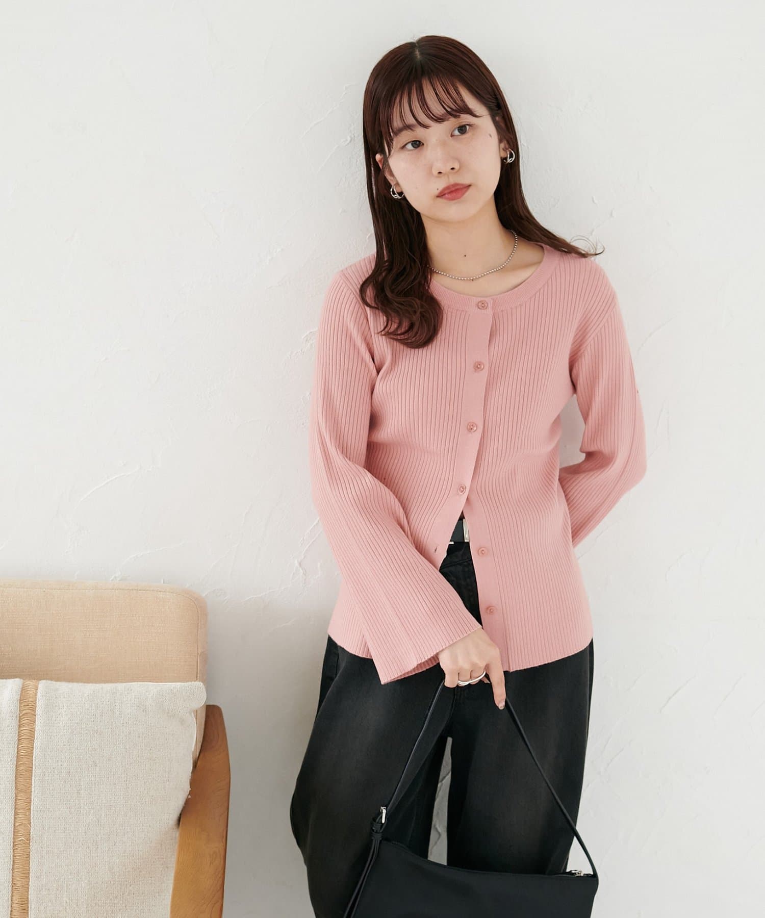 【7色展開/一枚着でも羽織でも◎/WEB限定】袖フレアリブカーディガン