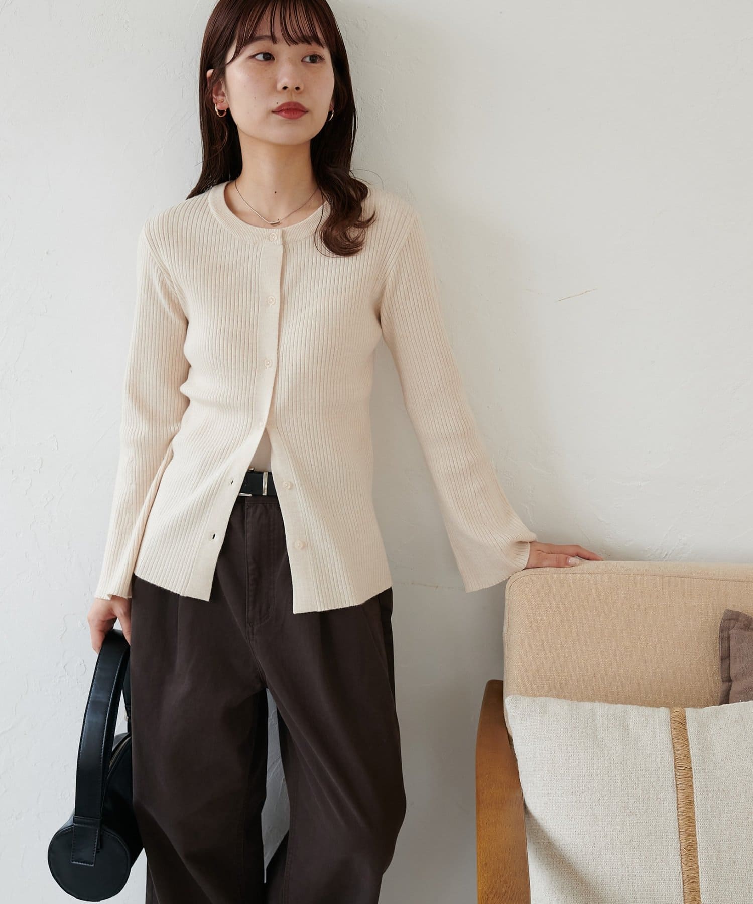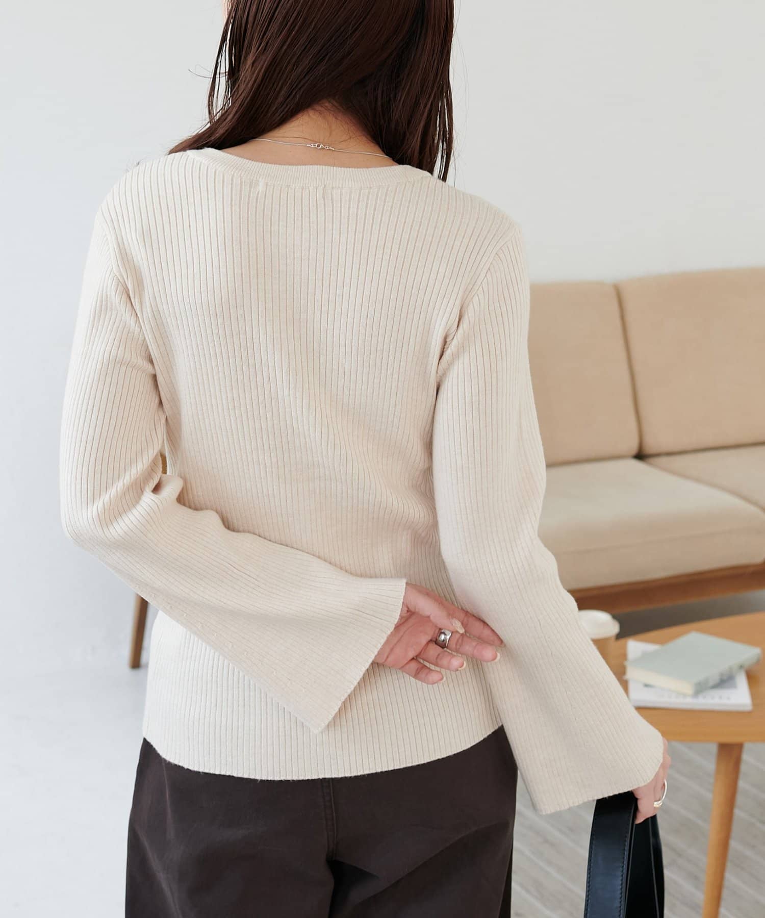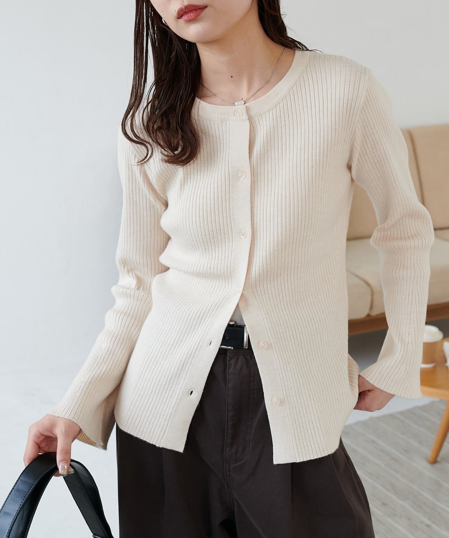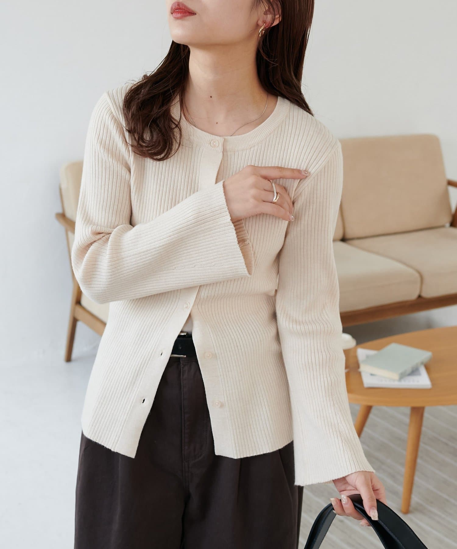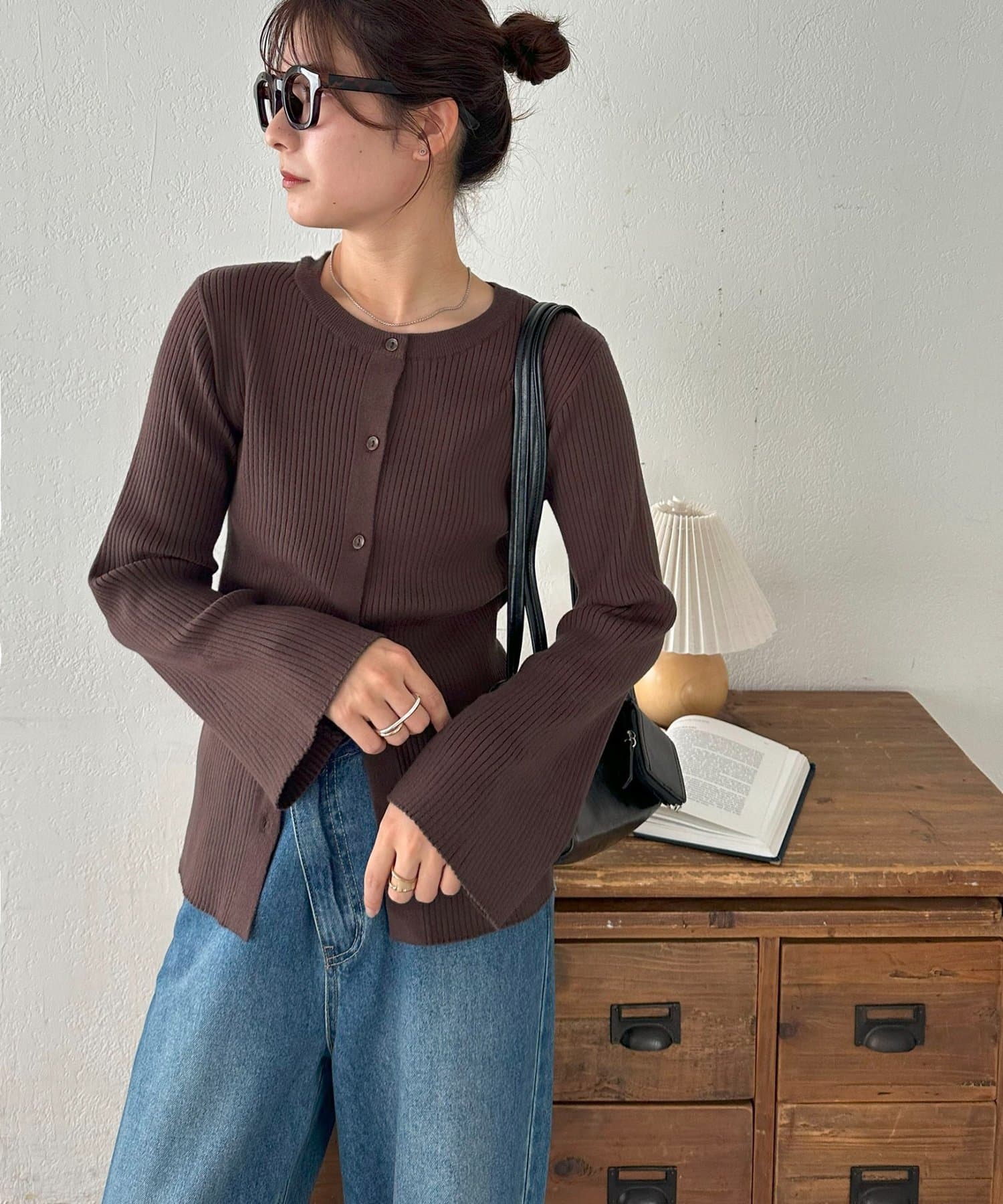 【7色展開/一枚着でも羽織でも◎/WEB限定】袖フレアリブカーディガン