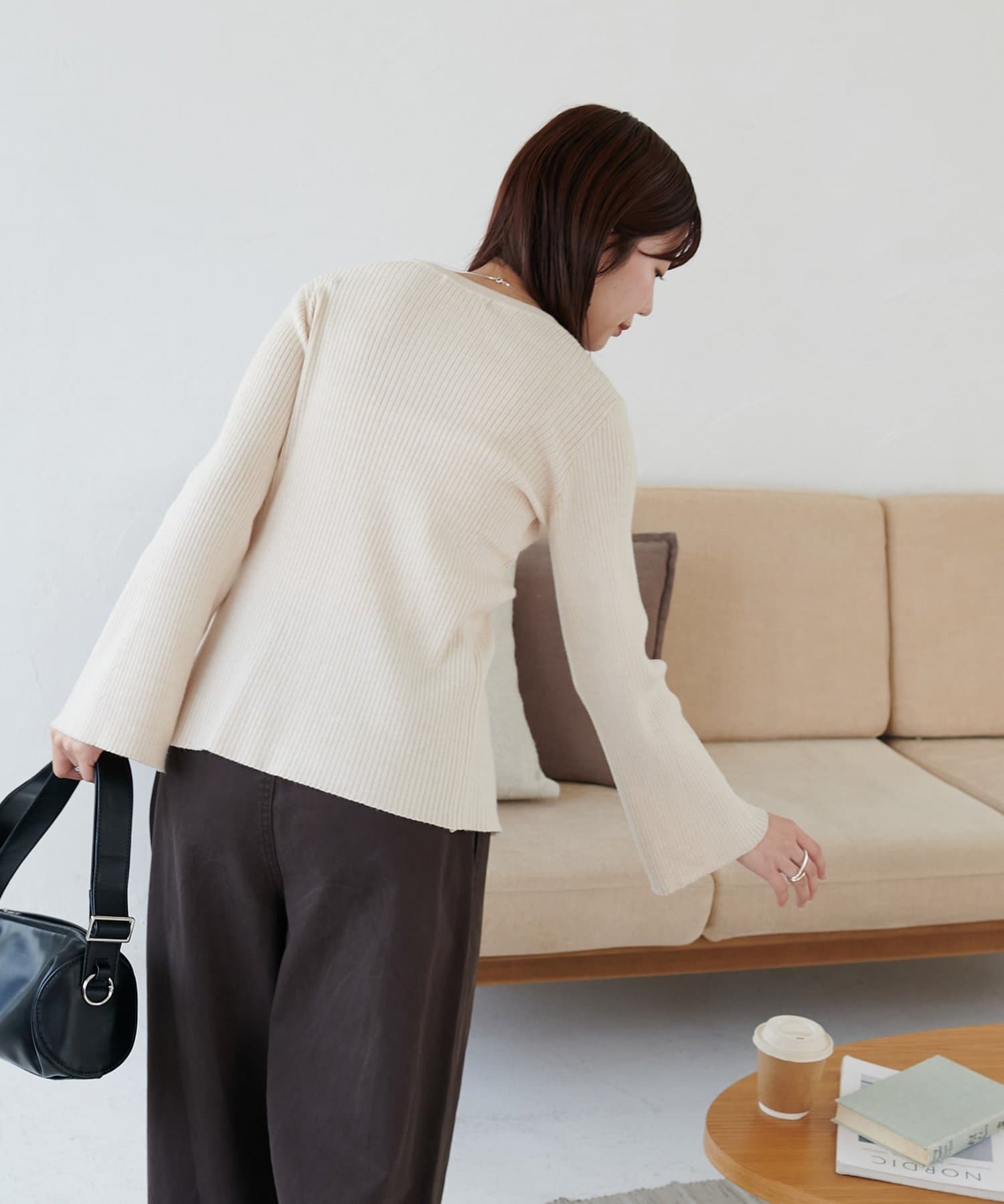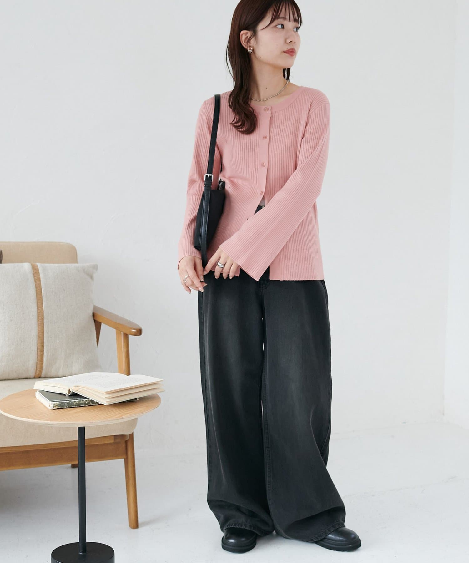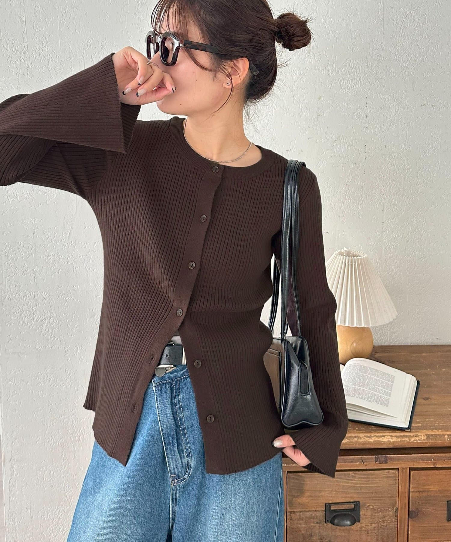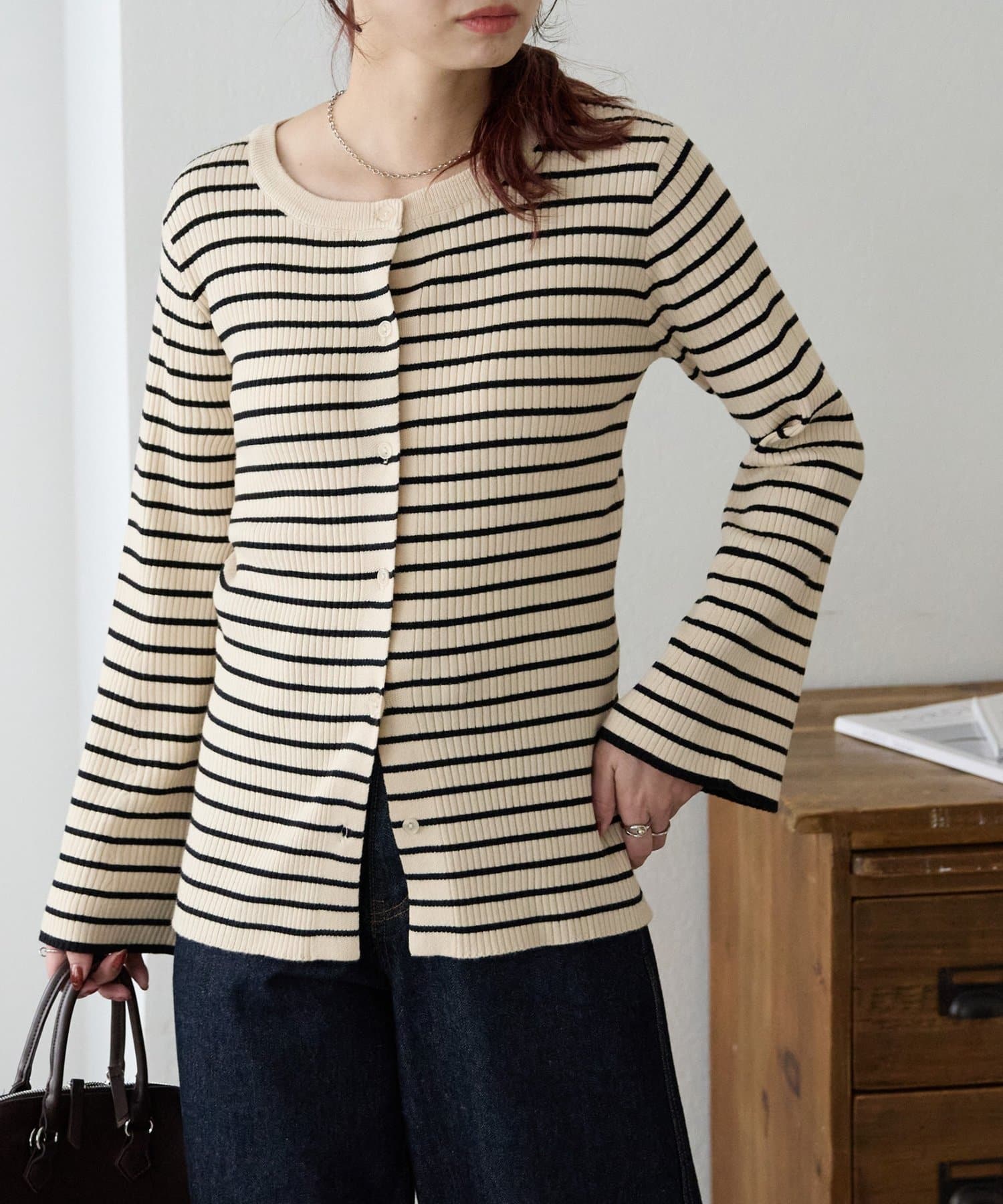 【7色展開/一枚着でも羽織でも◎/WEB限定】袖フレアリブカーディガン