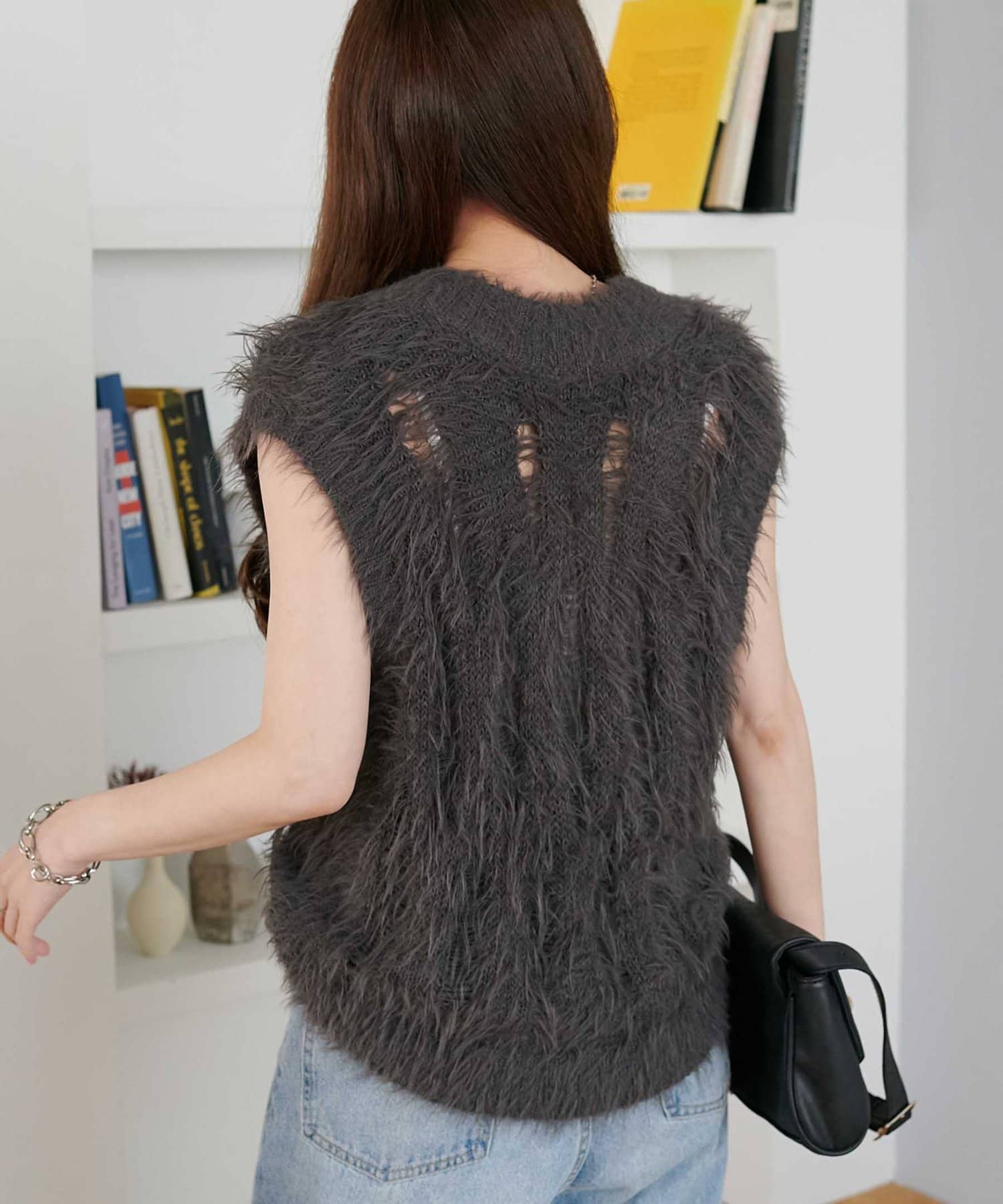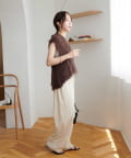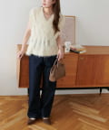 ほどよくゆとりある脇繰りでシアーインナーやハイネック、Tシャツ、タンク等と合わせやすくアイテム次第で長いシーズンを通してレイヤードできます!