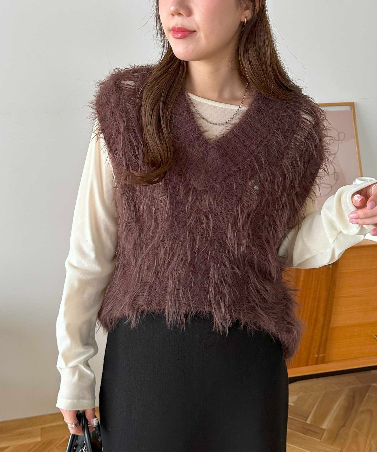 スカシ編みのデザインがインナーをちらっと見せてくれるので、インナー合わせも楽しめます♪