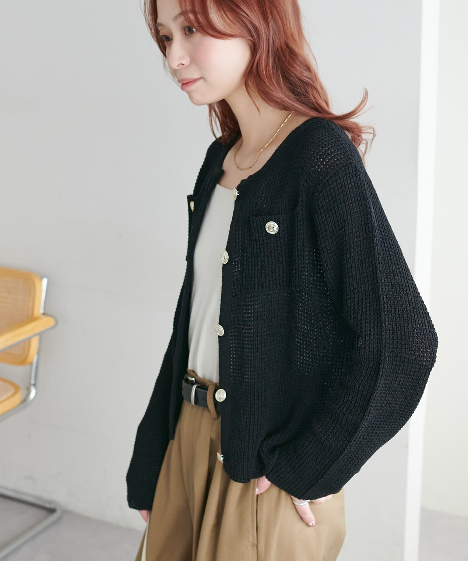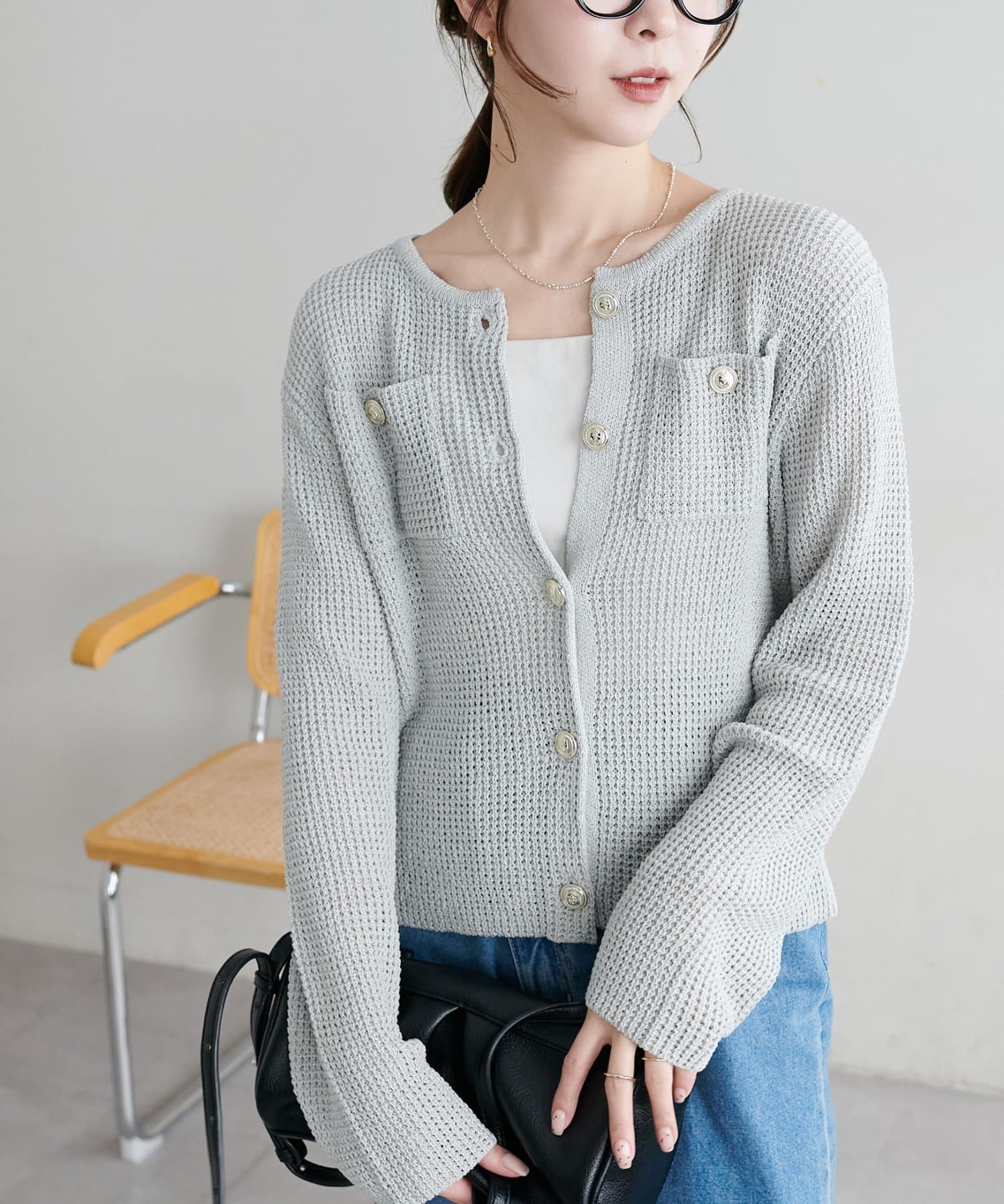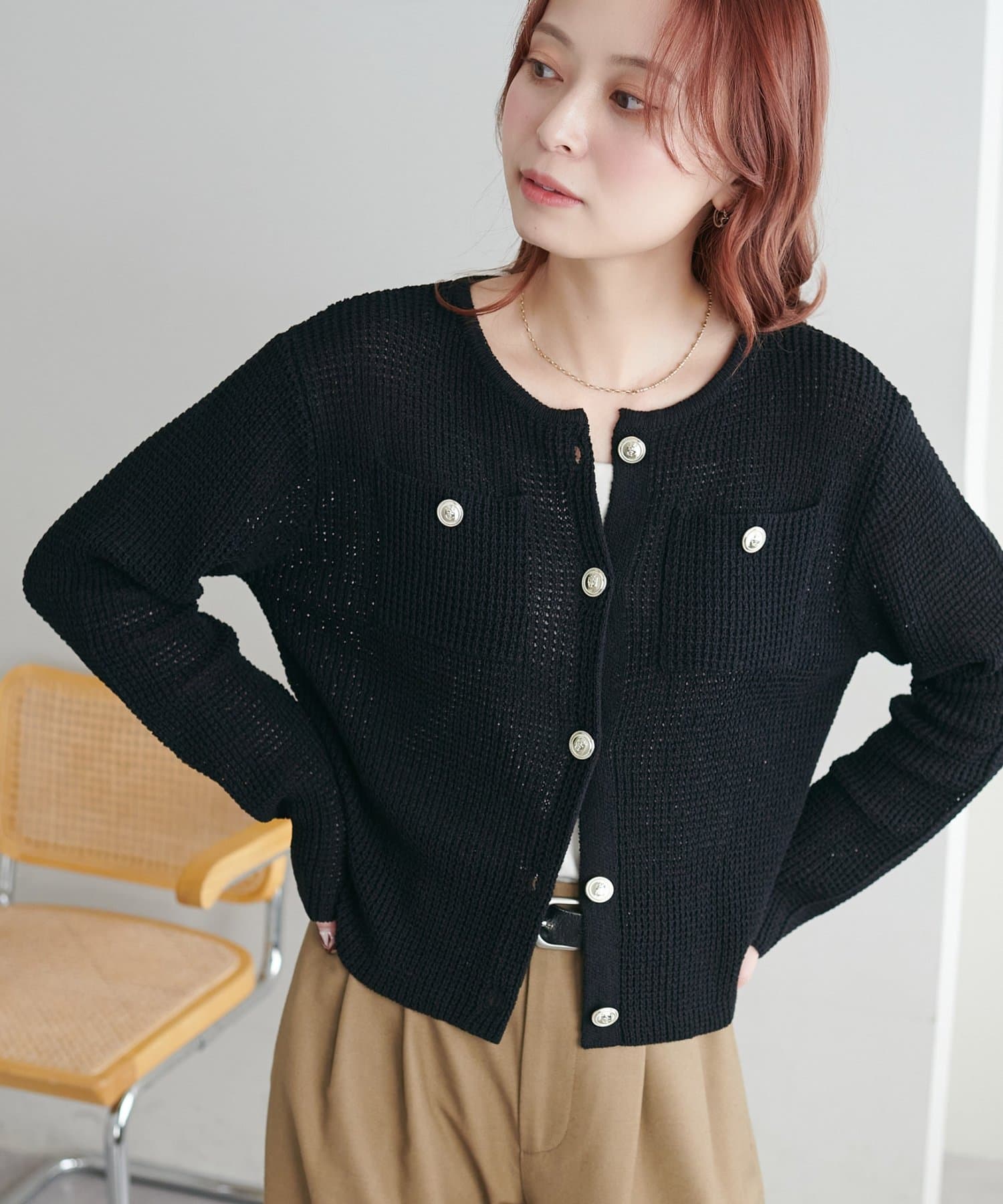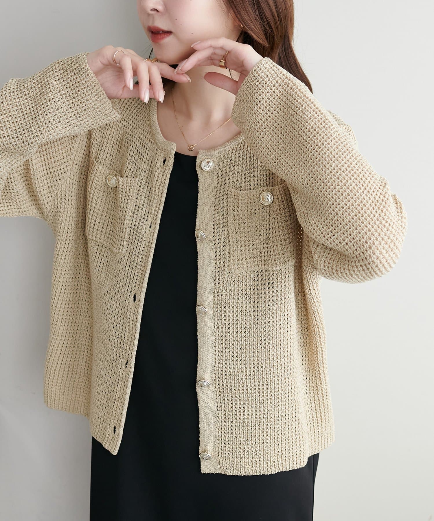 【WEB限定】金釦ポケット付きカーディガン