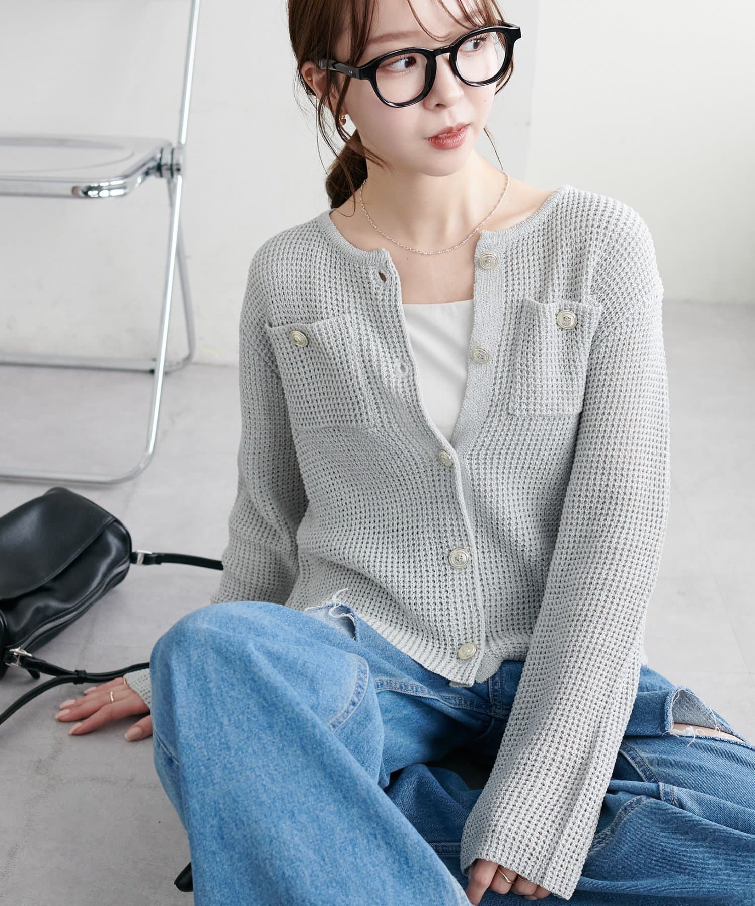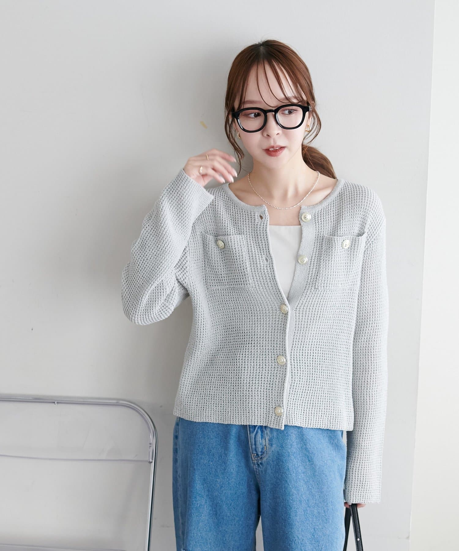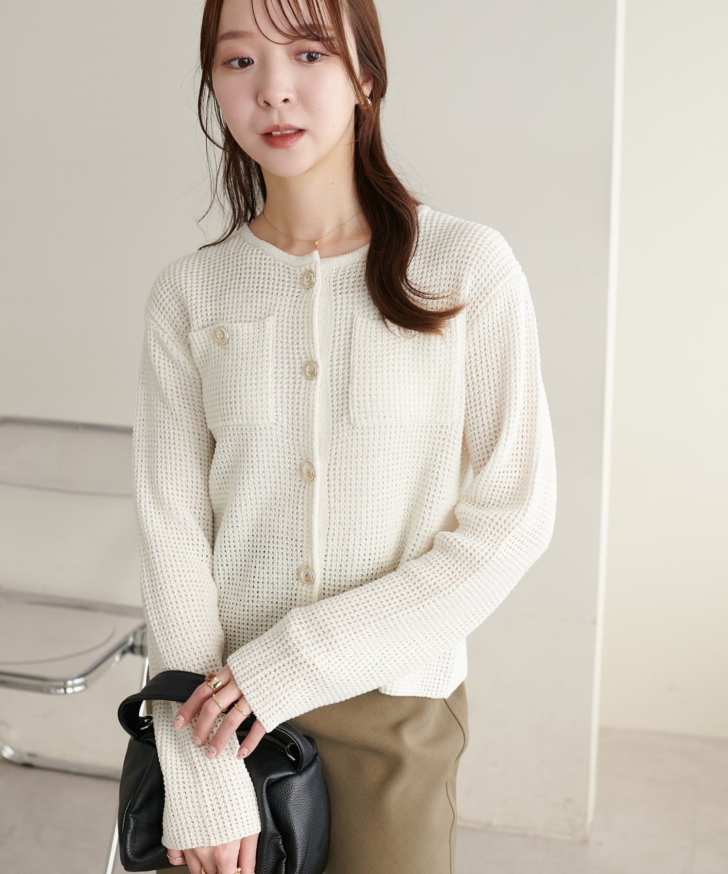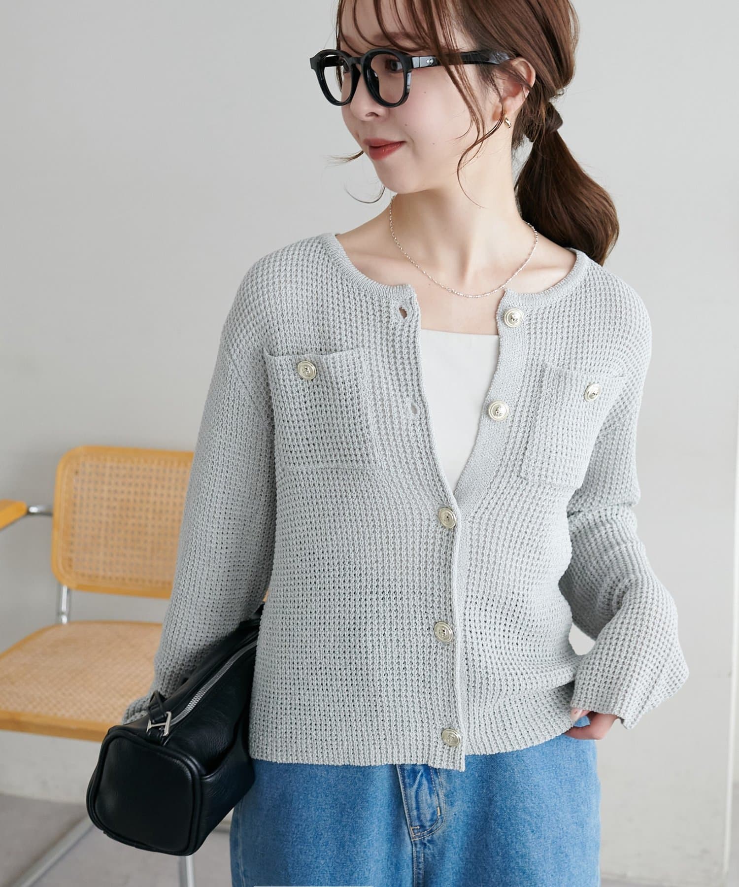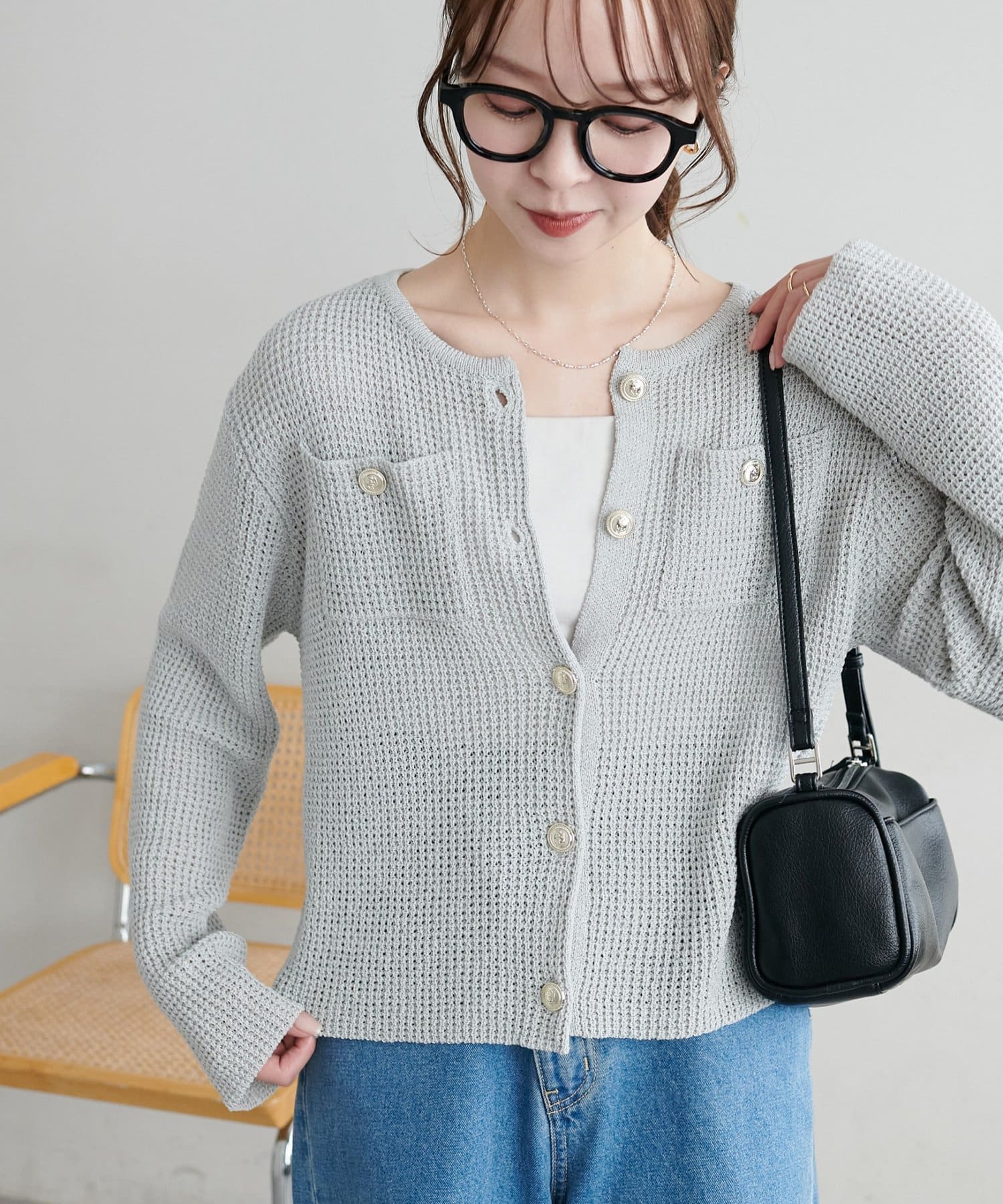 【WEB限定】金釦ポケット付きカーディガン