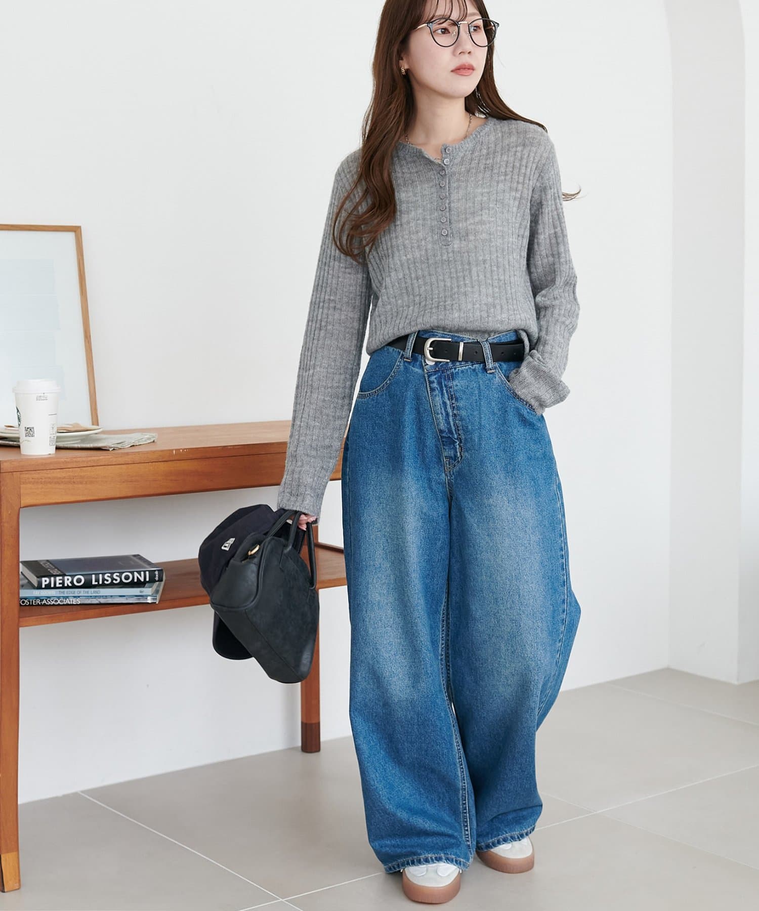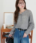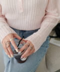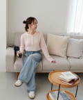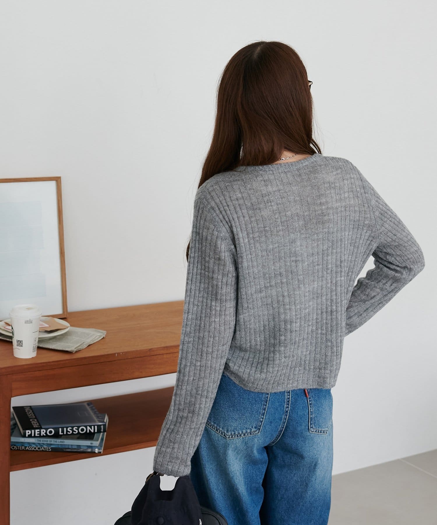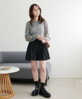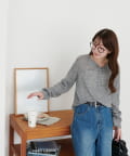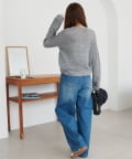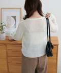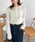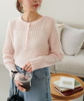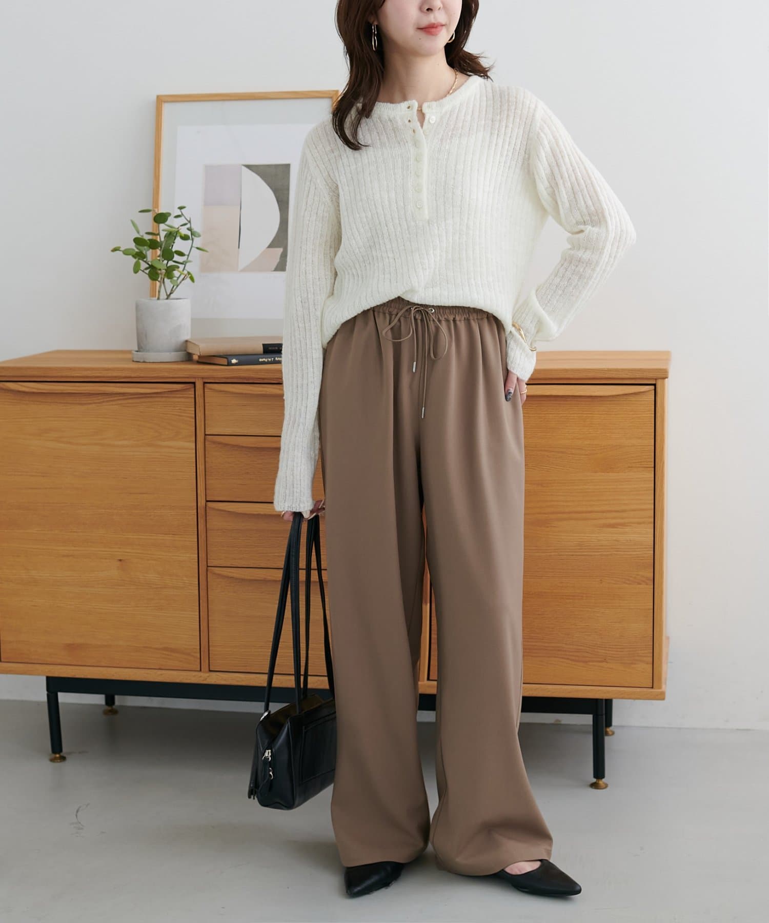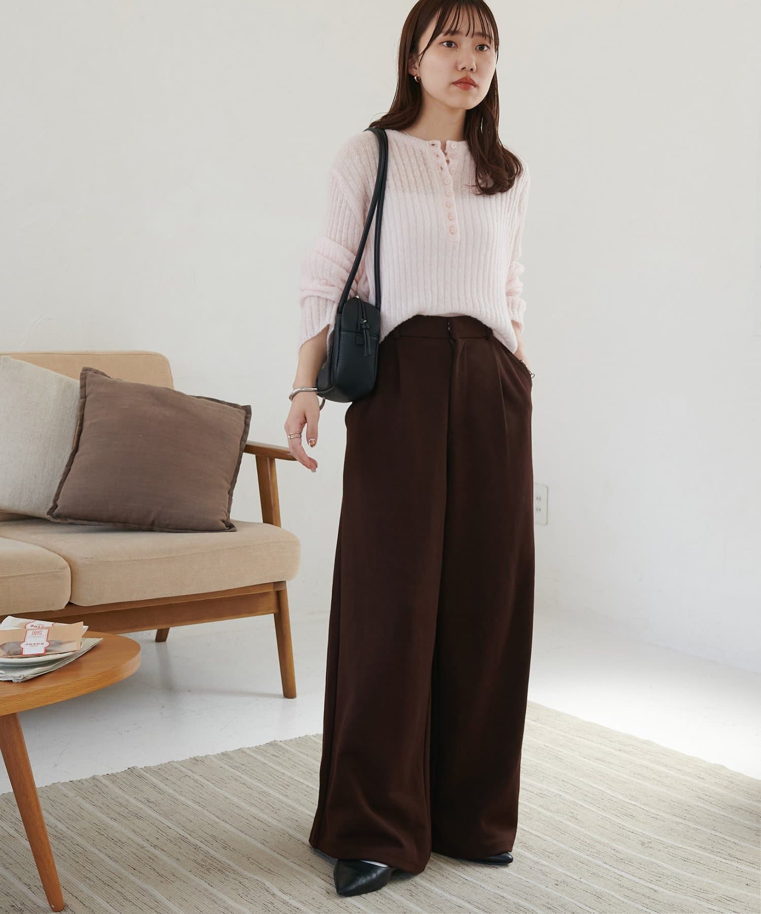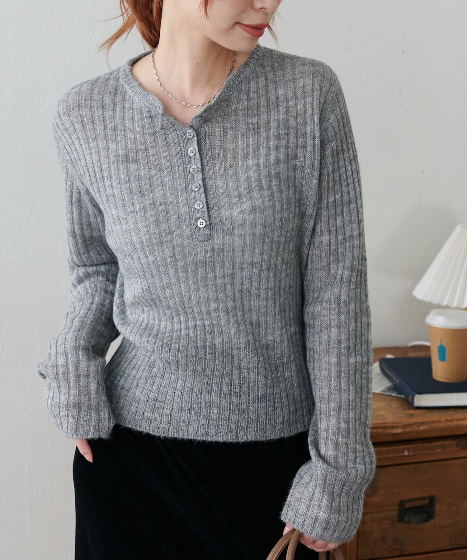 153cmスタッフ:首元のボタンを少し開けて抜け感を出すと、顔まわりがすっきりするのでおすすめ◎ モヘアタッチのふわっとした肌触りがとても気持ちよく、軽い着心地でストレスなく着られました。
