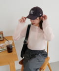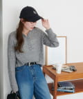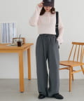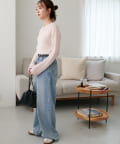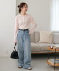 155cmスタッフ:柔らかい生地感なので、ボトムスにインしても着ることができます〇