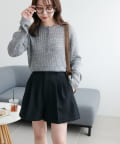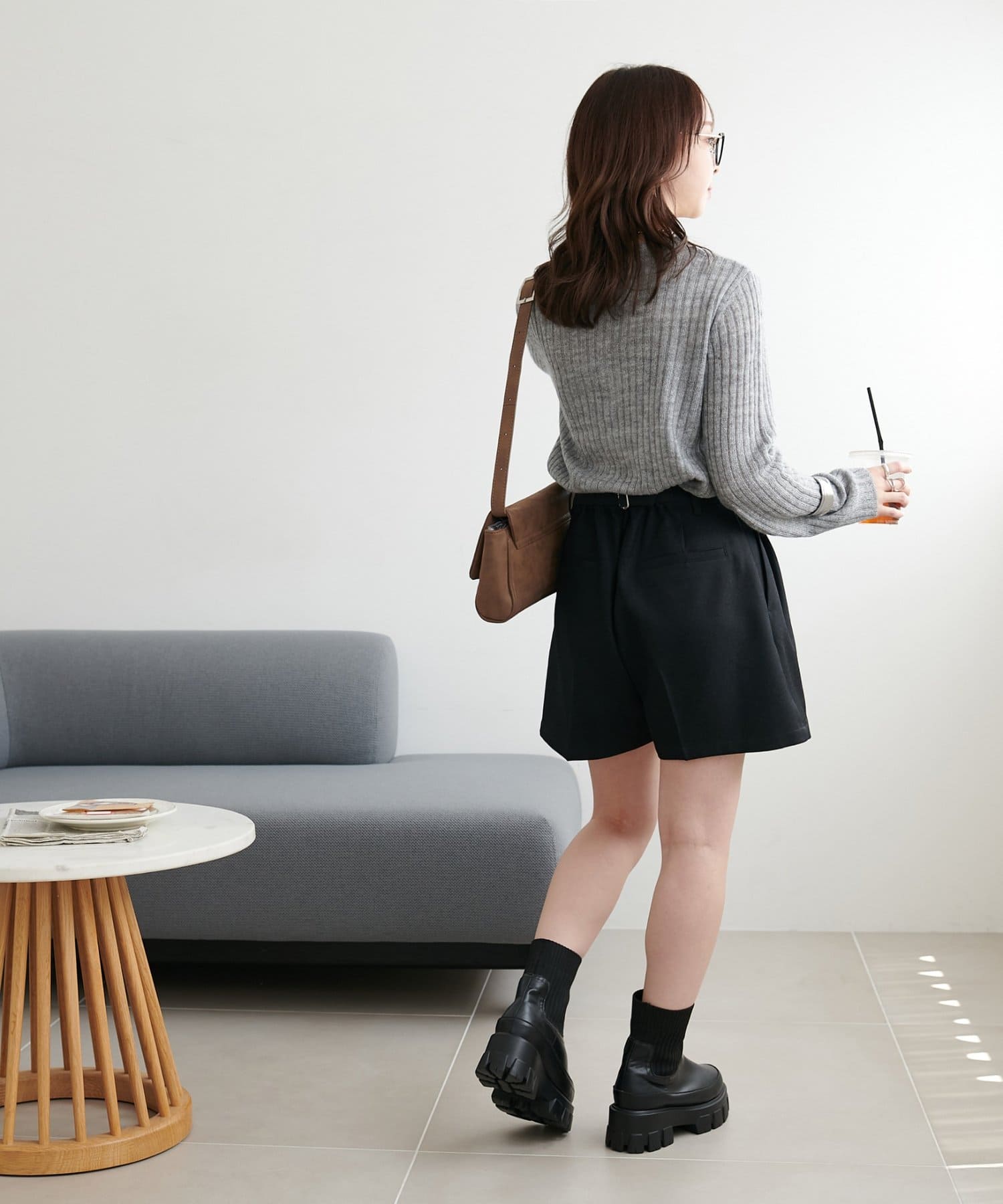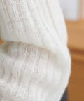 身頃は程よくゆとりを持たせつつも、縦リブ編みの効果でボディラインをすっきりと見せてくれ、細見え効果のあるシルエット。