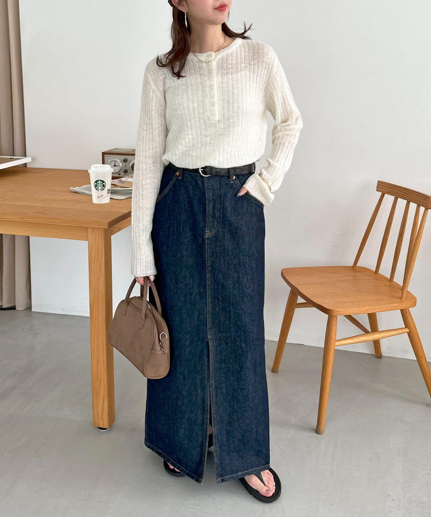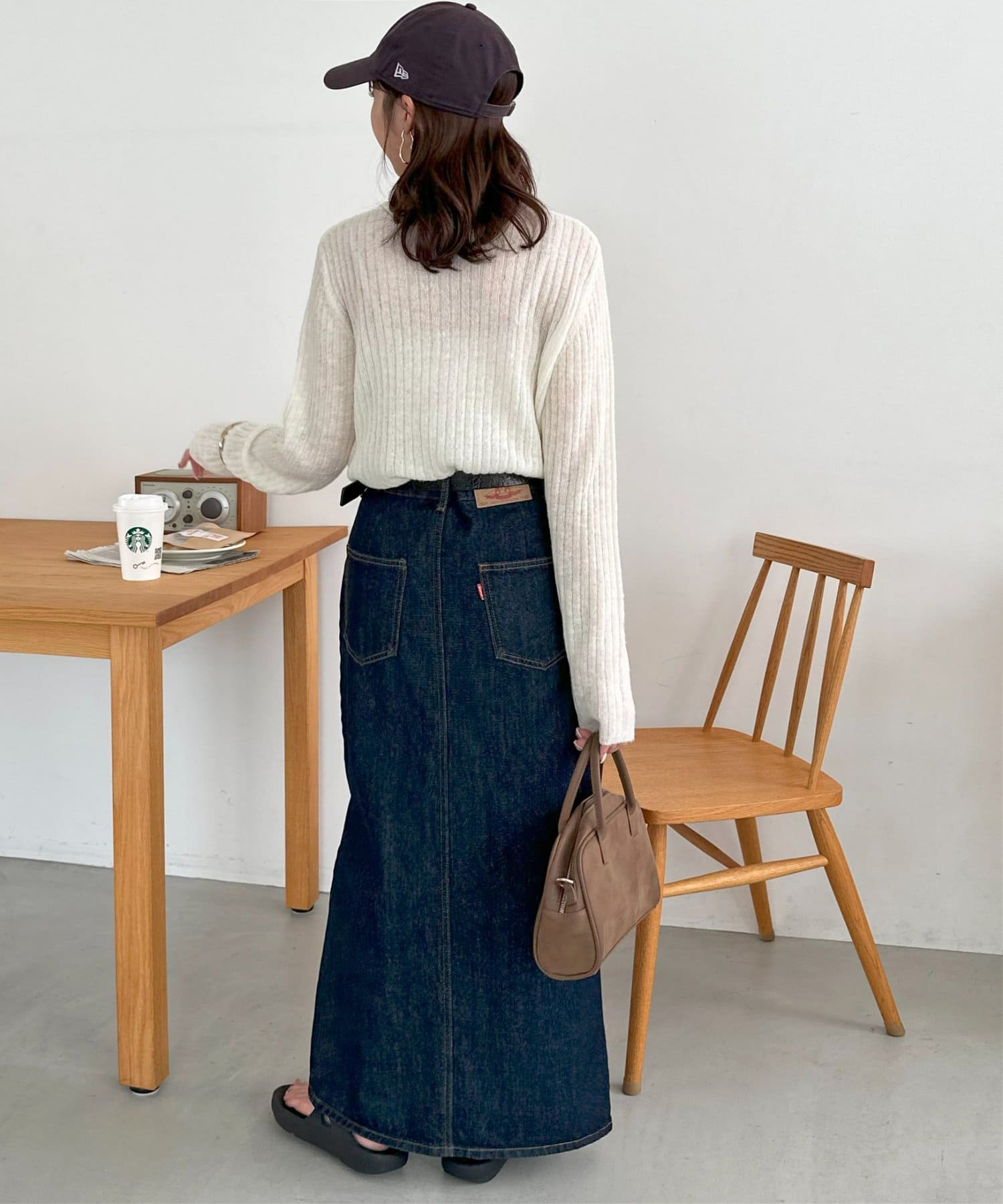デニムを合わせてラフに着るだけで、抜け感のある大人カジュアルが完成。