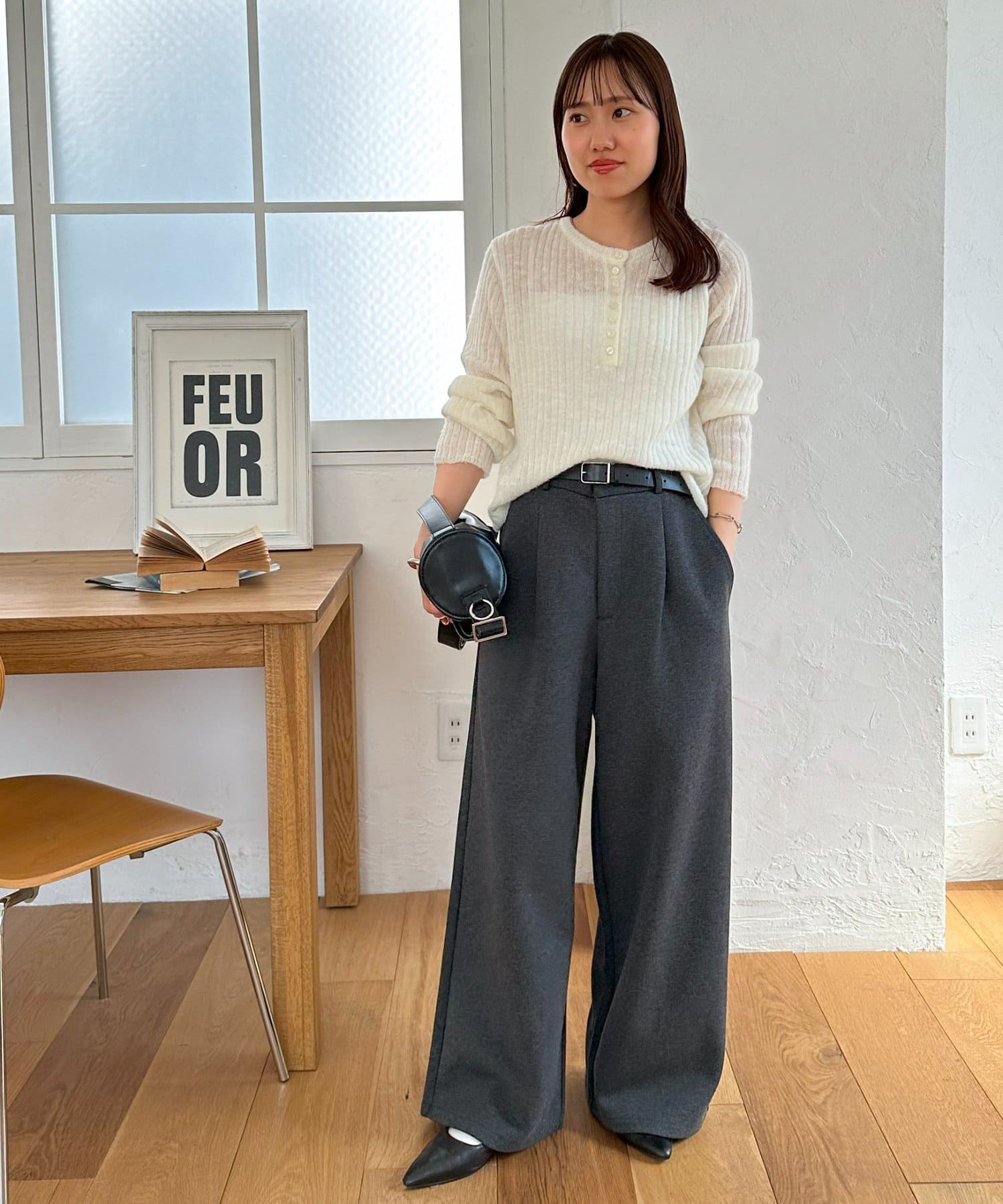 インしてもアウトでもサマになる着丈で、ワイドパンツやタイトスカートとの相性も◎