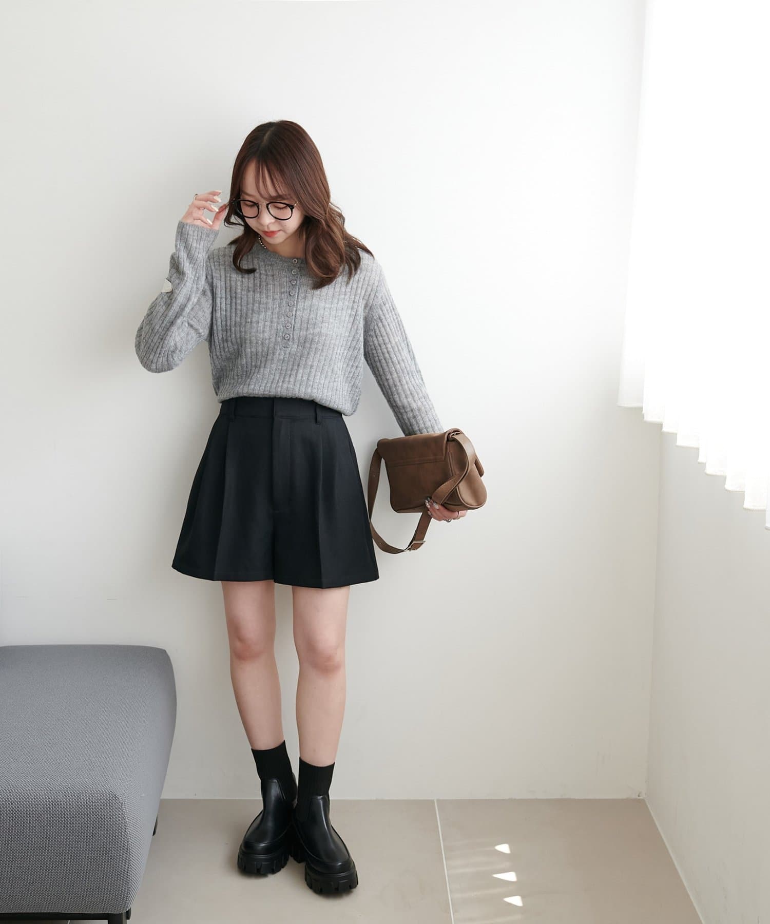 フロントに並ぶ小ぶりなボタンが、シンプルな中にもさりげないアクセントを加えています。
