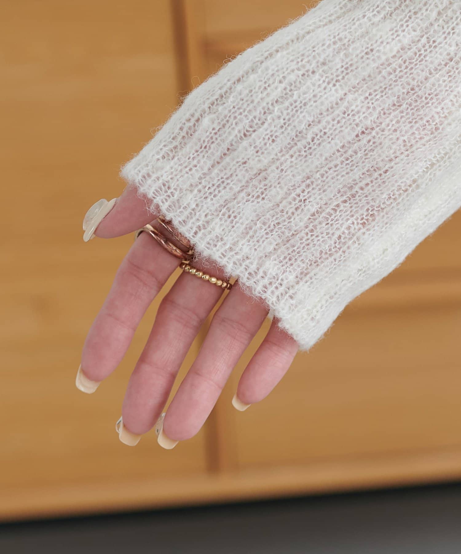 160cmスタッフ:リブ編みなので体のラインを拾いすぎず、すっきりと見せてくれるの嬉しいポイント。やや長めの袖丈で手首にクシュっとたまる感じがとてもかわいいです♡