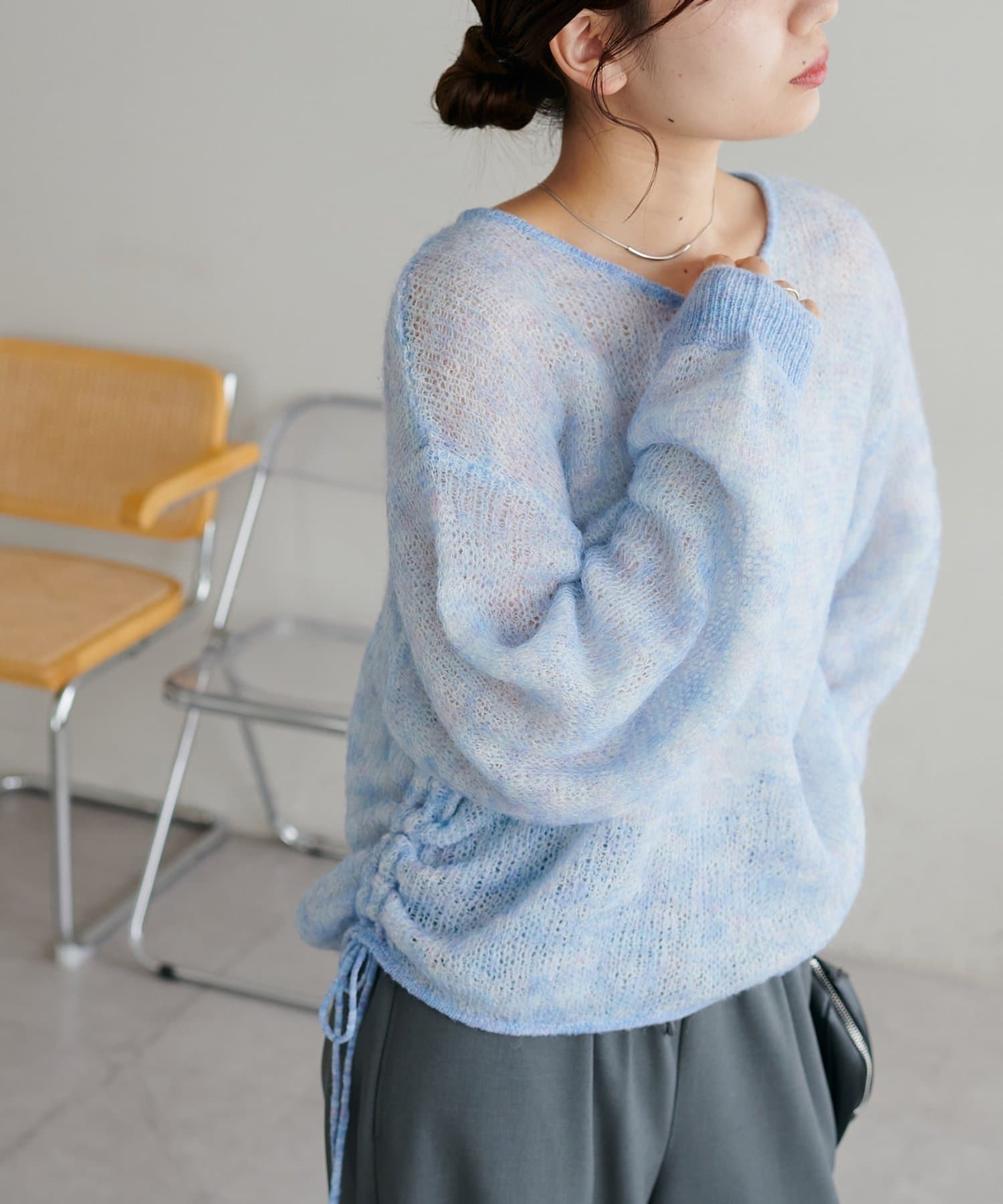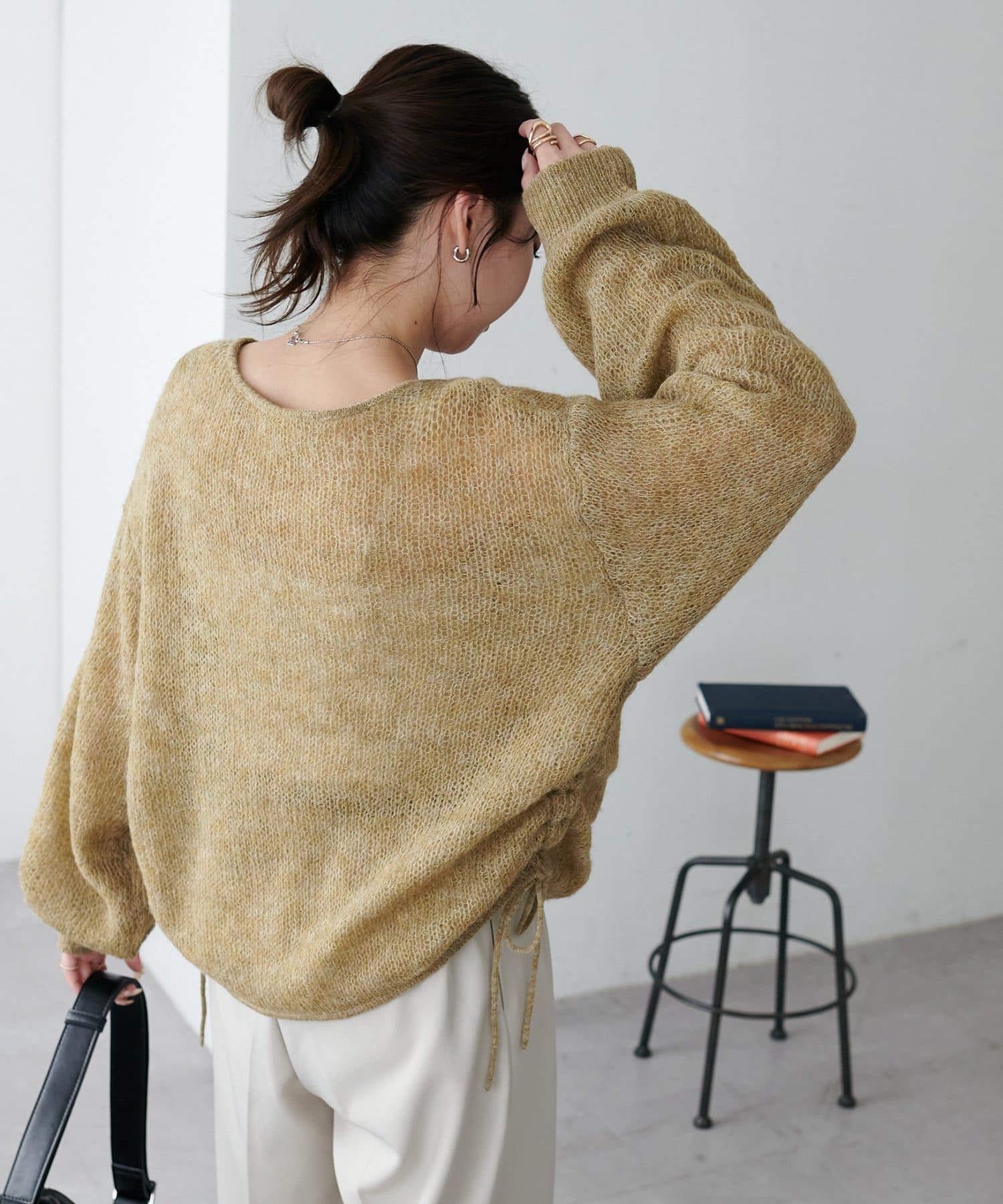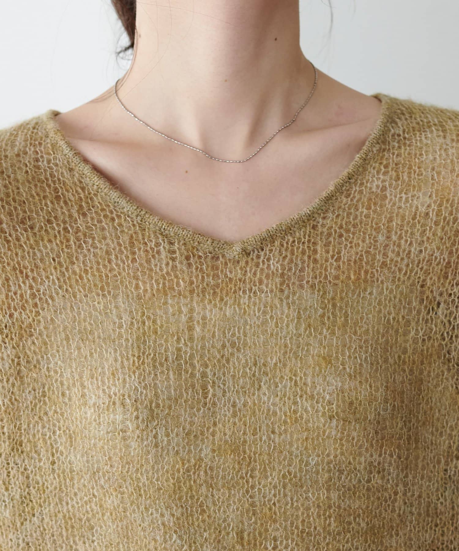 程よく透け感があるので、秋口にぴったり!何色かの糸を合わせたことで、一枚で様になるアイテムに仕上げました。