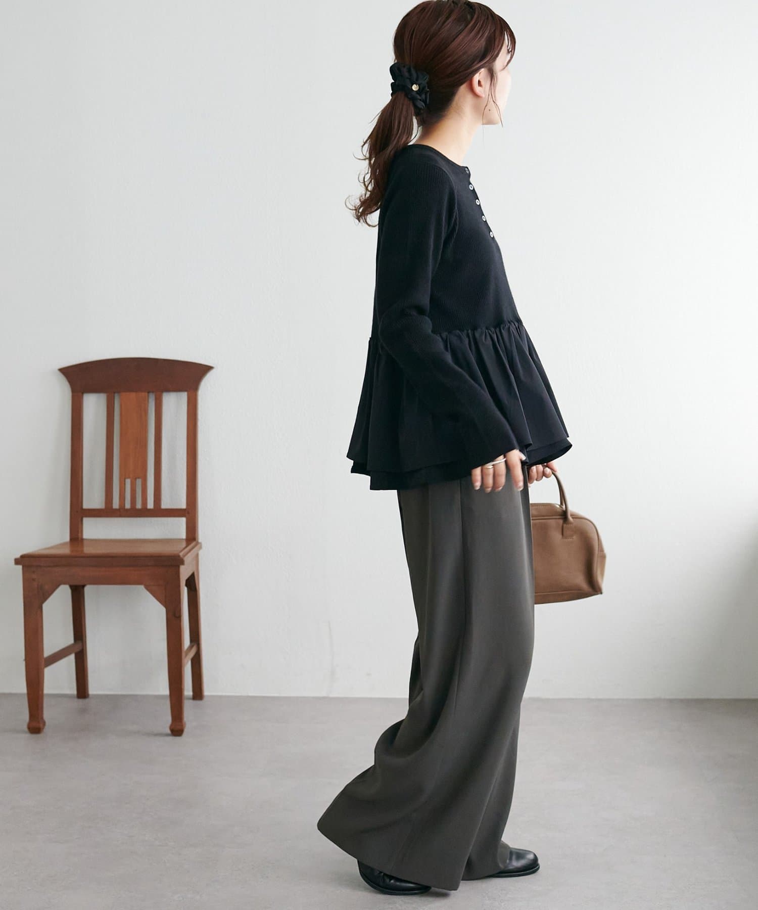 フレアやストレートなど、細身のシルエットを合わせることでペプラム感が強調され、メリハリのあるコーデが完成します〇